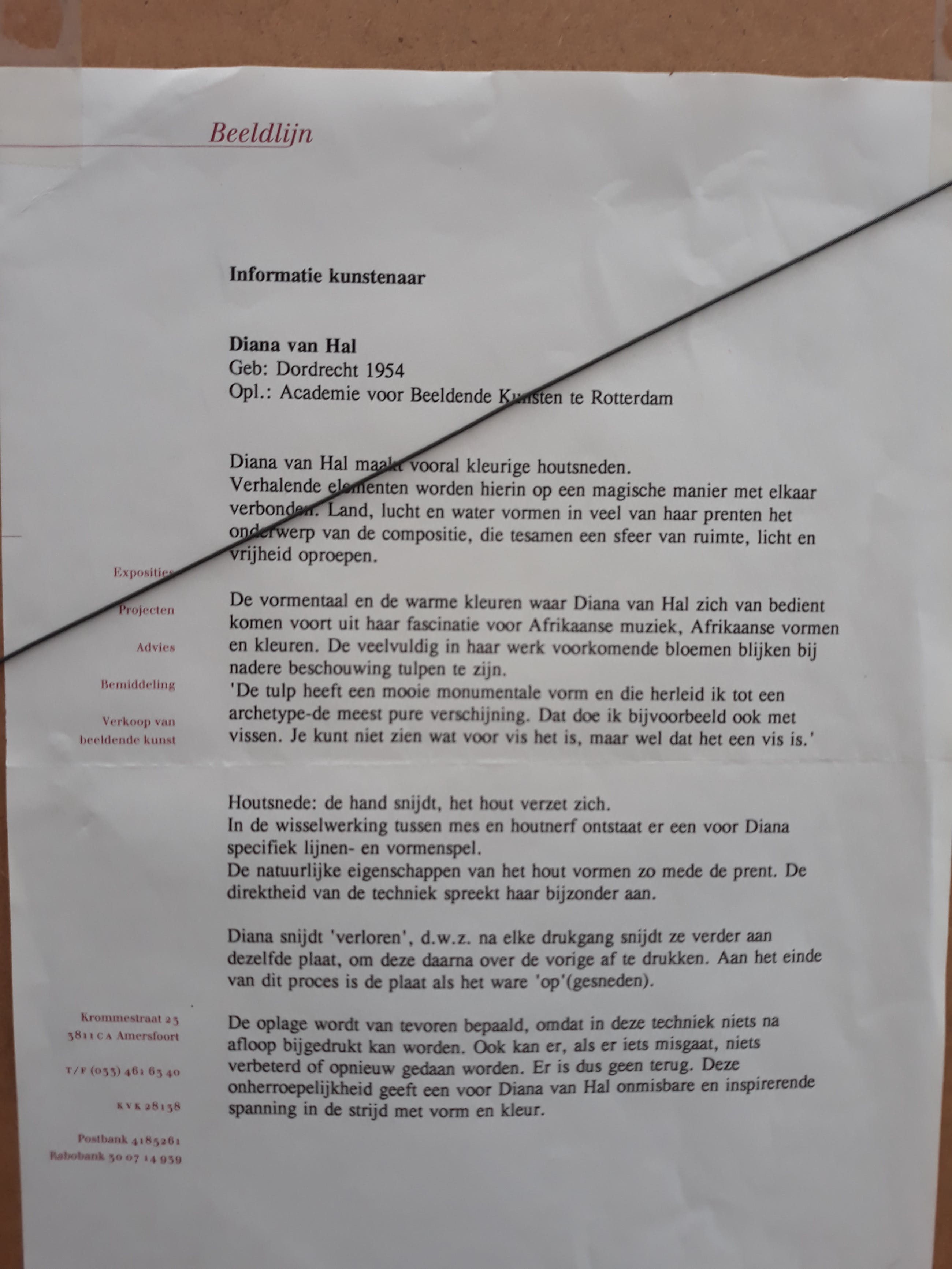 Het werk is af te halen op locatie. Als koper dient u zelf verpakkingsmateriaal mee te nemen. De locatie is: Amersfoort, Nederland