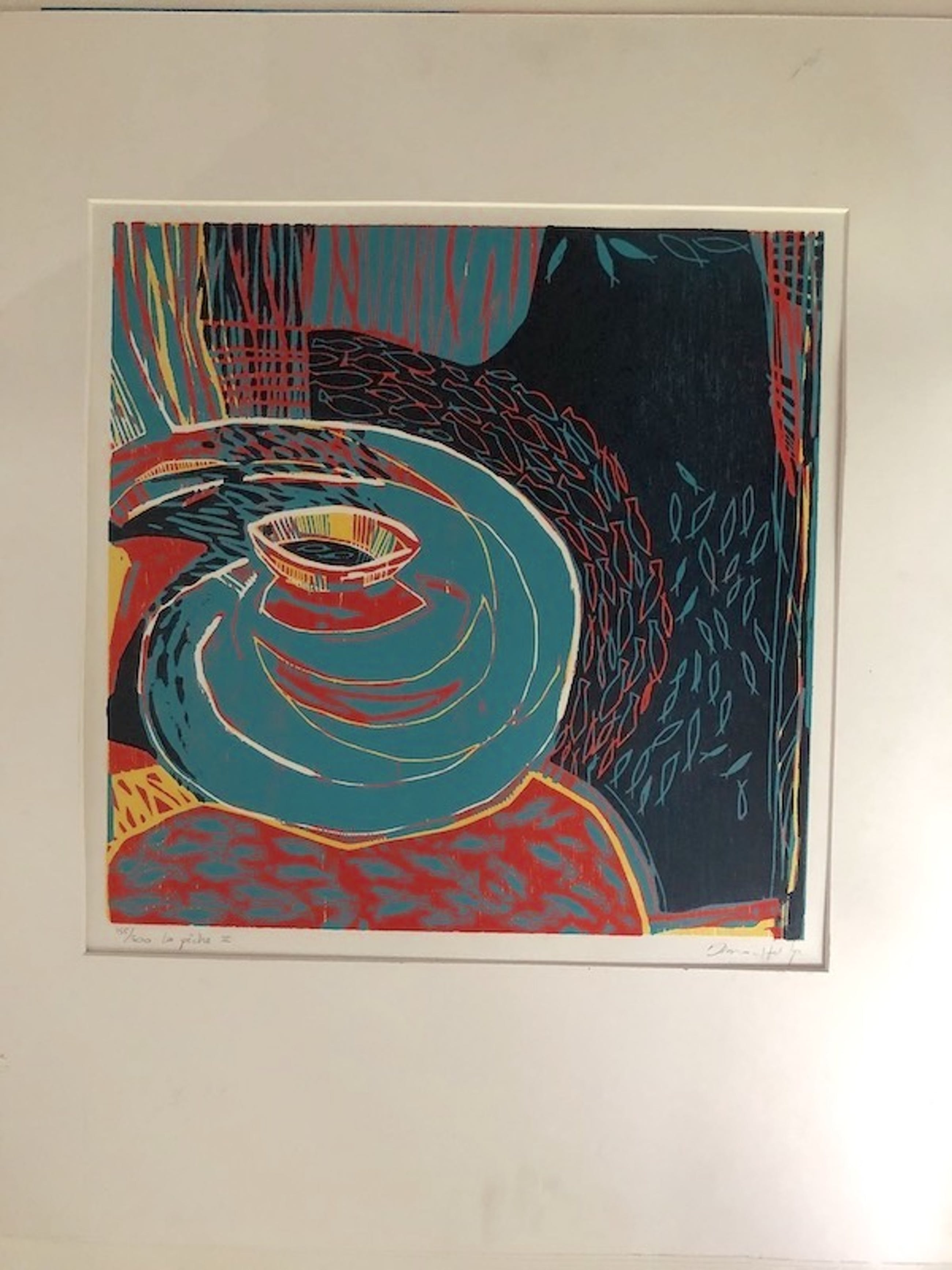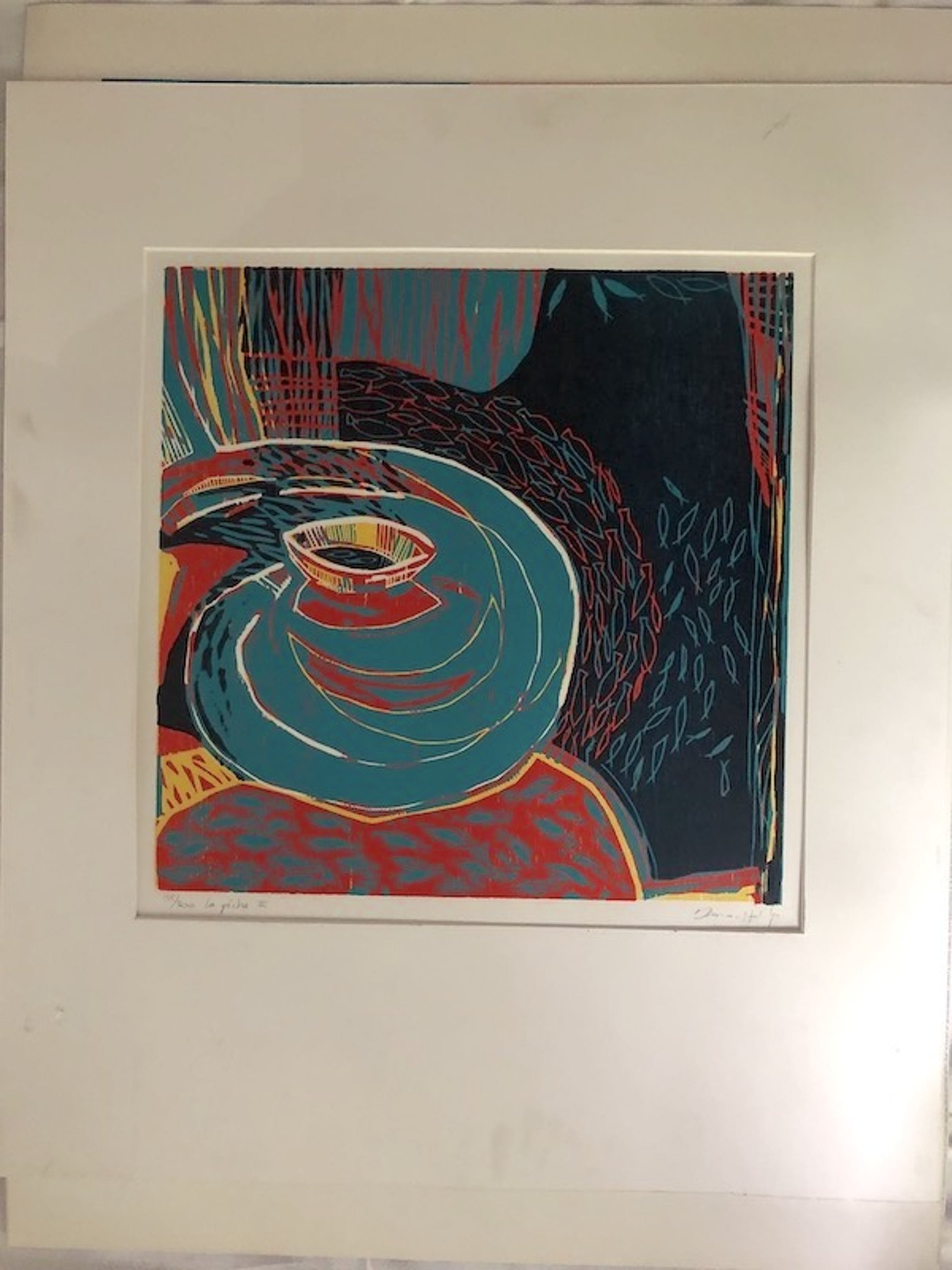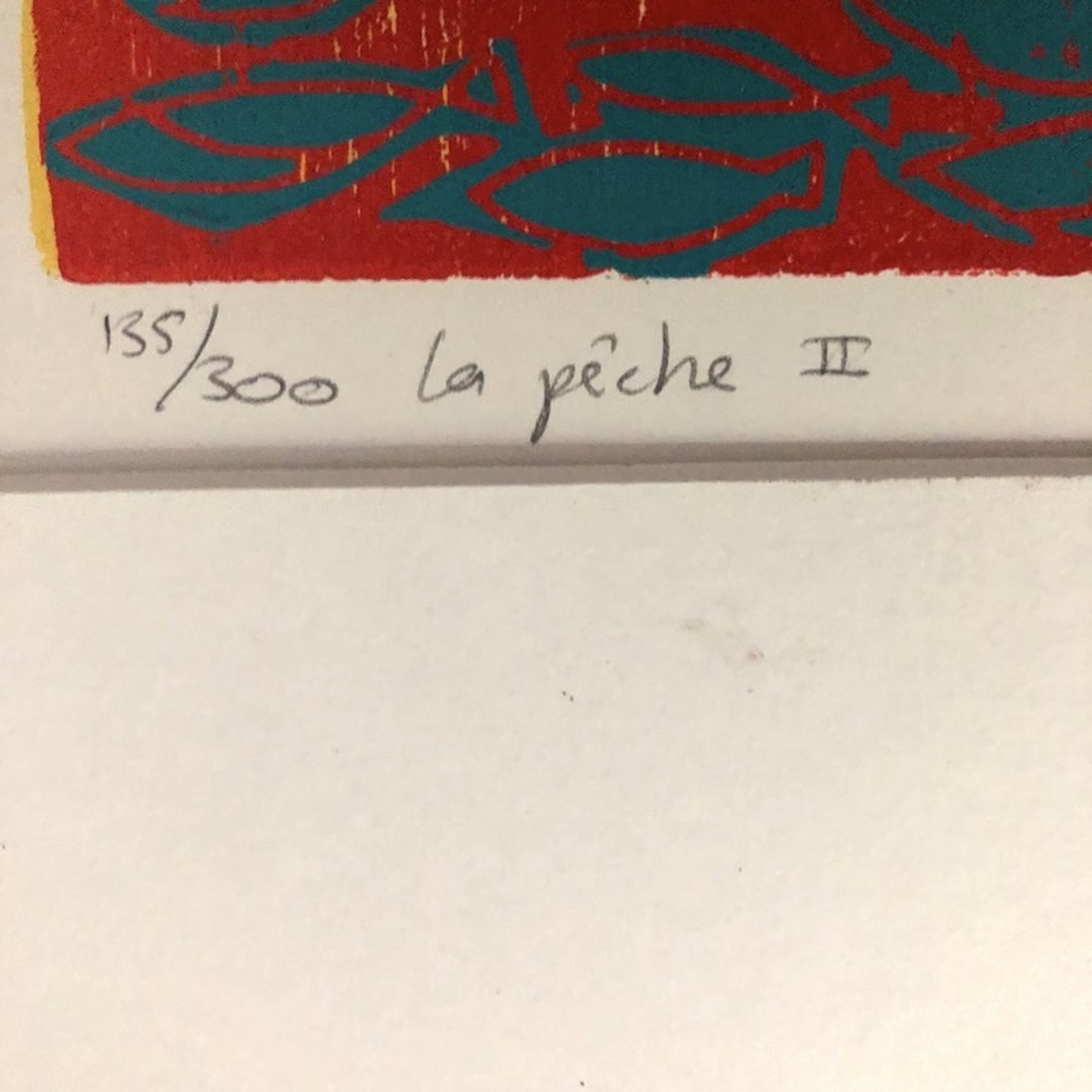 Mix LM 38 Diana van Hal La Peche 2 Houtsnede 135/300 1972 60 x 70 cm Niet Ingelijst Passepartout is vuil