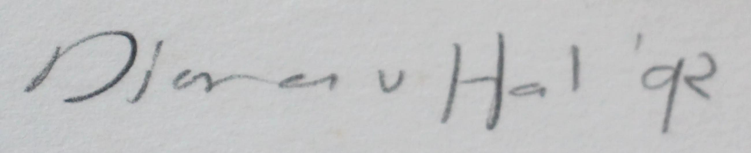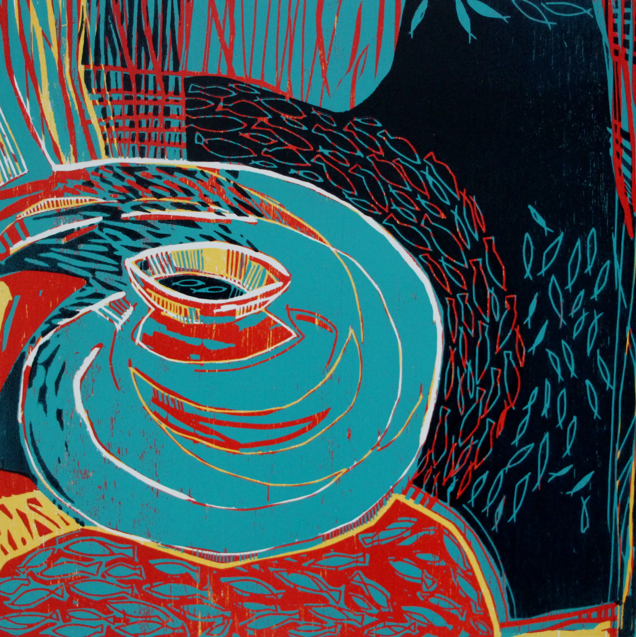 Linosnede van Diana van Hal. Titel: La pêche II. Nummer: 183/300. Jaar: 1992. Afmetingen werk: H46 x b46cm. Afmetingen voorstelling: H40 x b40cm. Het werk is rechtsonder, met potlood, gesigneerd door de kunstenares. De authenticiteit van het aangeboden werk wordt volledig gegarandeerd. Een certificaat van echtheid kan, op aanvraag, worden gemaild.