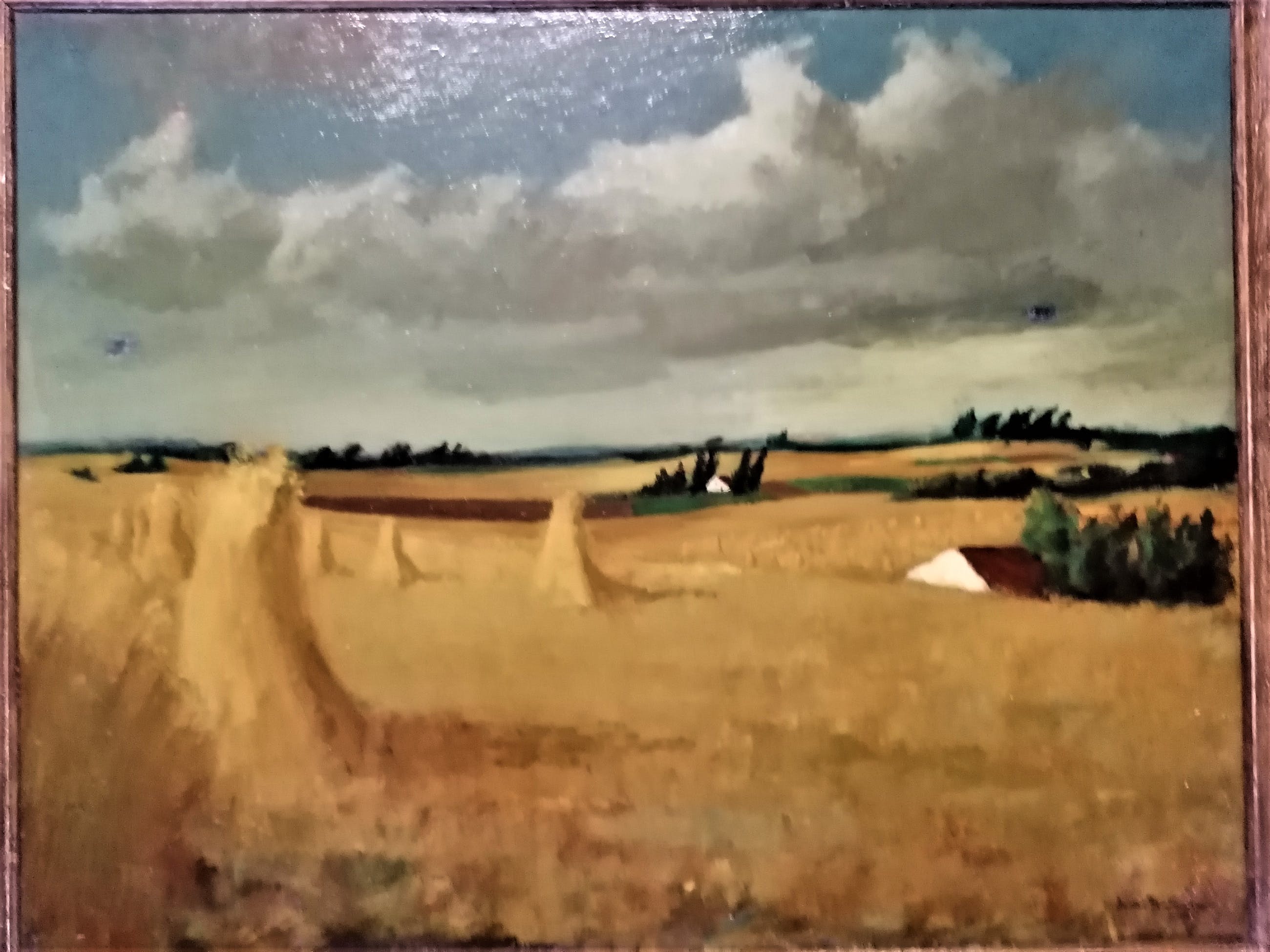 Dit werk betreft: korenschoven in het landschap. geschilderd in de periode 1960-1970. Techniek: olieverf op doek. gesigneerd aan de rechter onderzijde. De afmetingen van het doek zin: 90 cm x 70 cm. inclusief de lijst zijn de afmetingen: 100 cm x 80 cm. Er heeft wel een reparatie aan het doek plaatsgevonden.