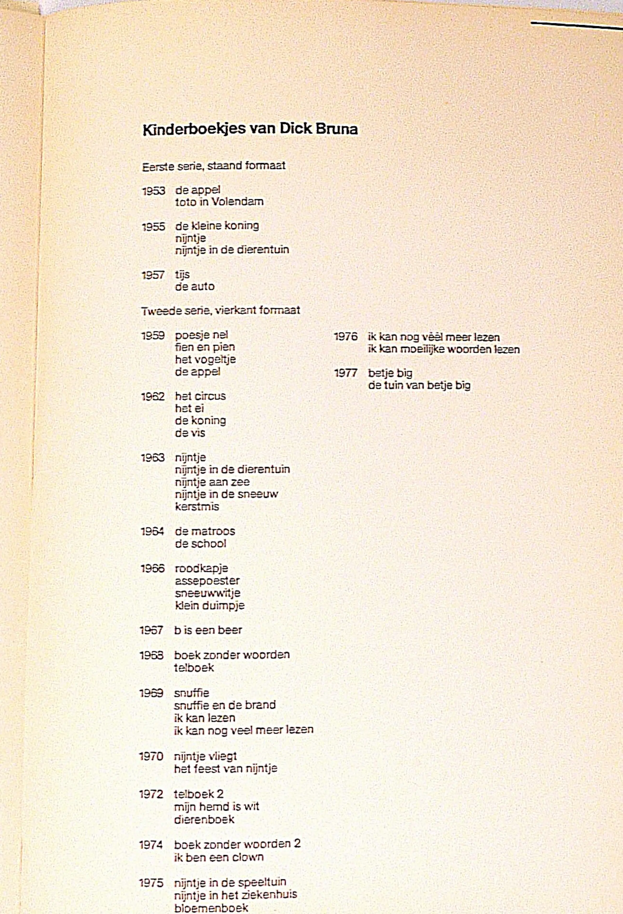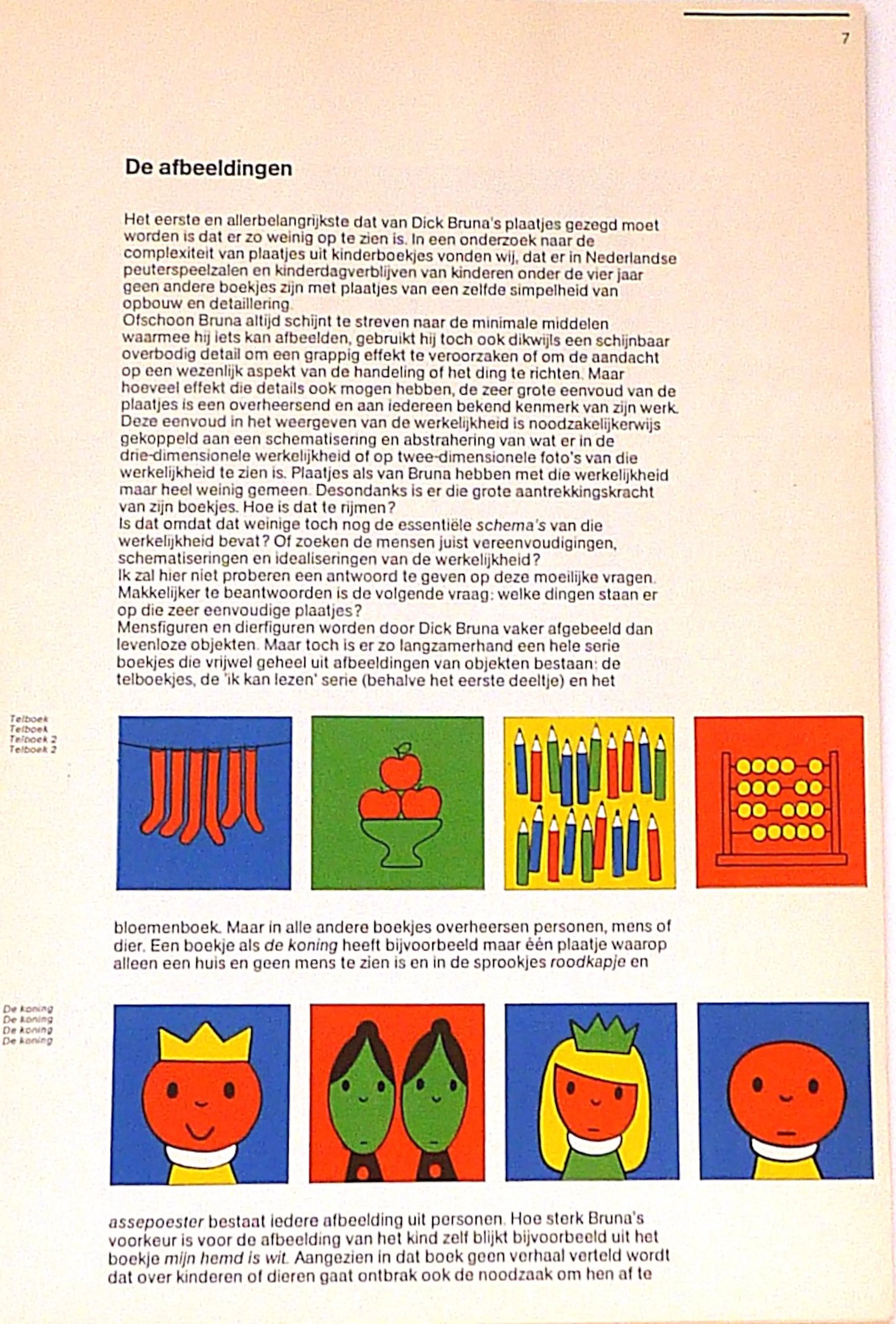 Verhandeling over de kinderboekjes van Dick Bruna door Dolf Kohnstamm, hoogleraar ontwikkelingspsychologie aan de Rijksuniversiteit te Leiden. Hij behandelt de volgende facetten:
