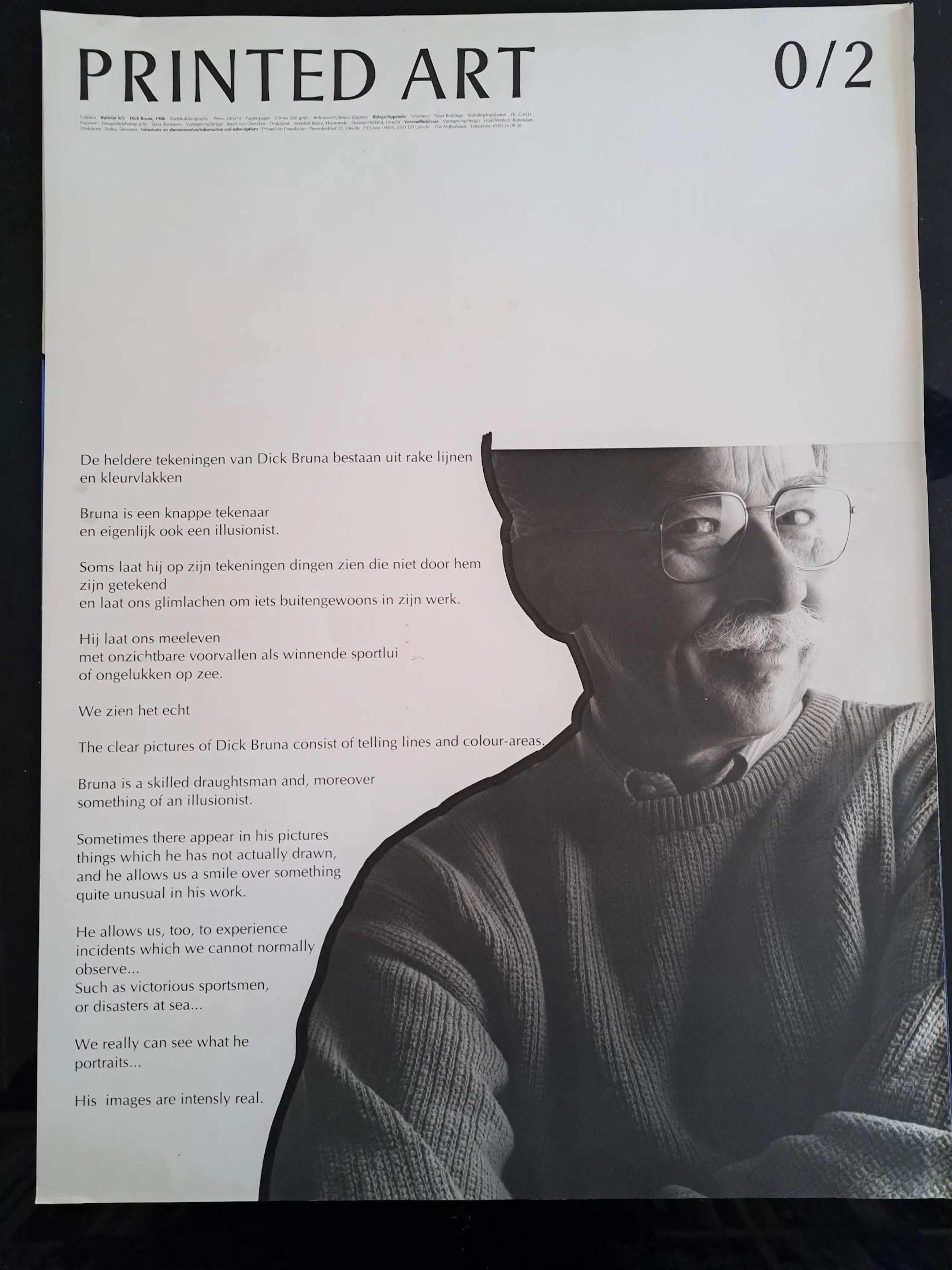 Tweede zeefdruk betreft colofon met portret van Dick Bruna en begeleidende tekst.