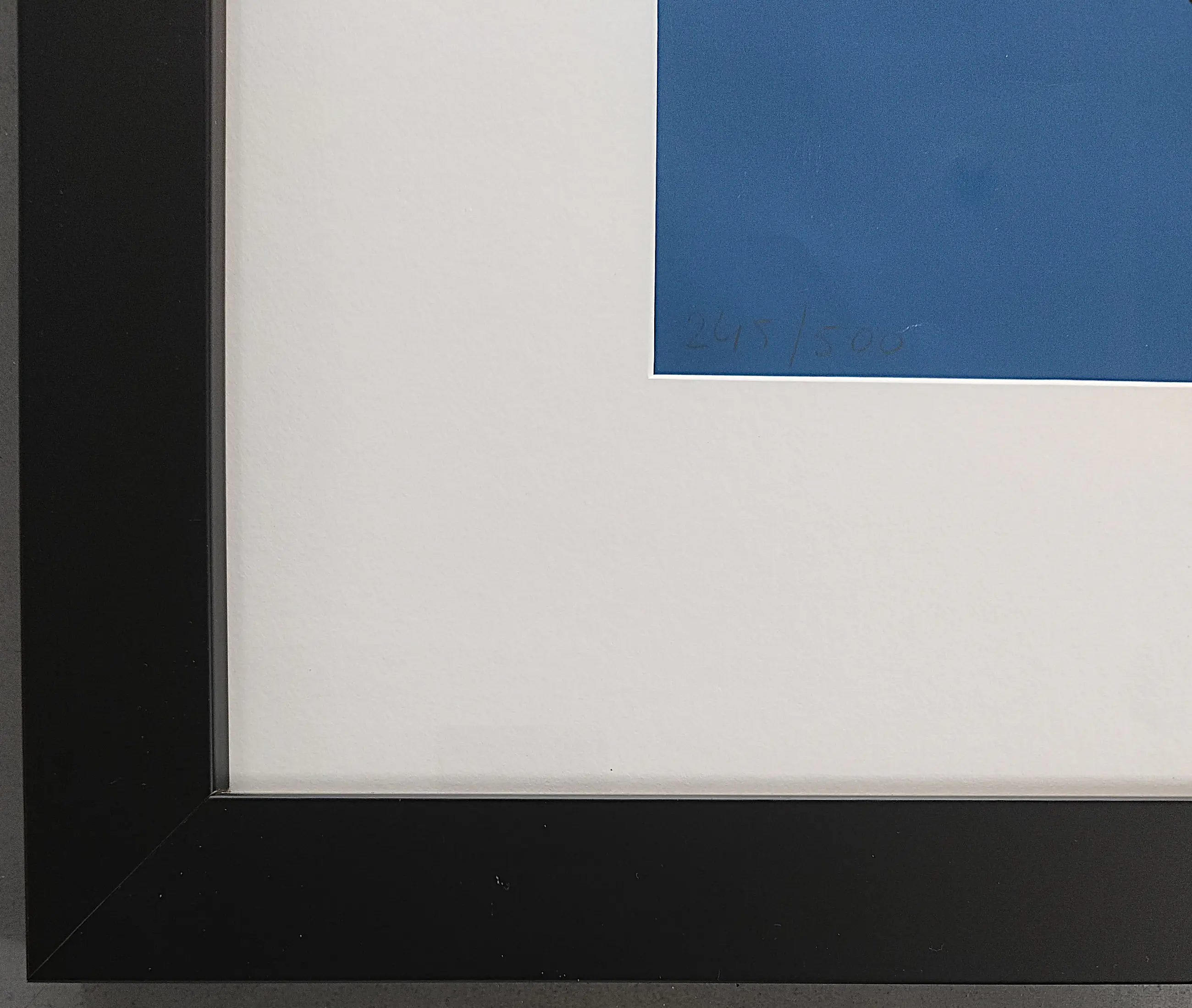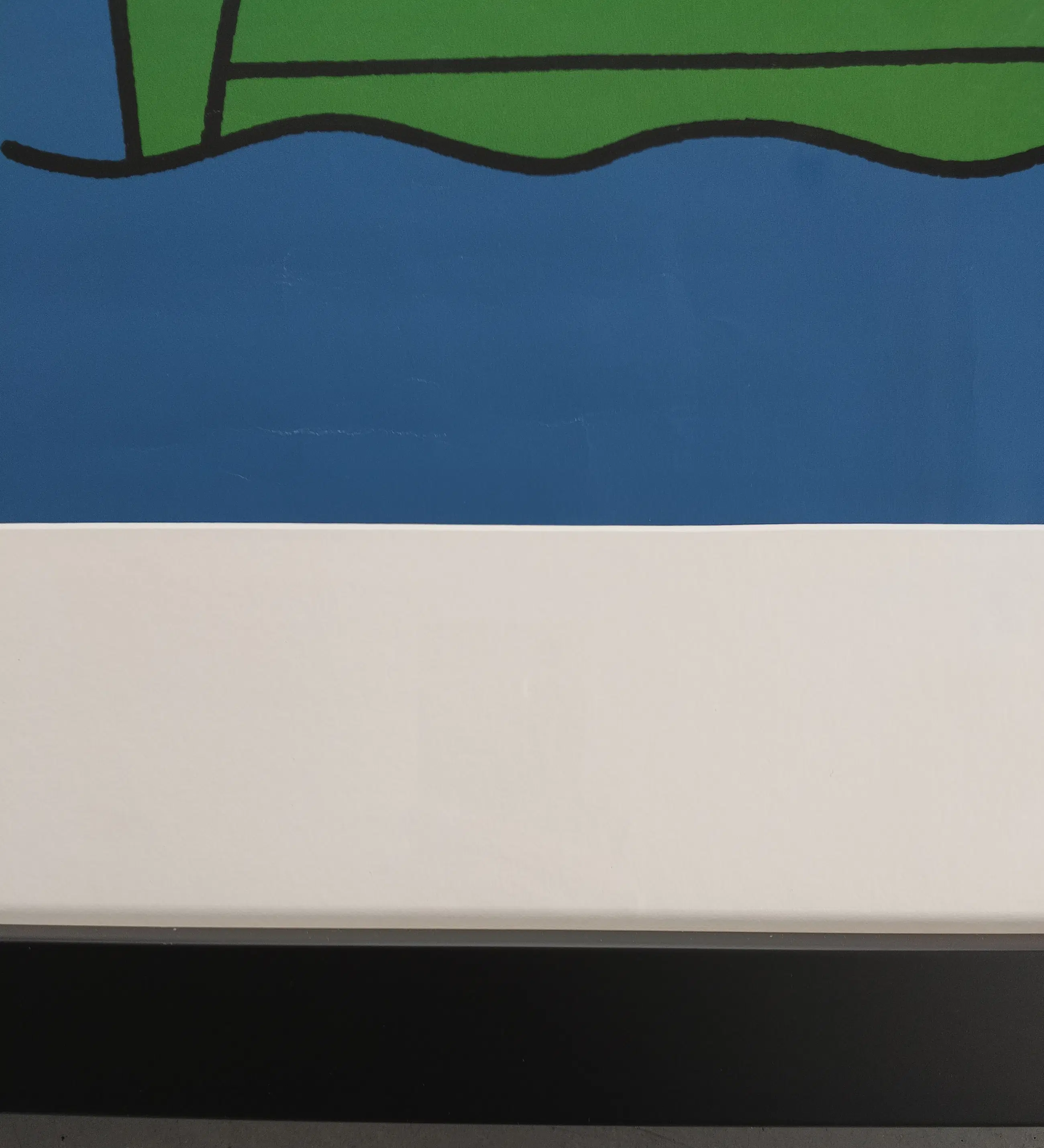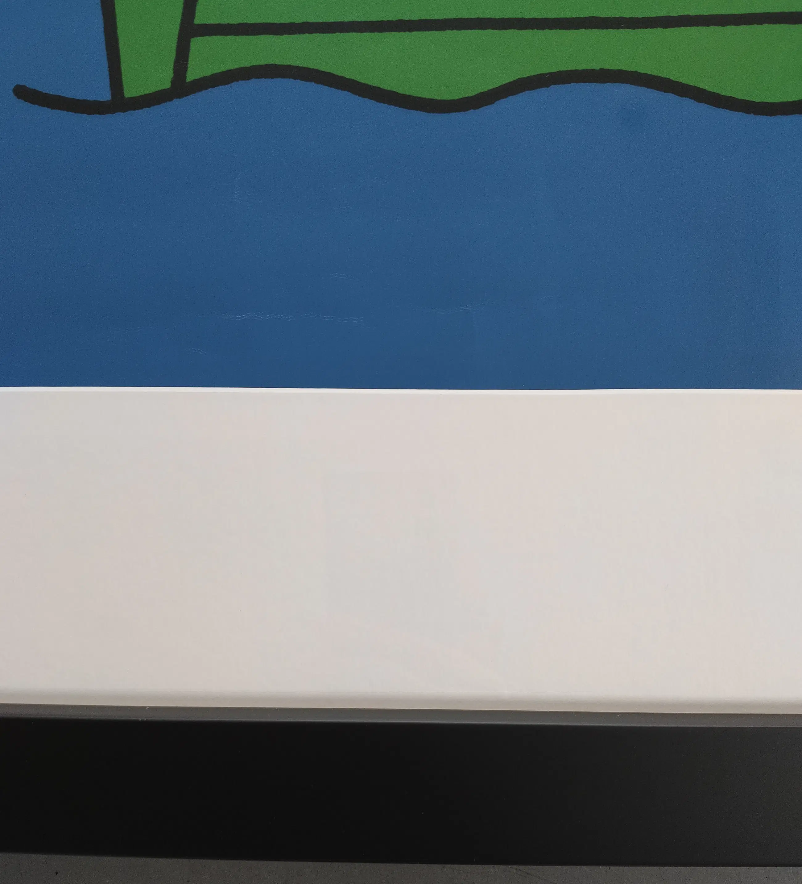 Gesigneerde ingelijste zeefdruk van de kunstenaar Dick Bruna (1927 - 2017), gedrukt in een oplage van 500 stuks. Het werk is rechts onder gesigneerd en links onder genummerd met oplage van 245/500. Afmeting beeld ca. 78 x 58 cm (hxb) Afmeting mooie zwarte houten lijst 104 x 85 cm. (hxb). In het papier zitten kreukjes, met name aan de onderzijde ook met licht verfverlies. Deze zijn met strijklicht zichtbaar. Onder de letters art zit een klein vlekje Verder is het werk in goede staat.