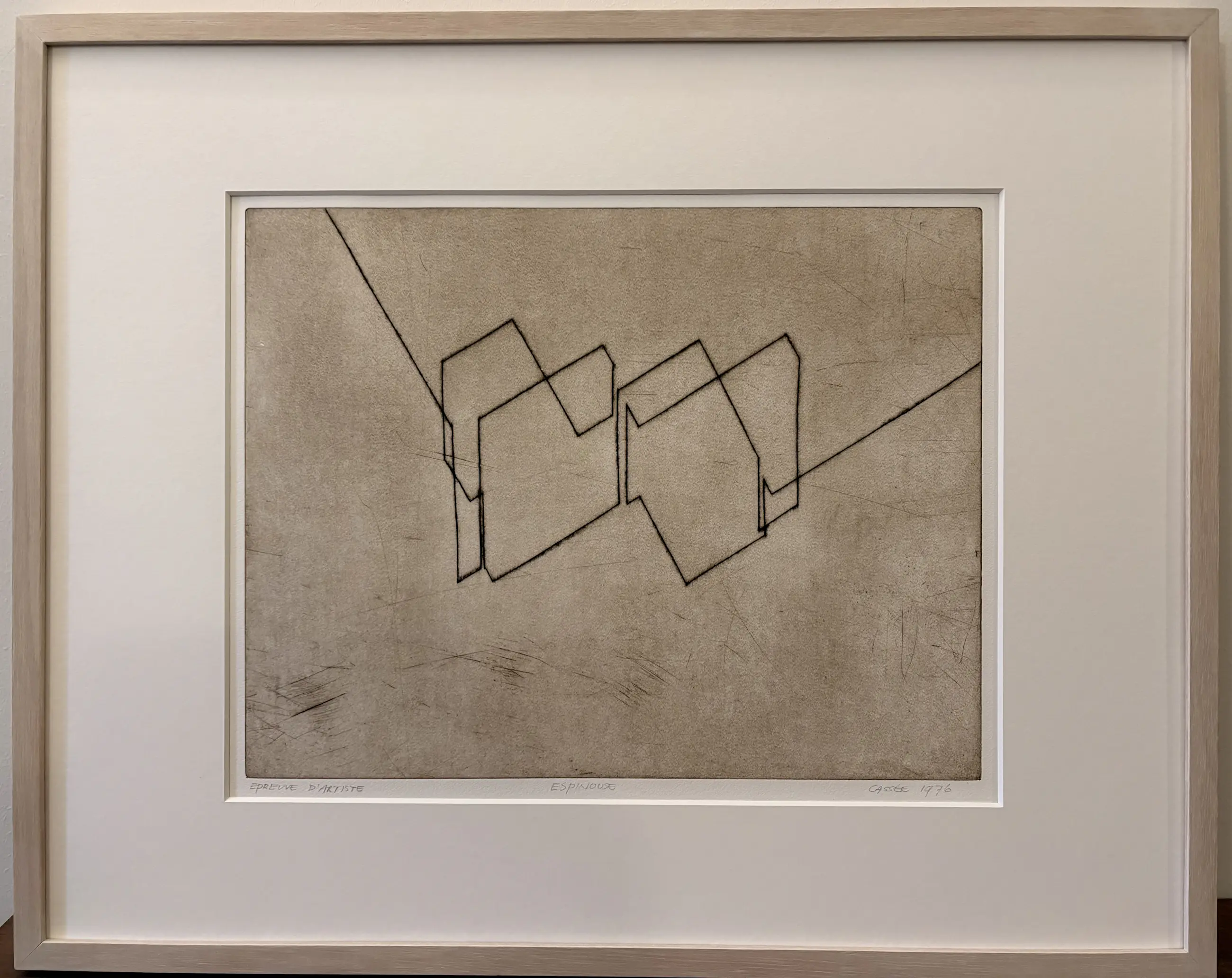 Mooie ets van Dick Cassée. In goede neutrale lijst. Epreuve d'artiste. in fraaie staat. Titel van het werk Espinouse. Glas ontbreekt. Geen schade aan ets.