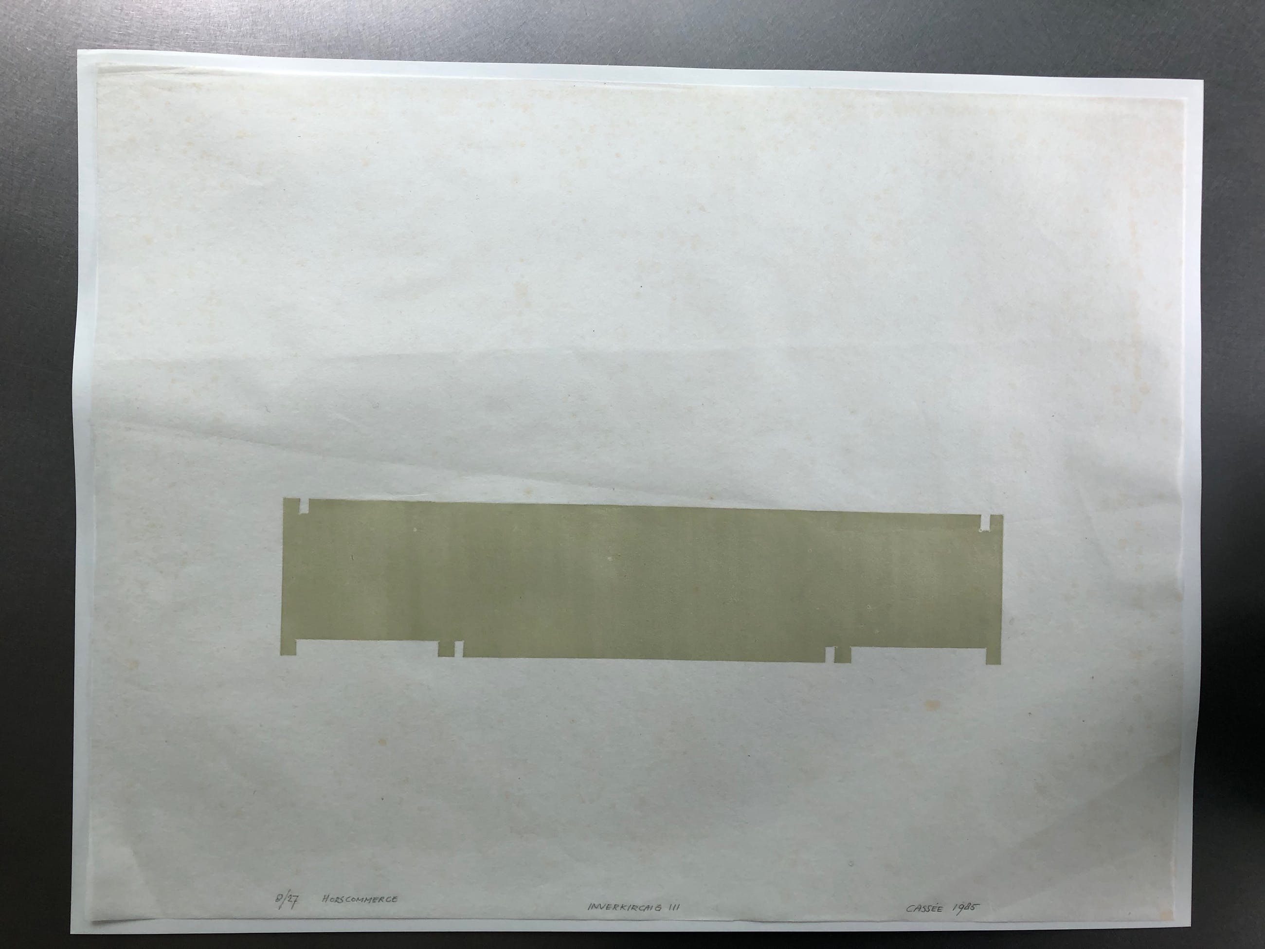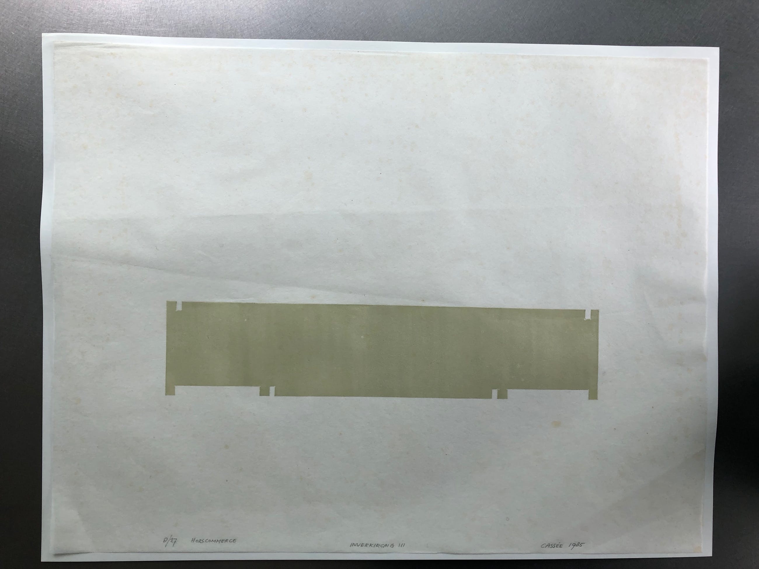 Aangeboden wordt een metaaldruk in olijfgroen op zeer dun zijdepapier. Het werk is lang bewaard en vertoont daarvan wat sporen.