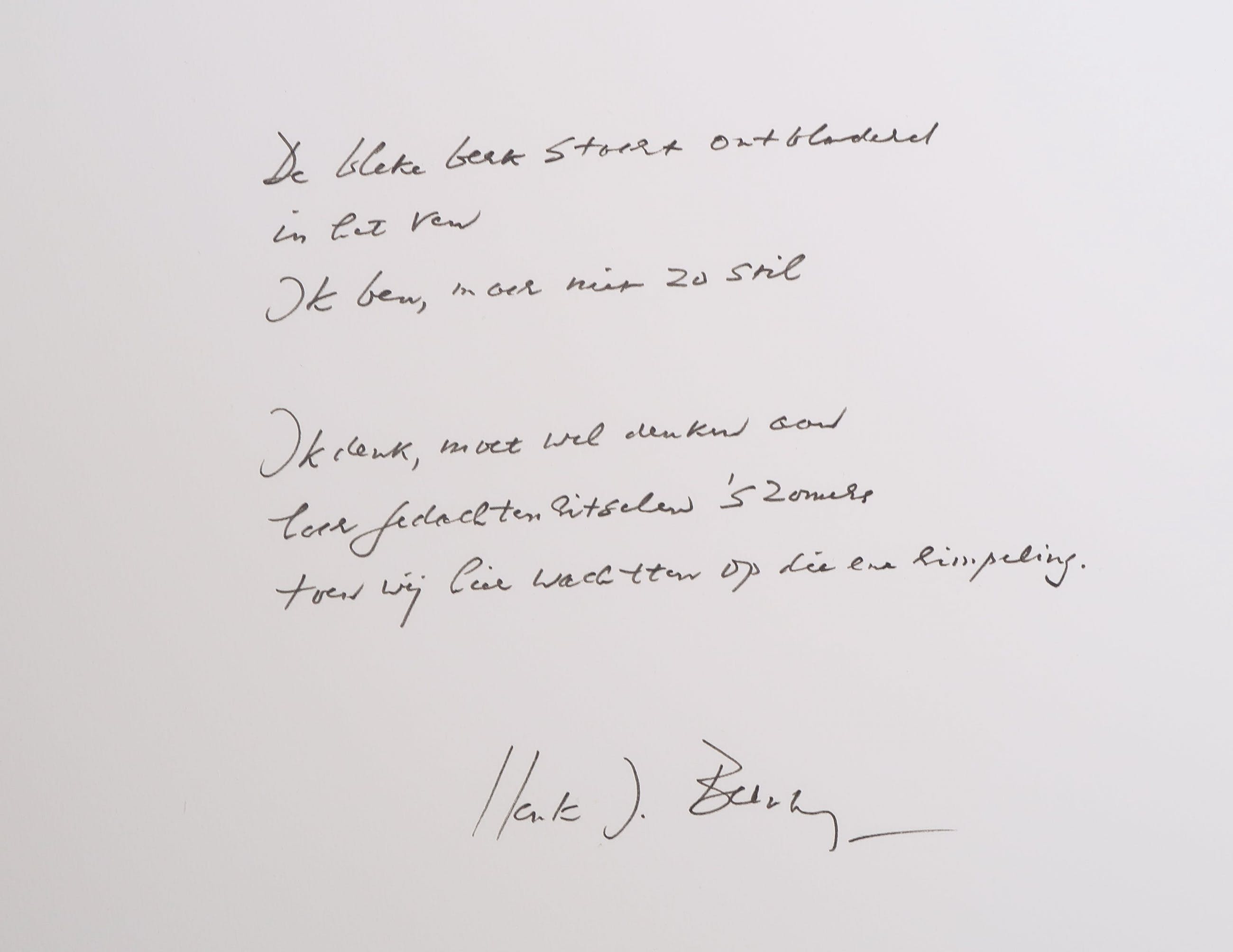 Wij bieden nu meerdere werken uit deze serie aan. De grafiek-werken zijn samen met het gedicht op een stevig onderblad bevestigd.