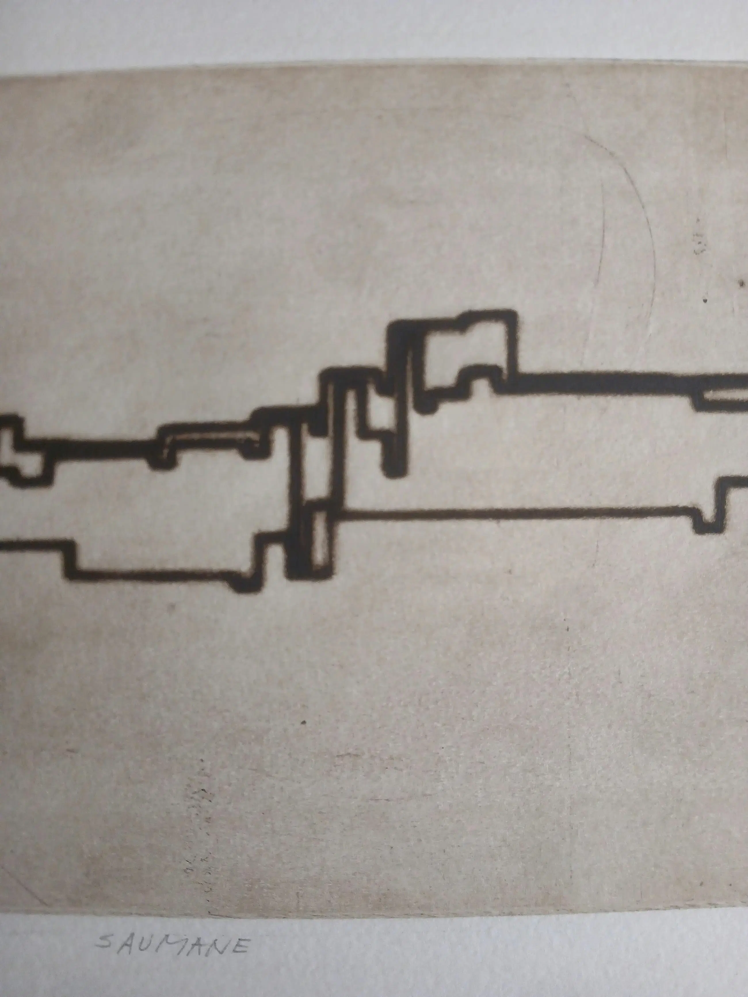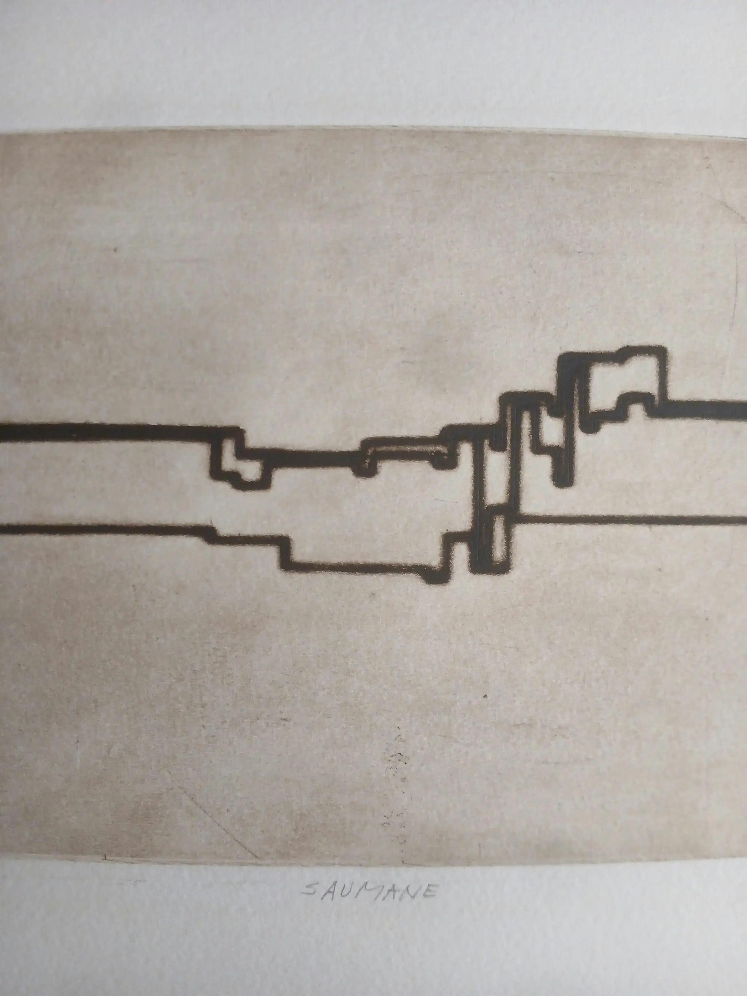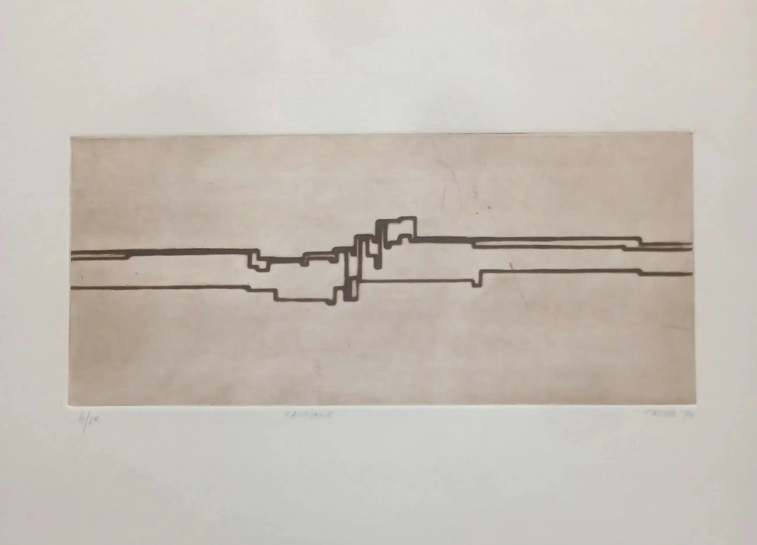 Een heel fraai werk van Dick Cassee. Vervaardigd in 1974 Oplage enigszins onduidelijk. Er staat : 6/1X Handgesigneerd rechts onder In het midden onder de titel " Saumane". Het werk zelf meet 14,5 cm hoog En 33,5 cm breed. Het handgeschepte papier meet: 38 x 57 cm. Het werk verkeerd in zeer goede staat. Het werk wordt goed en veilig verpakt en verstuurd.