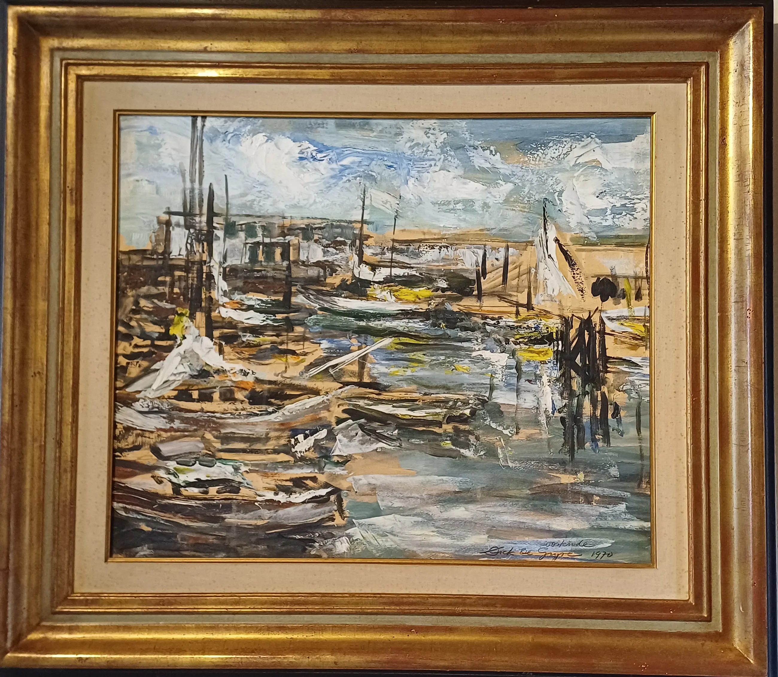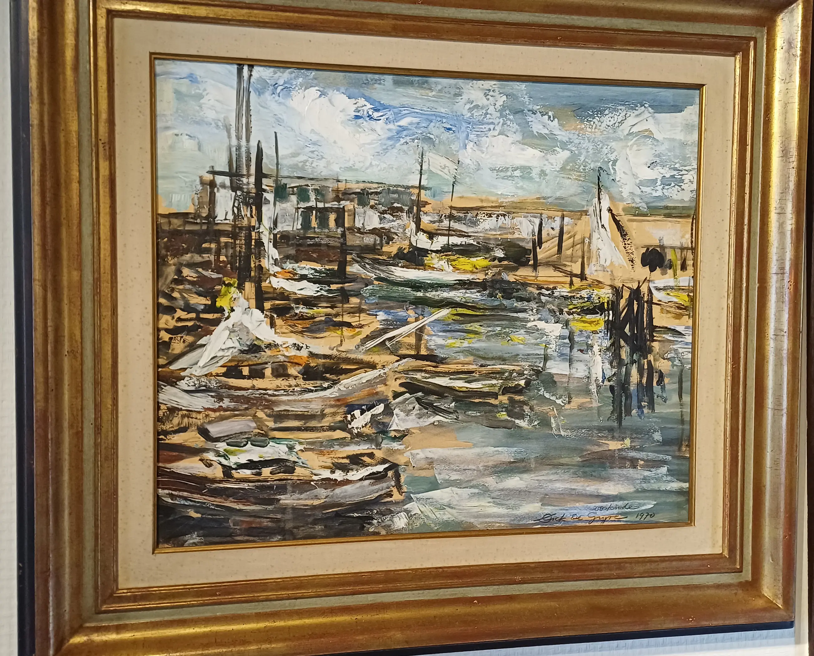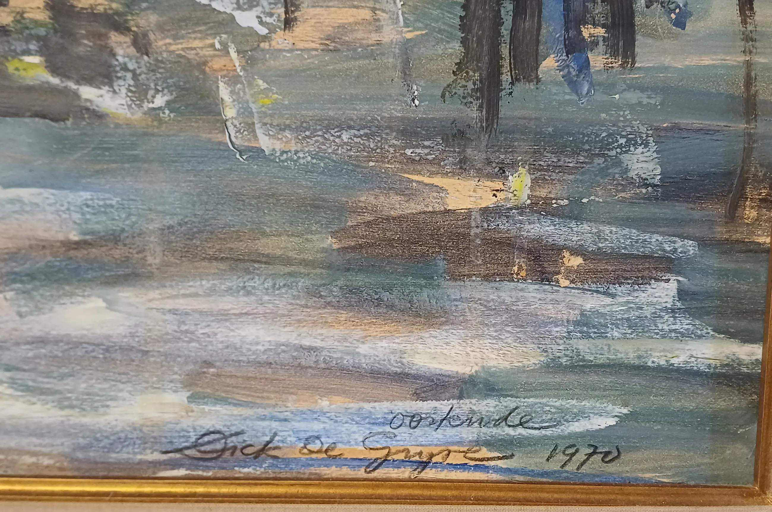 Intact werk (acryl op paneel) van Dick De Gryse. Dick De Gryse (Kortrijk 1942 - Sint Martens-Laten 2022) was een kunstschilder en cafébaas in Sint Martens-Latem. Hij studeerde aan de Académie des Beaux-Arts et des Arts Décoratifs in Doornik. In de jaren '70 richtte hij cafe Den Atelier op en werd naast kunstschilder ook een echte volksfiguur.