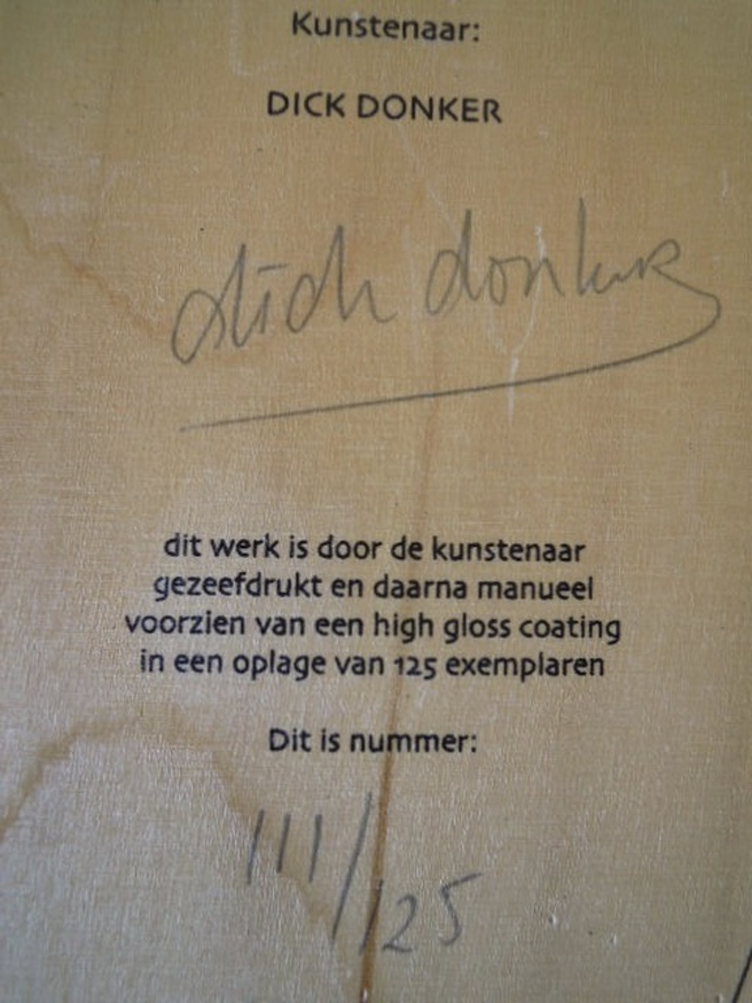 Prachtige zeefdruk die op een speciale manier is voorzien van een high gloss coating - dit geeft een zeer apart effect aan het kunstwerk.
