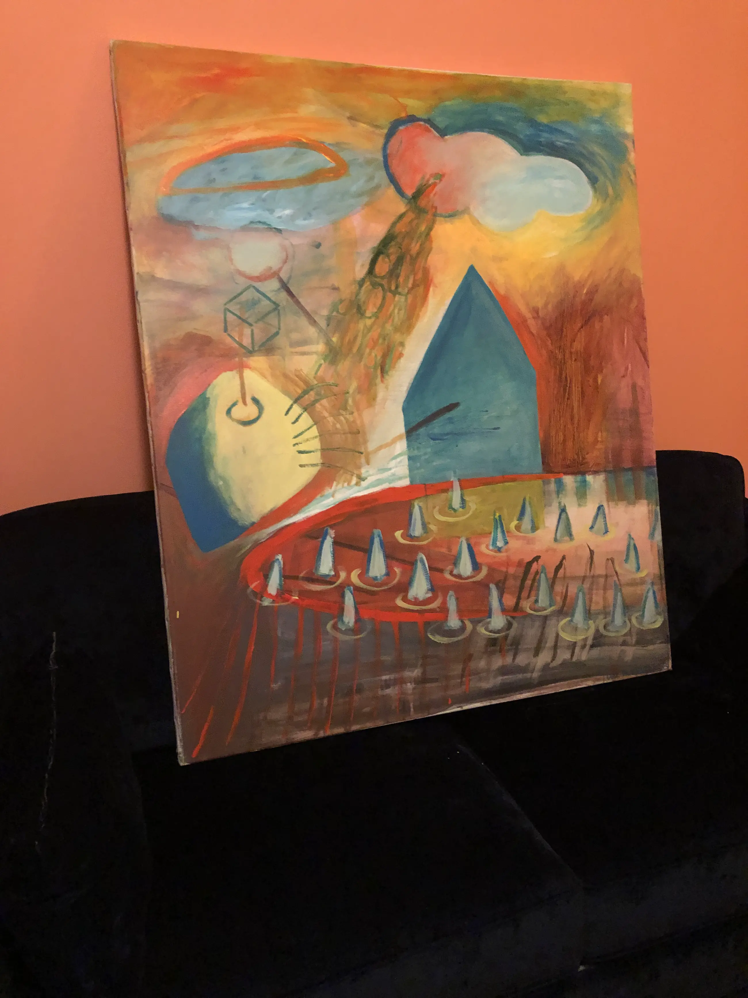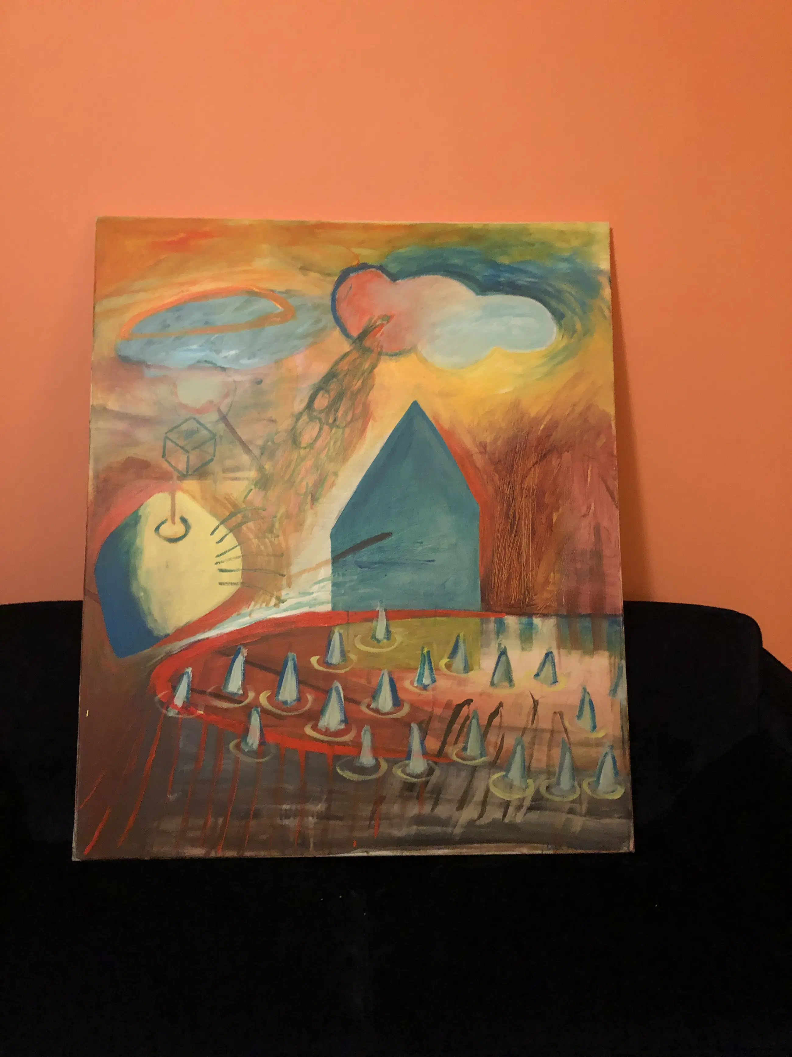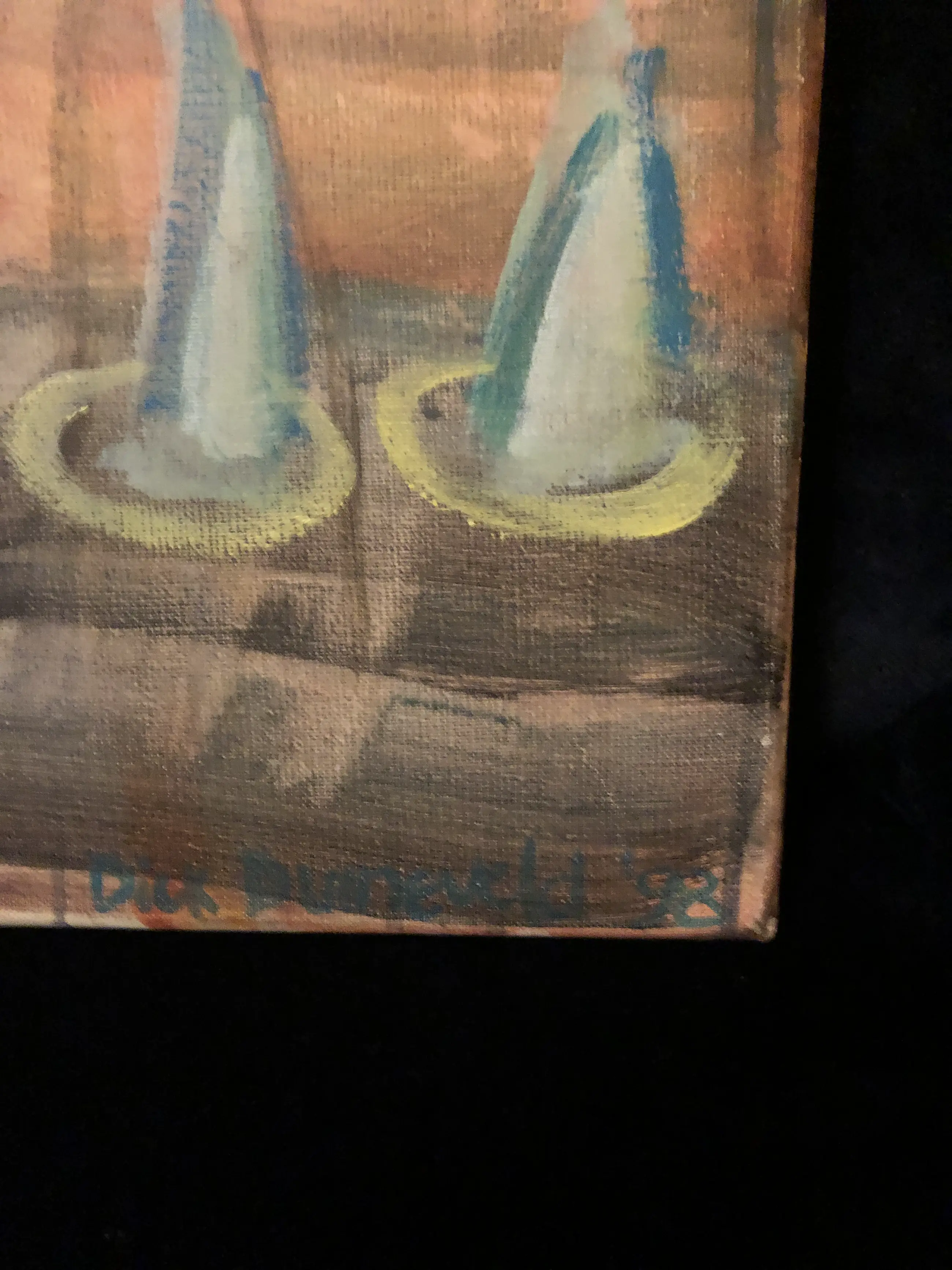 In goede staat handgesigneerd schilderij van Dick Duineveld op spanraam.