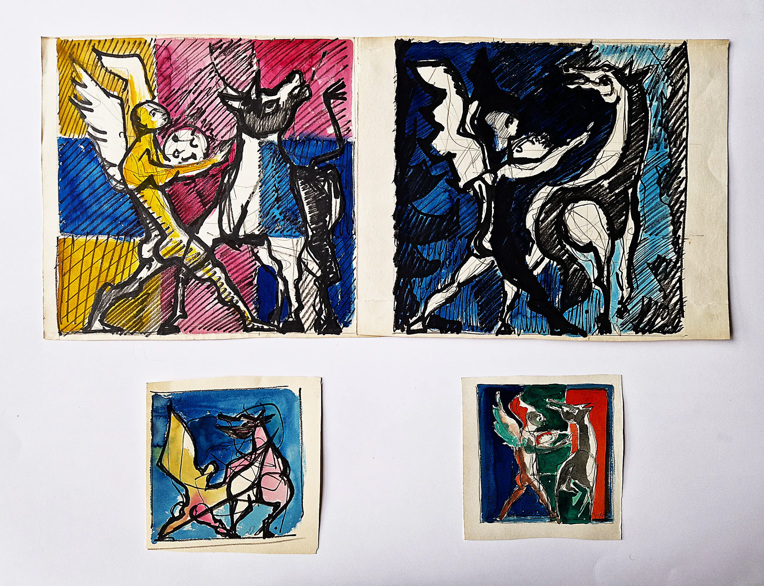 Dick Elffers (Rotterdam, 1910 – Amsterdam, 1990) doorloopt eind jaren twintig de kunstacademie. Opgeleid tot grafisch ontwerper gaat hij na zijn opleiding zelf als docent werken aan de academie. Tijdens en na zijn studie assisteert hij vormgevers Paul Schuitema en voor Piet Zwart, bij wie hij zeven jaar werkt en zijn belangrijkste assistent wordt. In mei 1940 wordt zijn atelier in Rotterdam gebombardeerd en verhuist hij naar Amsterdam. Na de oorlog ontwikkelt hij zich tot een veelzijdig kunstenaar en vooraanstaand ontwerper, werkend voor onder meer het Rijksmuseum en het Holland Festival. Hij verdiept zich in allerlei disciplines, als schilder, tekenaar, graficus, ontwerper, beeldhouwer, illustrator en realiseert zeventien typografische boekprojecten. Hij ontwikkelt zich in allerlei vakgebieden als keramiekreliëfs, wandtapijten en architectonische ontwerpen. Van 1970 tot 1976 is hij als docent monumentale kunst verbonden aan de kunstacademie in Den Bosch. Voor zijn werk ontvangt hij de H.N. Werkman Prijs en de Staatsprijs voor Typografie en zijn werk wordt opgenomen in de museale collecties.