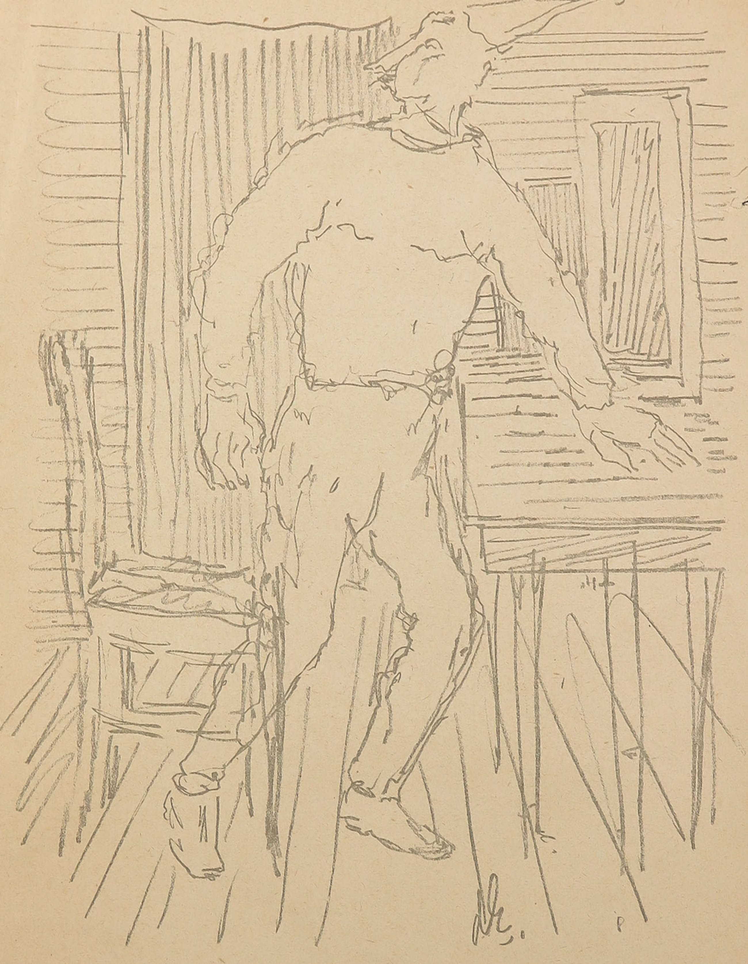 De wasco tekening is in zeer goede staat, maar in het midden lijkt een soort vochtvlek te zitten. De tekening die erbij komt is beschadigd langs de randen en op meerdere plekken ingescheurd. Blad is eveneens sterk vergeeld. | |||