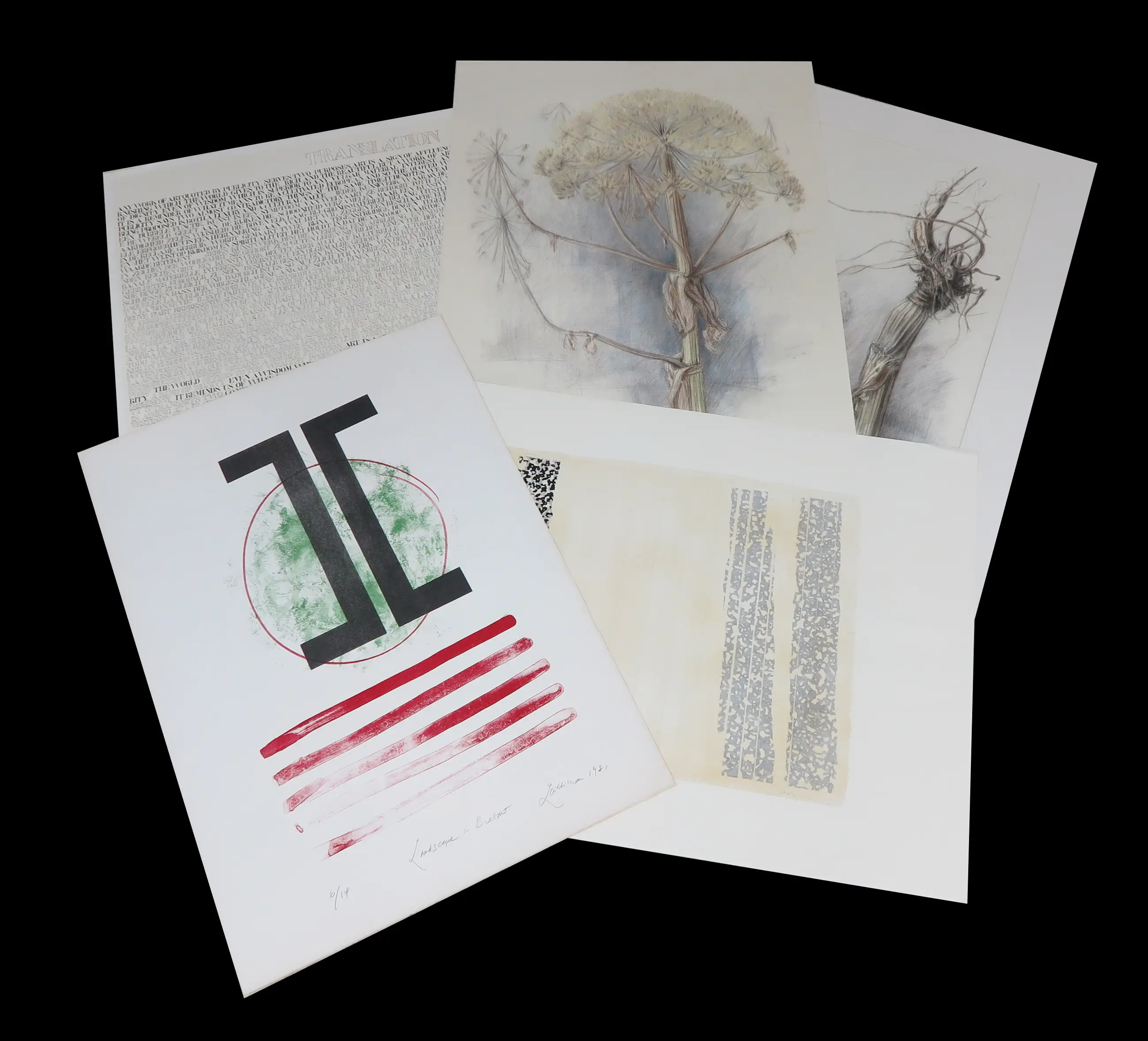 | De conditie van de werken in dit lot verschilt. Over het algemeen zijn de werken in goede staat. Maar de werken kunnen enkele beschadigingen hebben (vouwlijnen, gekreukt papier, verkleuring, scheurtjes). Individuele werken worden niet beschreven. | |