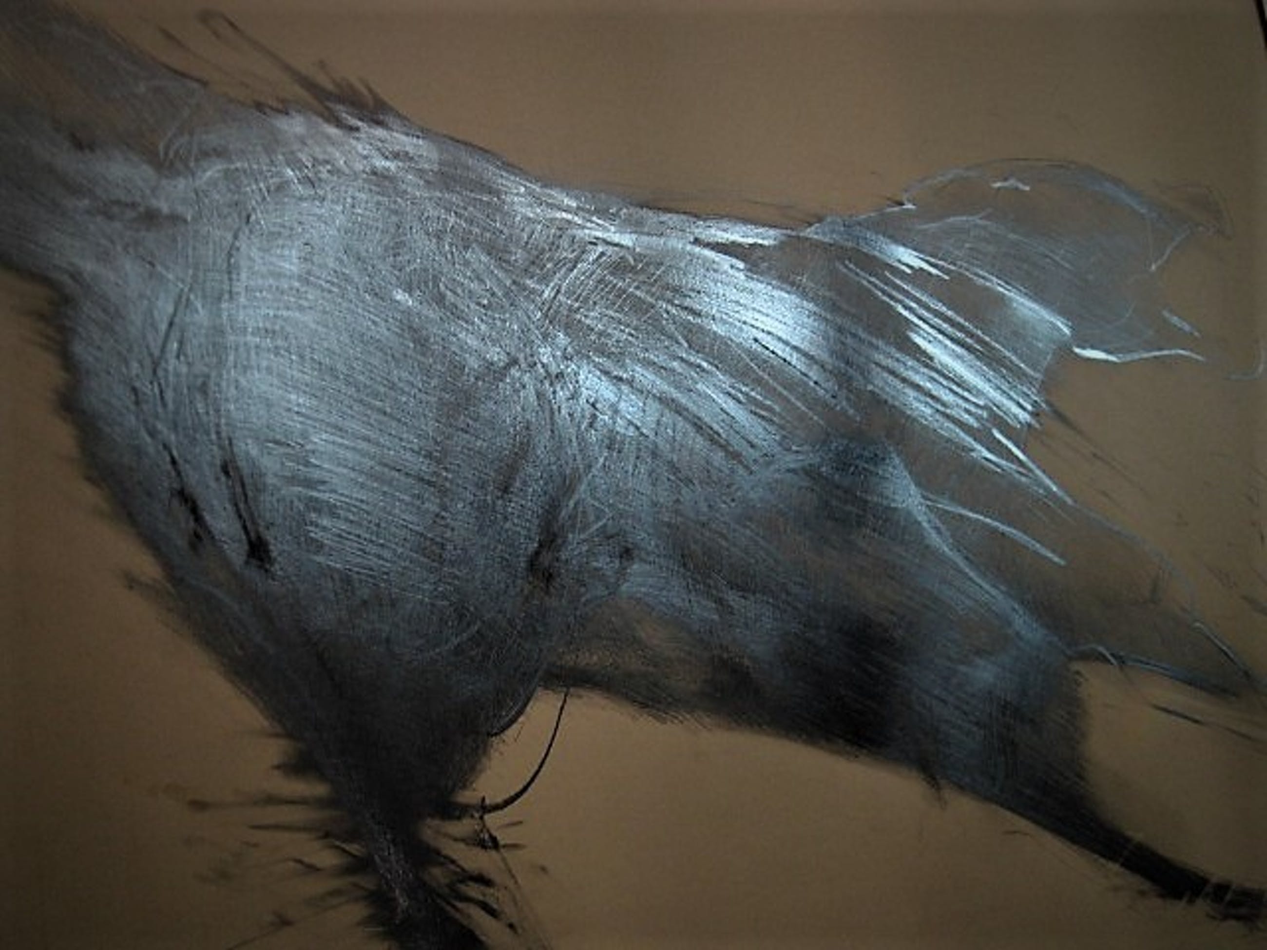 Het werk is figuratief met daarin abstracties, de dieren en mensen zijn niet identificeerbaar en op het doek of het papier ontvouwt zich een beeld dat geisoleerd is van de werkelijkheid, als op een toneel.