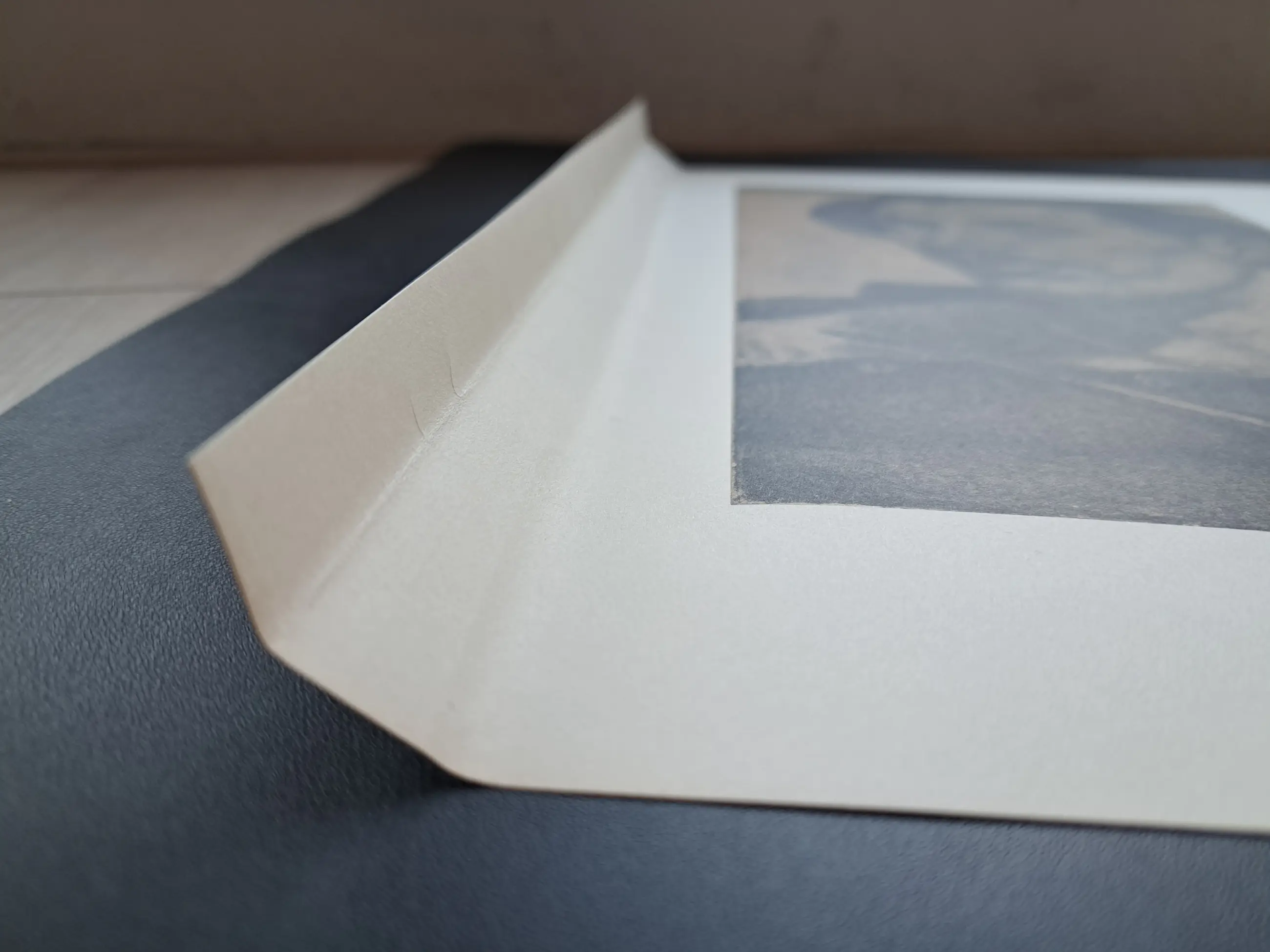 Voorzijde van de folder heeft vlekjes en wat verkleuring, de overige zijdes zijn elk in goede staat. Helaas hebben twee van de drukken een tweetal vouwen gekregen, momenteel zijn ze aan het uitvlakken. Bij een eventuele inlijsting zou het bedekt kunnen worden met een passe-partout.