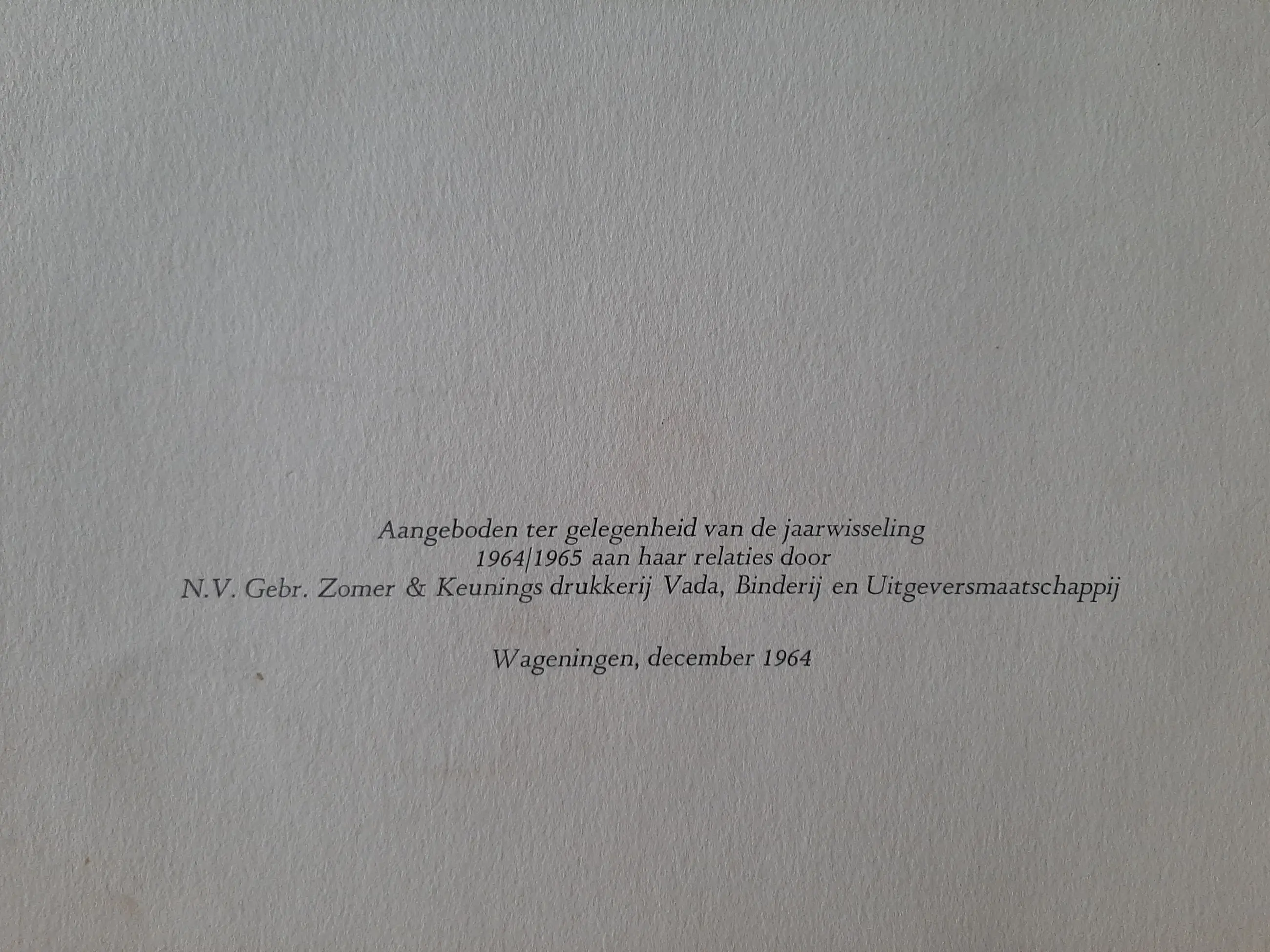 Zeldzame uitgave van eind 1964 door drukkerij N.V. Gebr. Zomer & Keunings drukkerij Vada, in samenwerking met Johan Mekking, conservator van het Gemeentemuseum te Arnhem.
