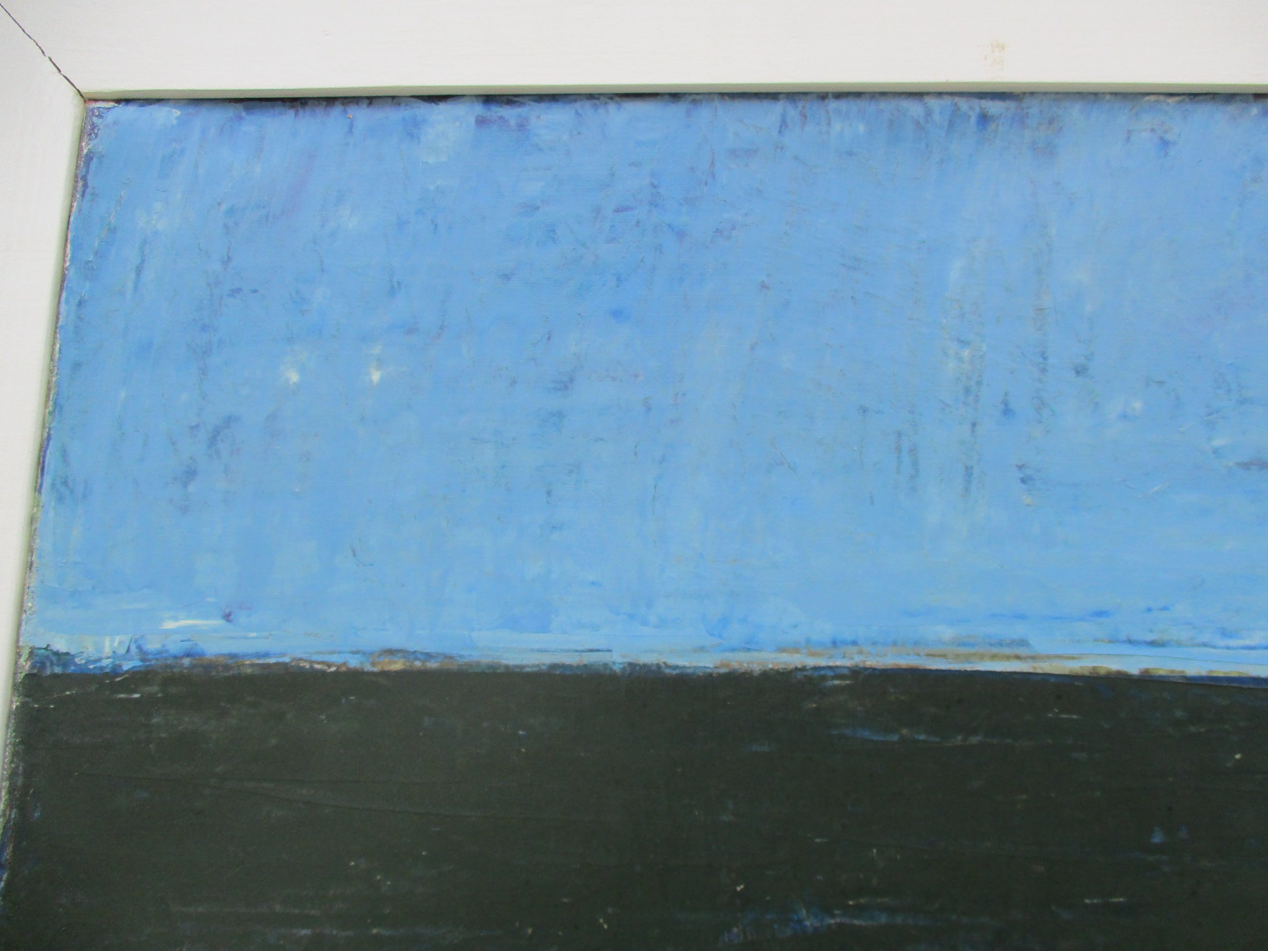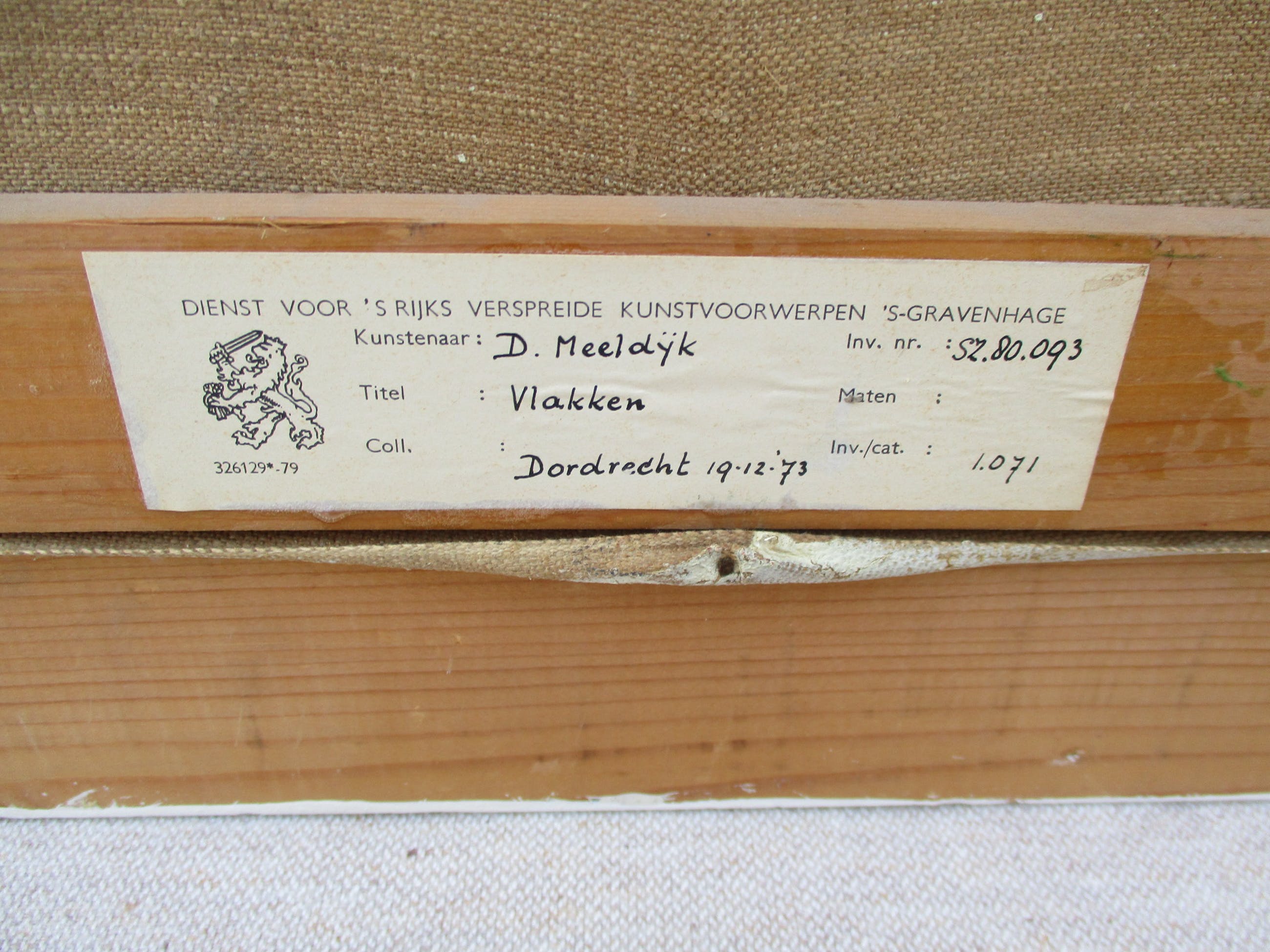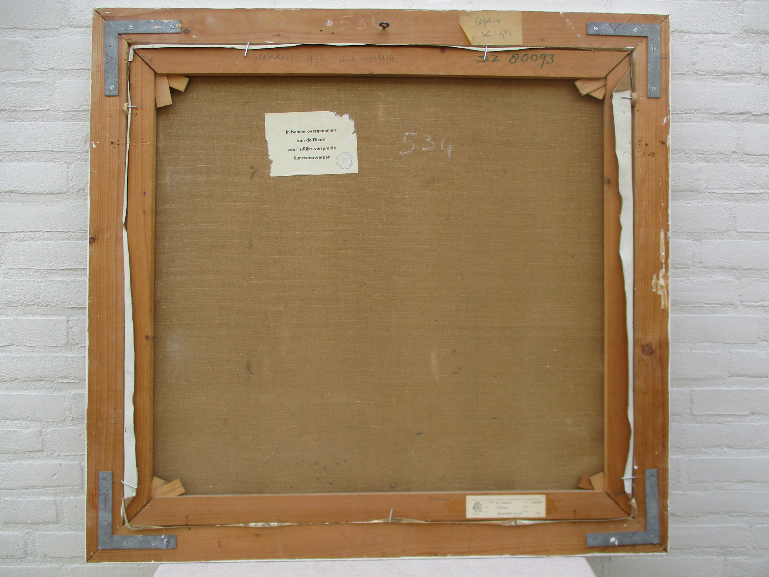 Dit werk is aan de achterzijde gesigneerd. Het werk is ingelijst in een brede houten lijst. De lijst heeft wat lichte gebruikssporen.