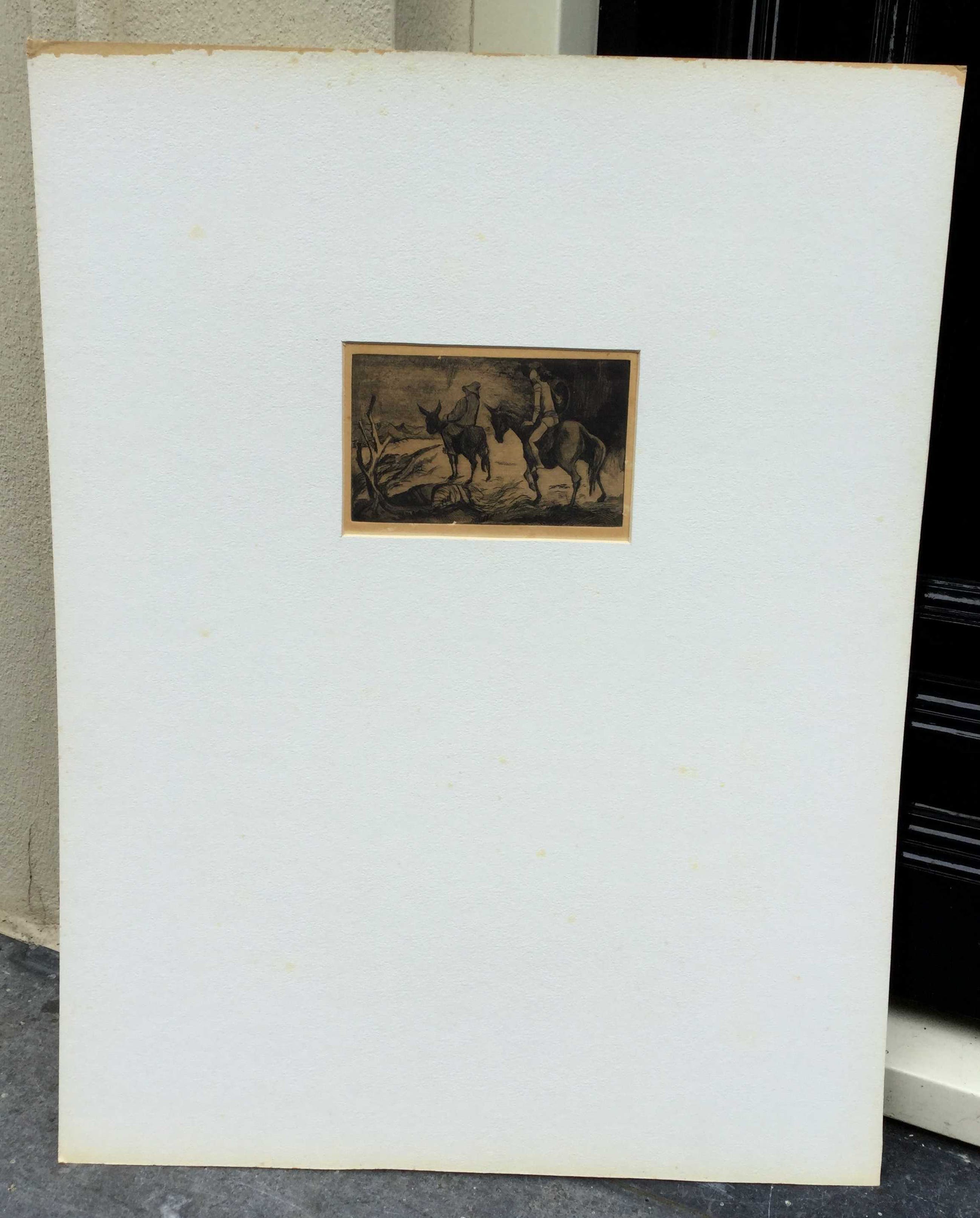| Papier vergeeld, bevat oppervlaktevuil. Passe-partout vergeeld, bevat oppervlaktevuil en slijtschade door de tijd. | |