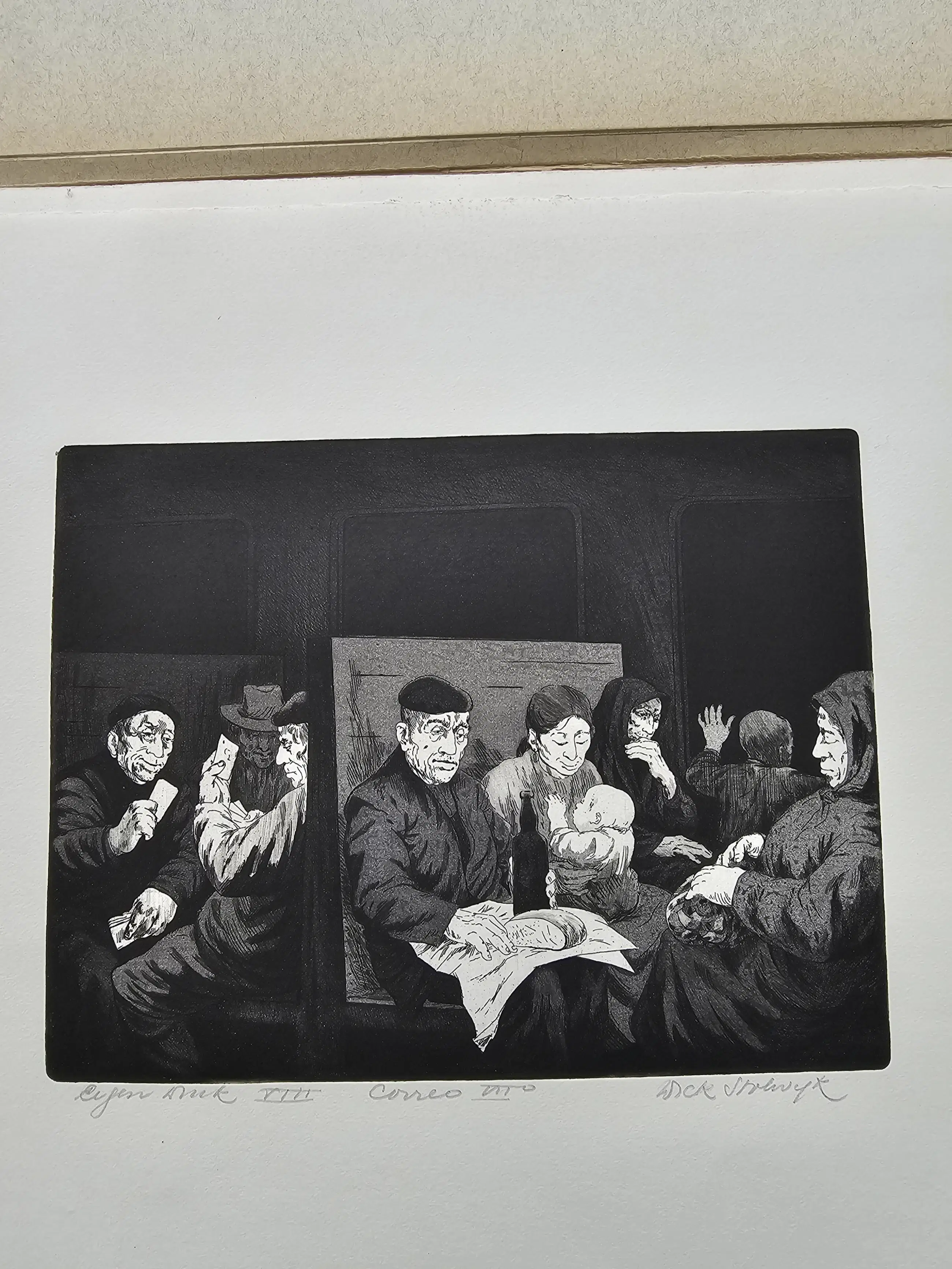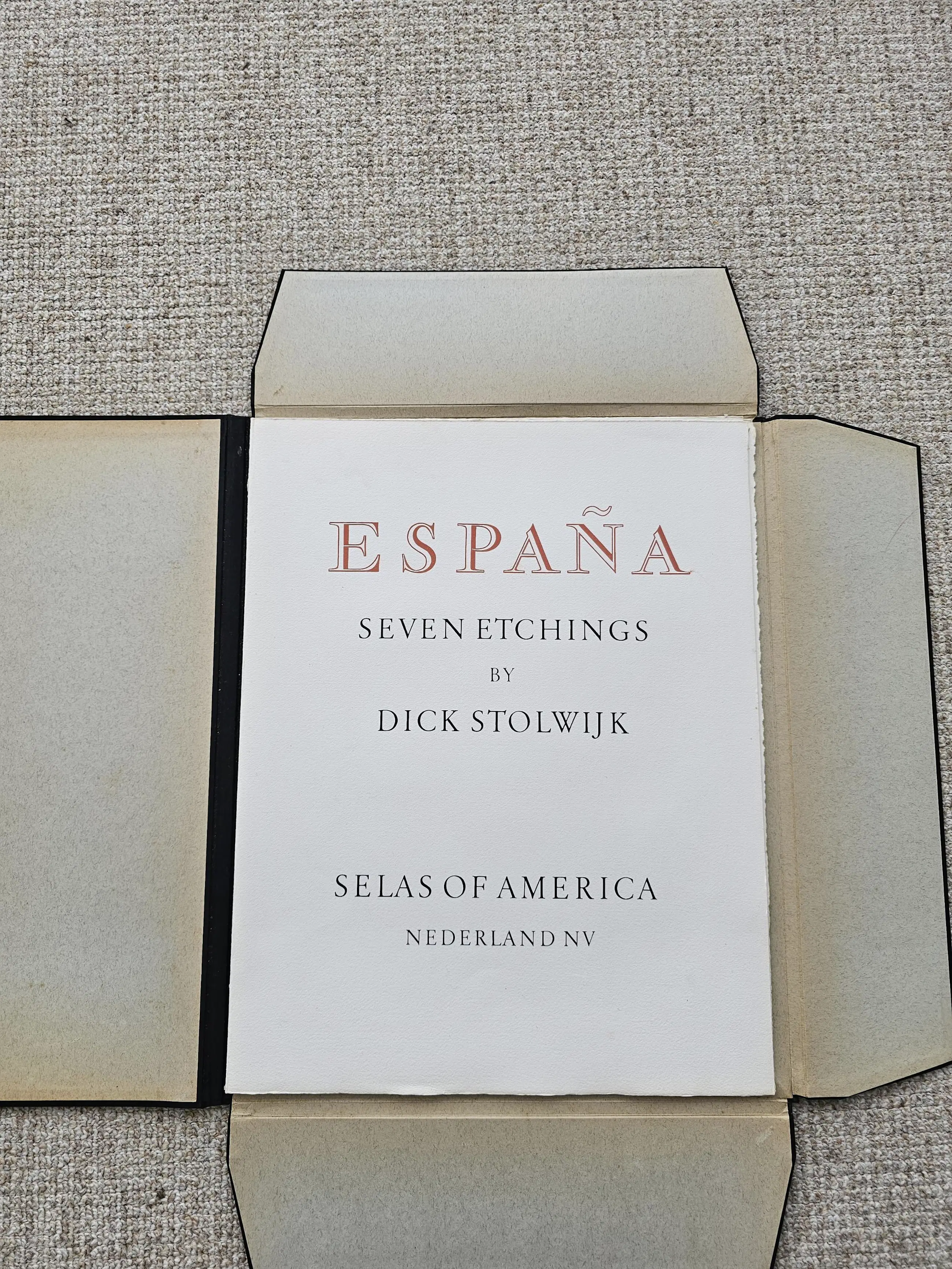 Een mooie originele map met 7 etsen van de kunstenaar Dick Stolwijk 1931