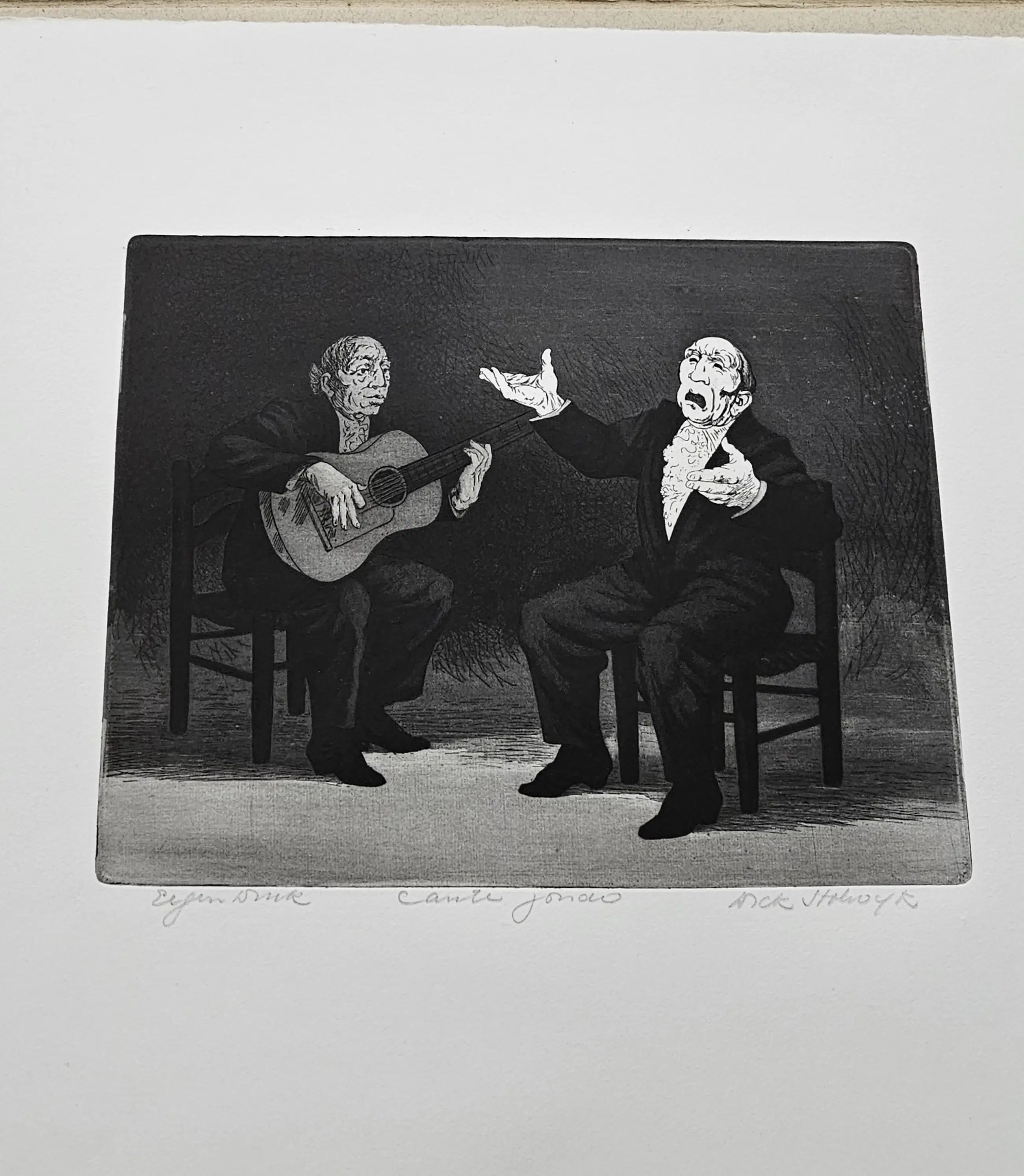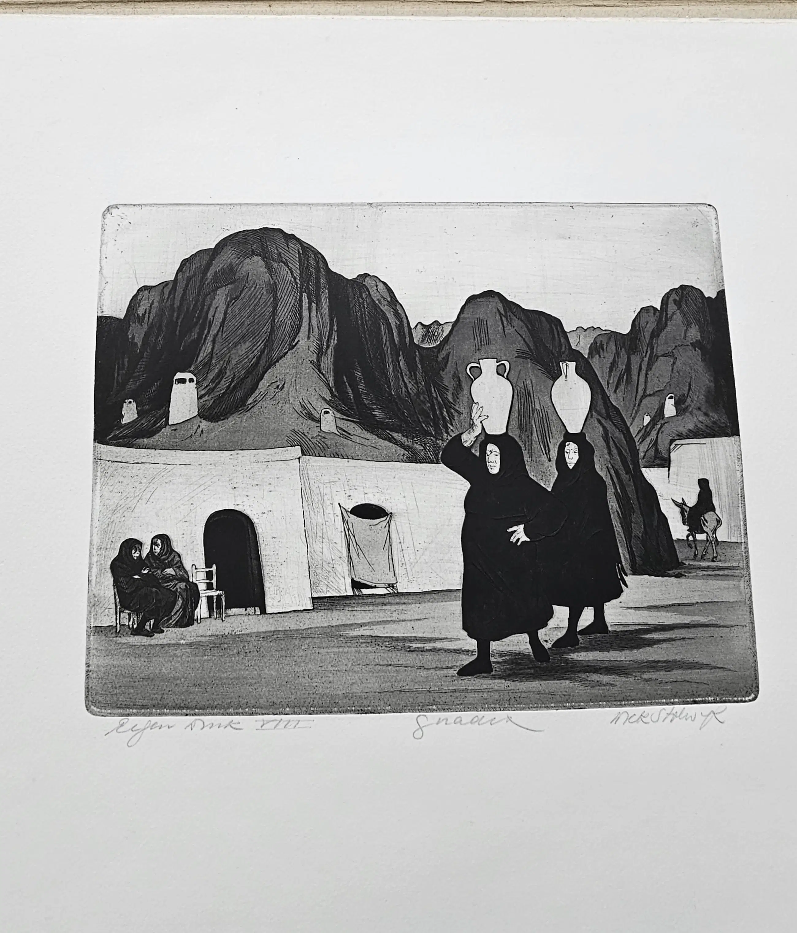 De etsen zijn hand-gedrukt op Hahnemülle Bütten papier door Piet Clement.
