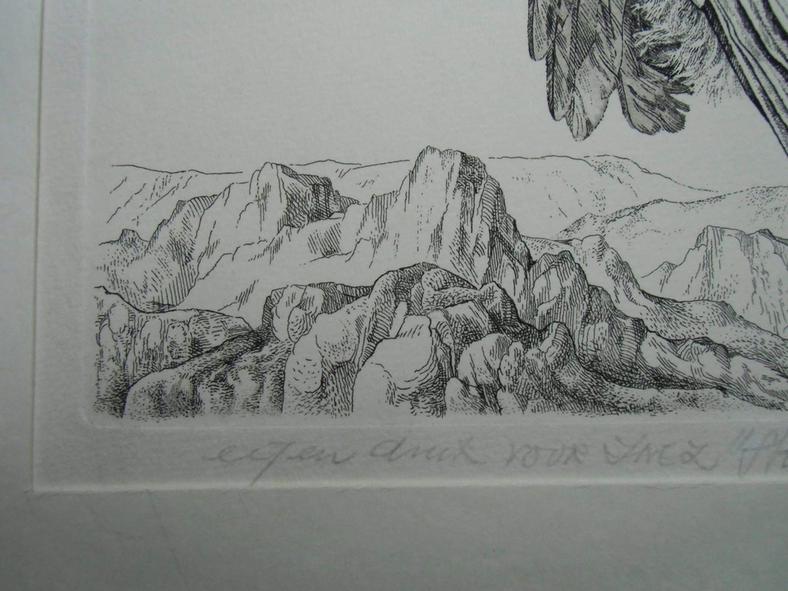 Materiaal : ets op papier. Opgenomen in passepartout met achtervel