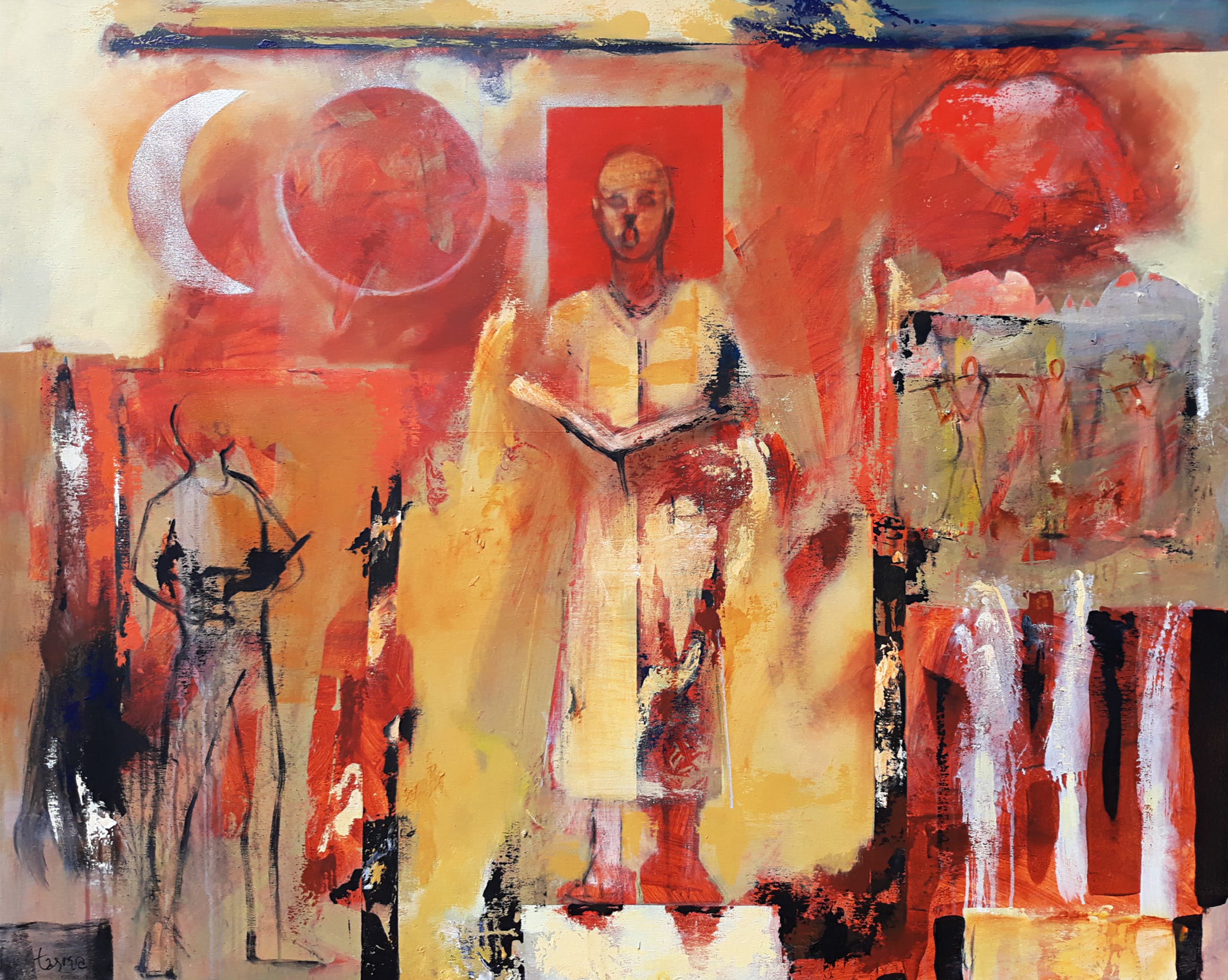 Zeer mooi, groot werk van Dick Tasma. Olieverf op doek, gesigneerd rechtsonder, in verso getiteld en nogmaals gesigneerd op het spieraam. In complementerende, zeer solide lijst. Alles in zeer goede conditie.