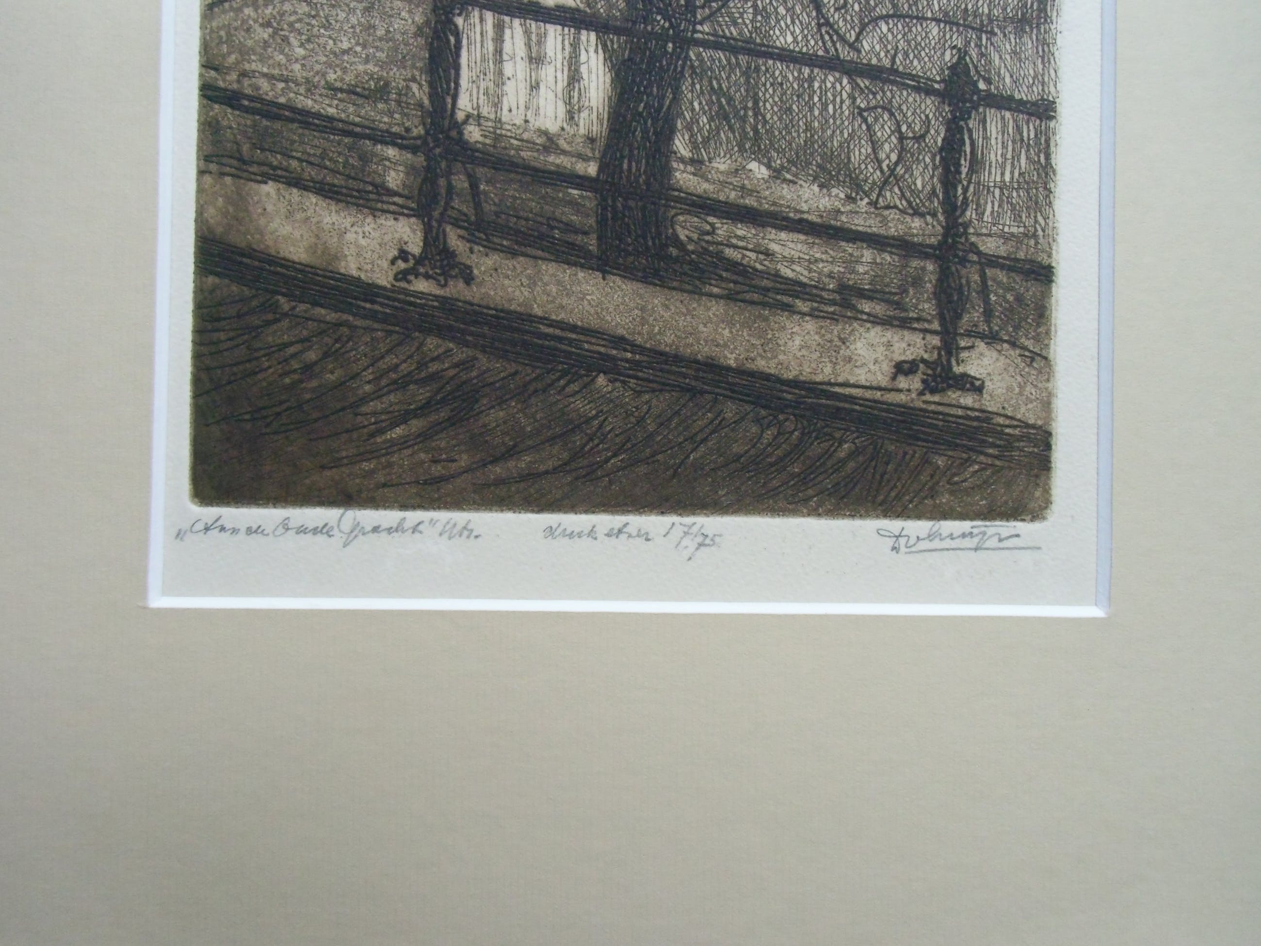 Sfeervol Utrechts beeld van Dick van Luijn in een uitzonderlijk formaat. Gesigneerd , betiteld en gedateerd met potlood. Oplage 17/75.