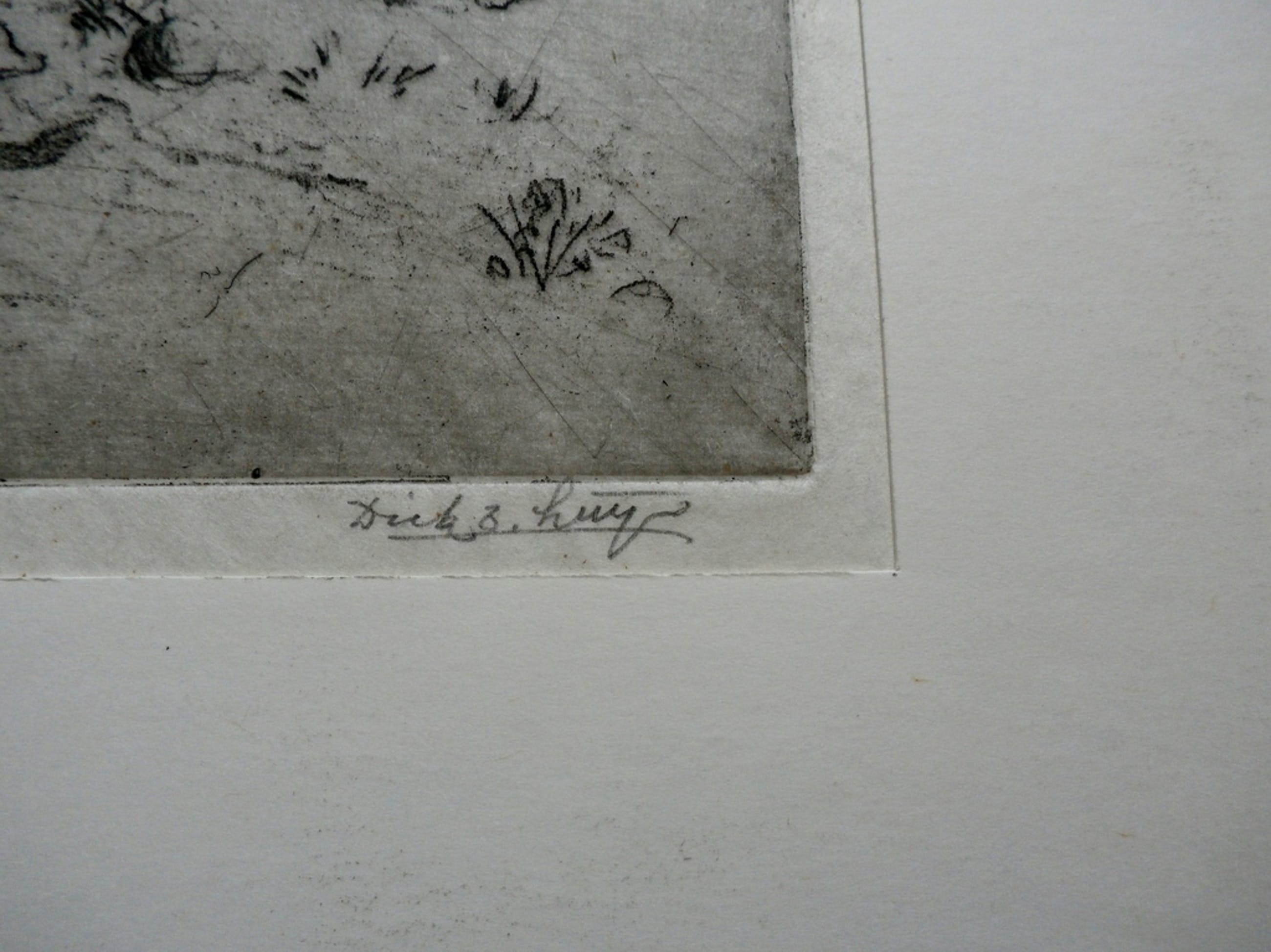 Grote ets van Dick van Luijn op Japans papier. Titel: Schelp. Afmetingen blad: H24,5 x b 28,5 cm. Afmetingen werk: H16 x b19 cm. Het werk is rechtsonder, met potlood, gesigneerd door de kunstenaar. Rechtsonder staat druk van de etser. Conditie: in goede staat. Dick van Luijn behoorde bij het Grafisch gezelschap de Luis. De authenciteit van dit werk wordt volledig gegarandeerd. Een certificaat van echtheid kan, op aanvraag, worden meegestuurd.