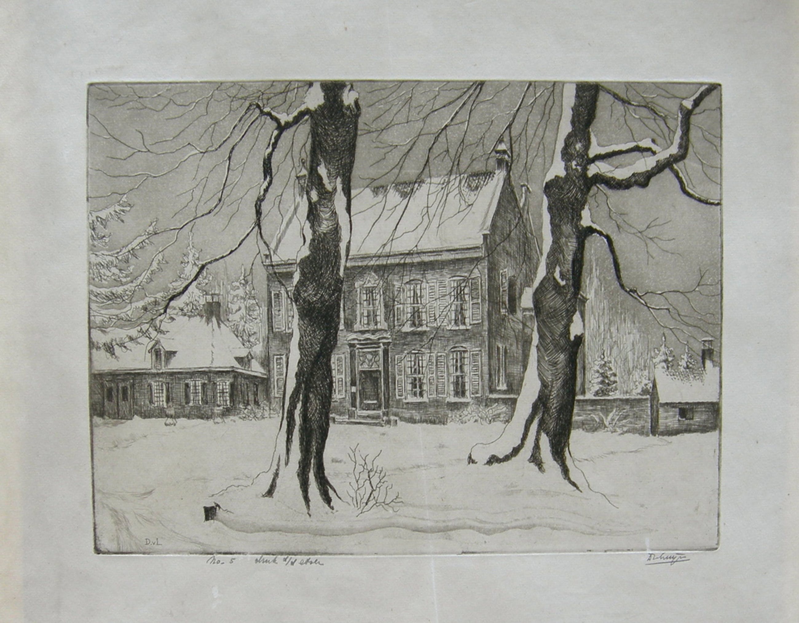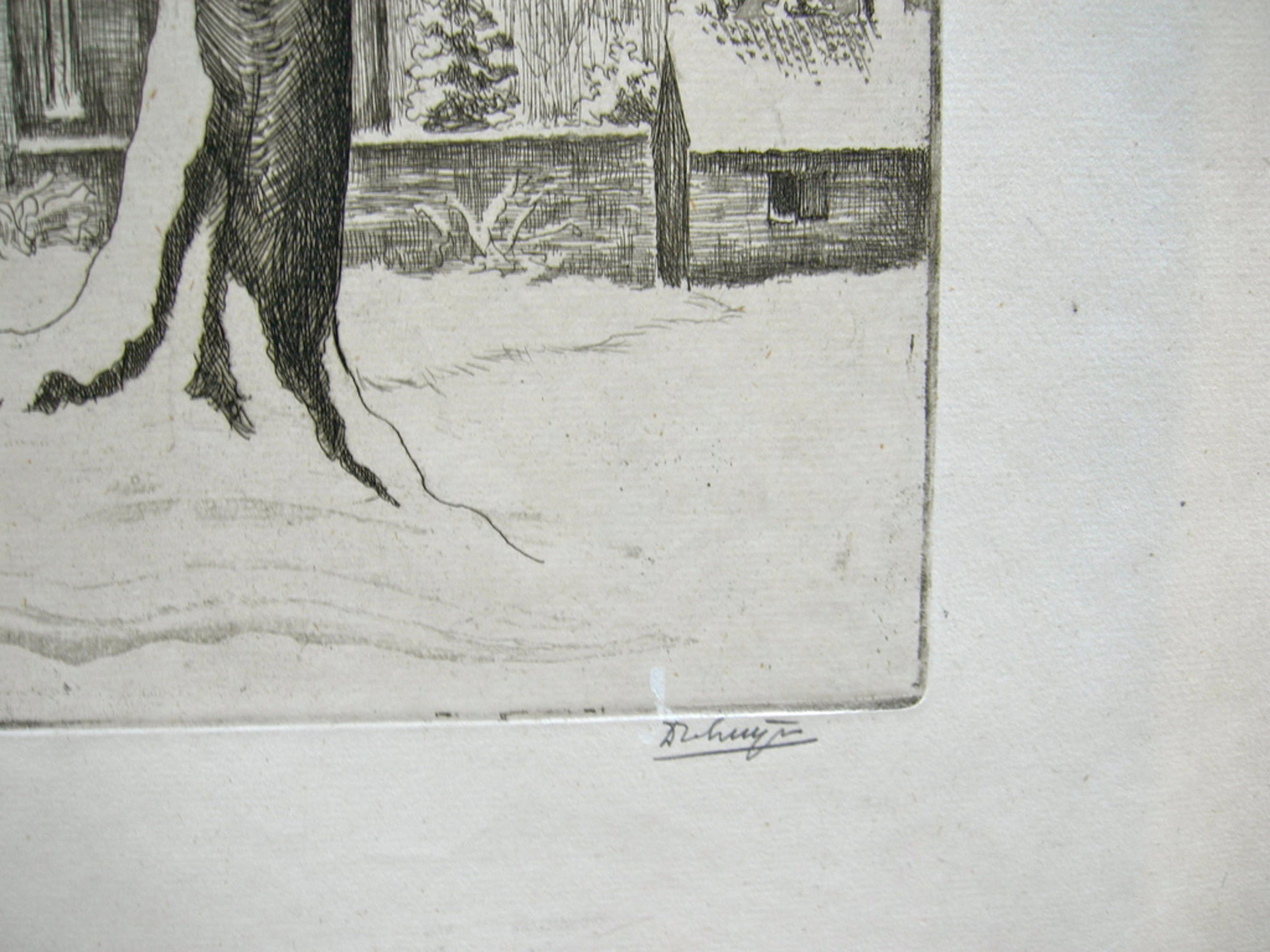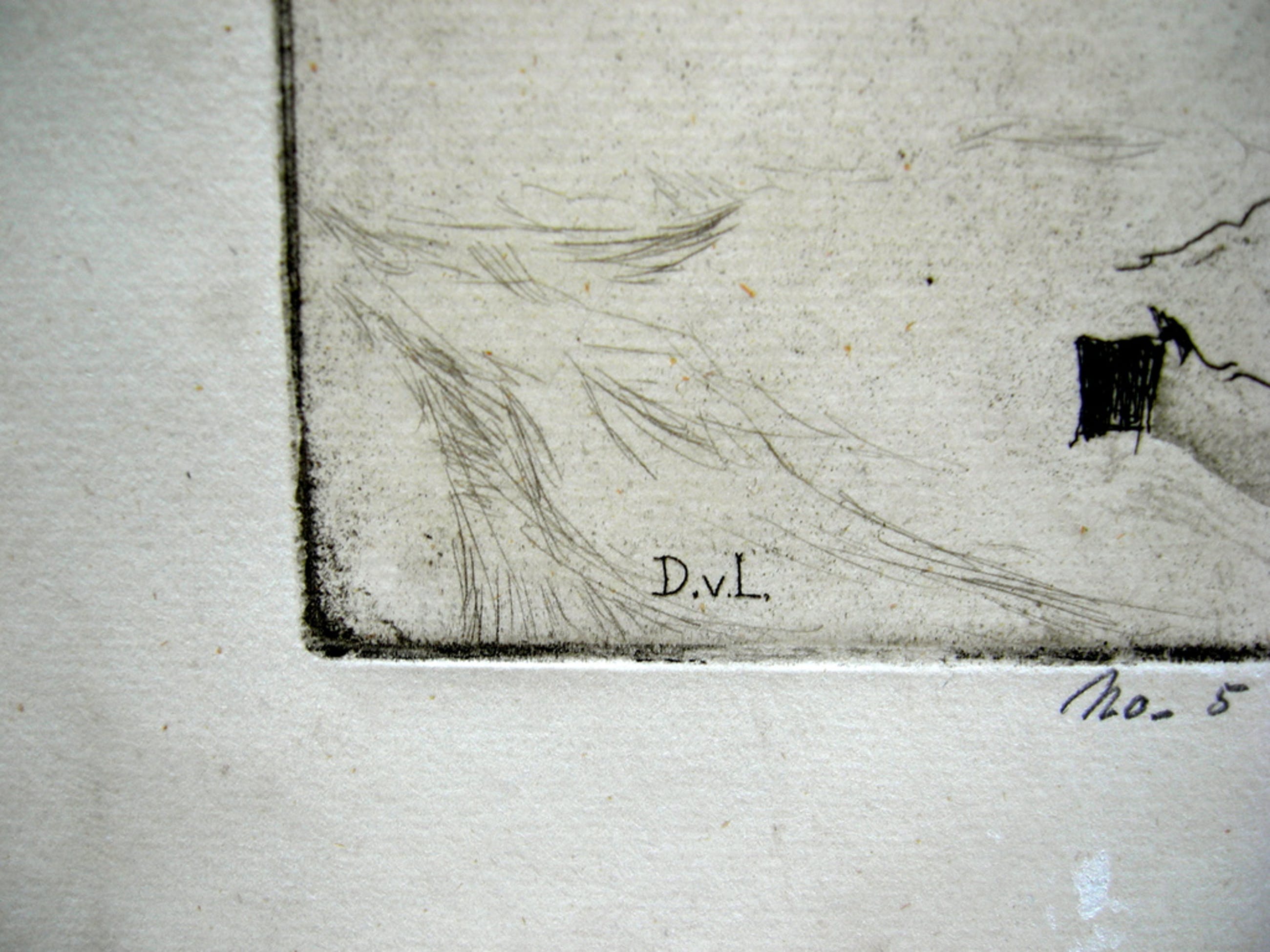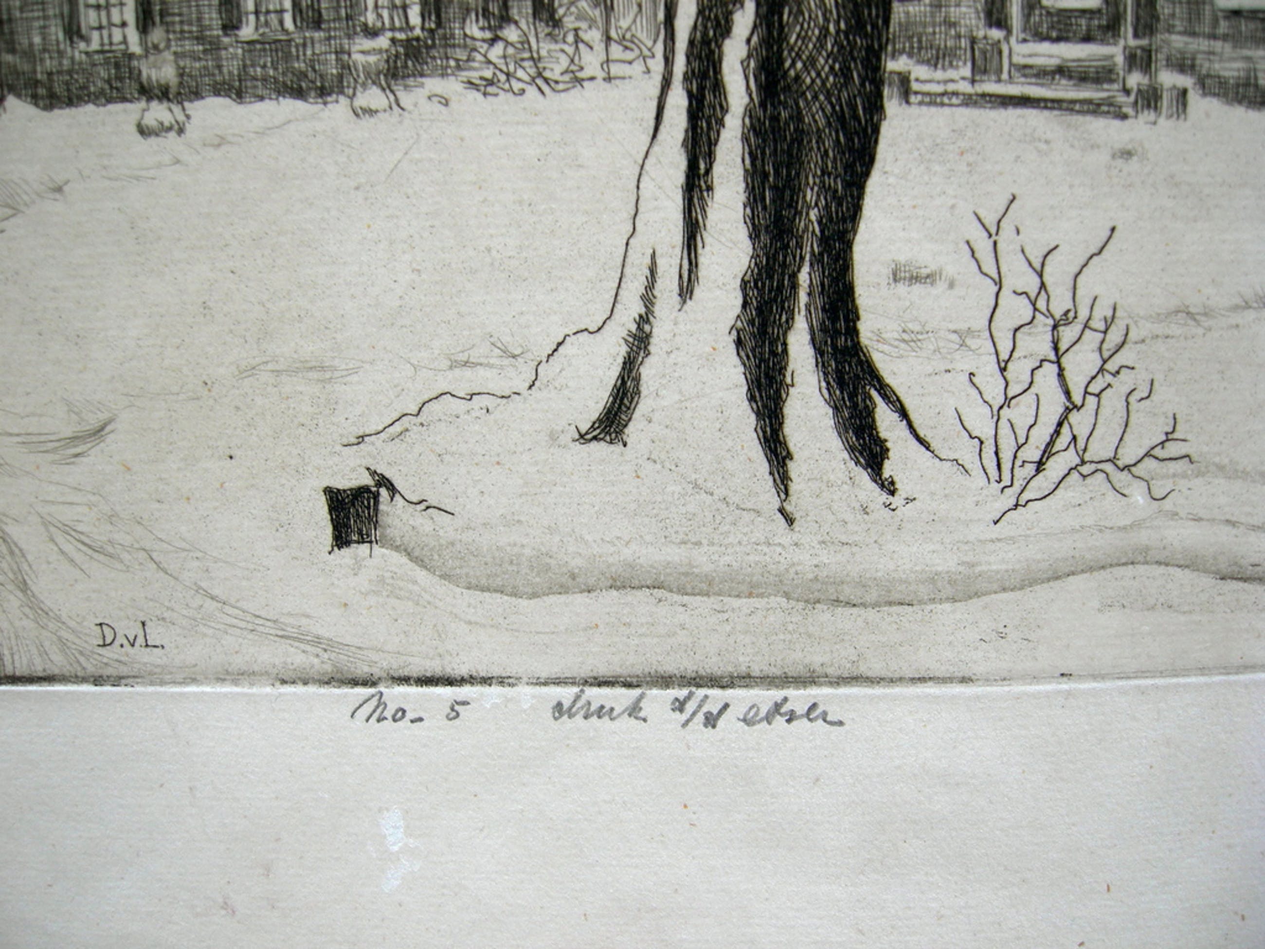 deze ets is gemaakt in 1947 in opdracht van het Comité 'Maartensdijk' voor hulp aan repatriërenden uit Indië. Formaat 240 x 328 mm., gesigneerd met potlood en l.o. in de etsplaat. Het papier is door de tijd ietwat smoezelig geworden, zie foto.