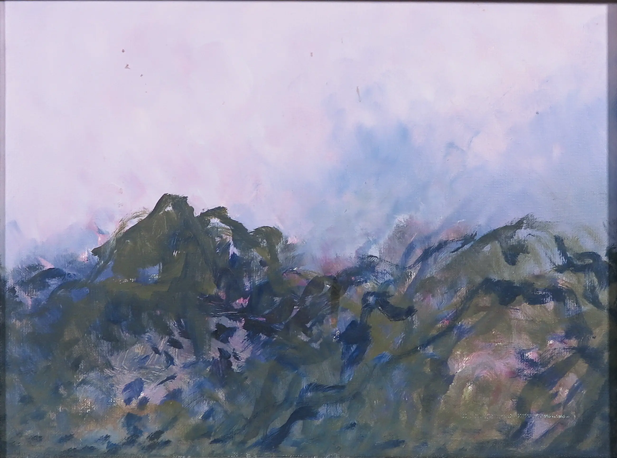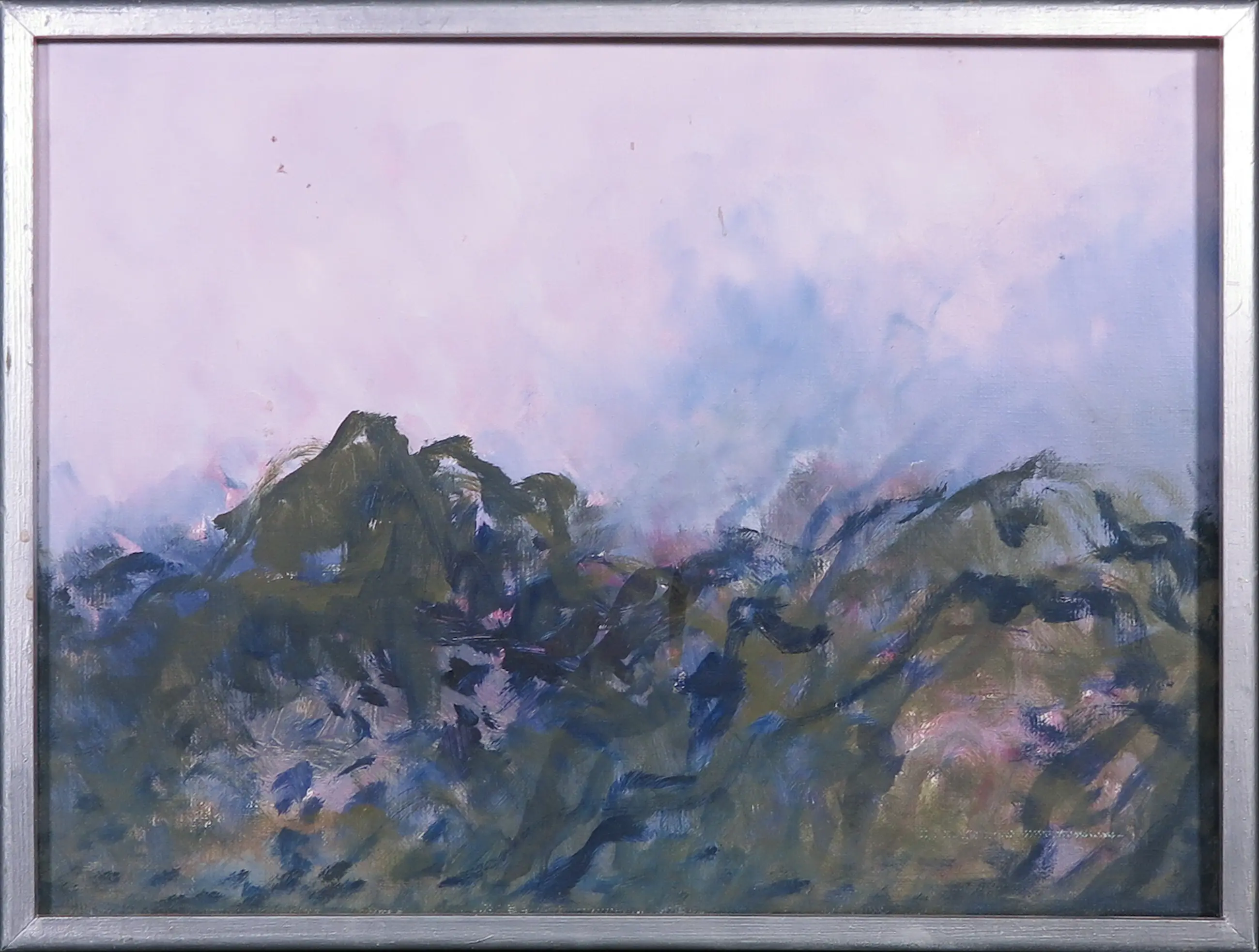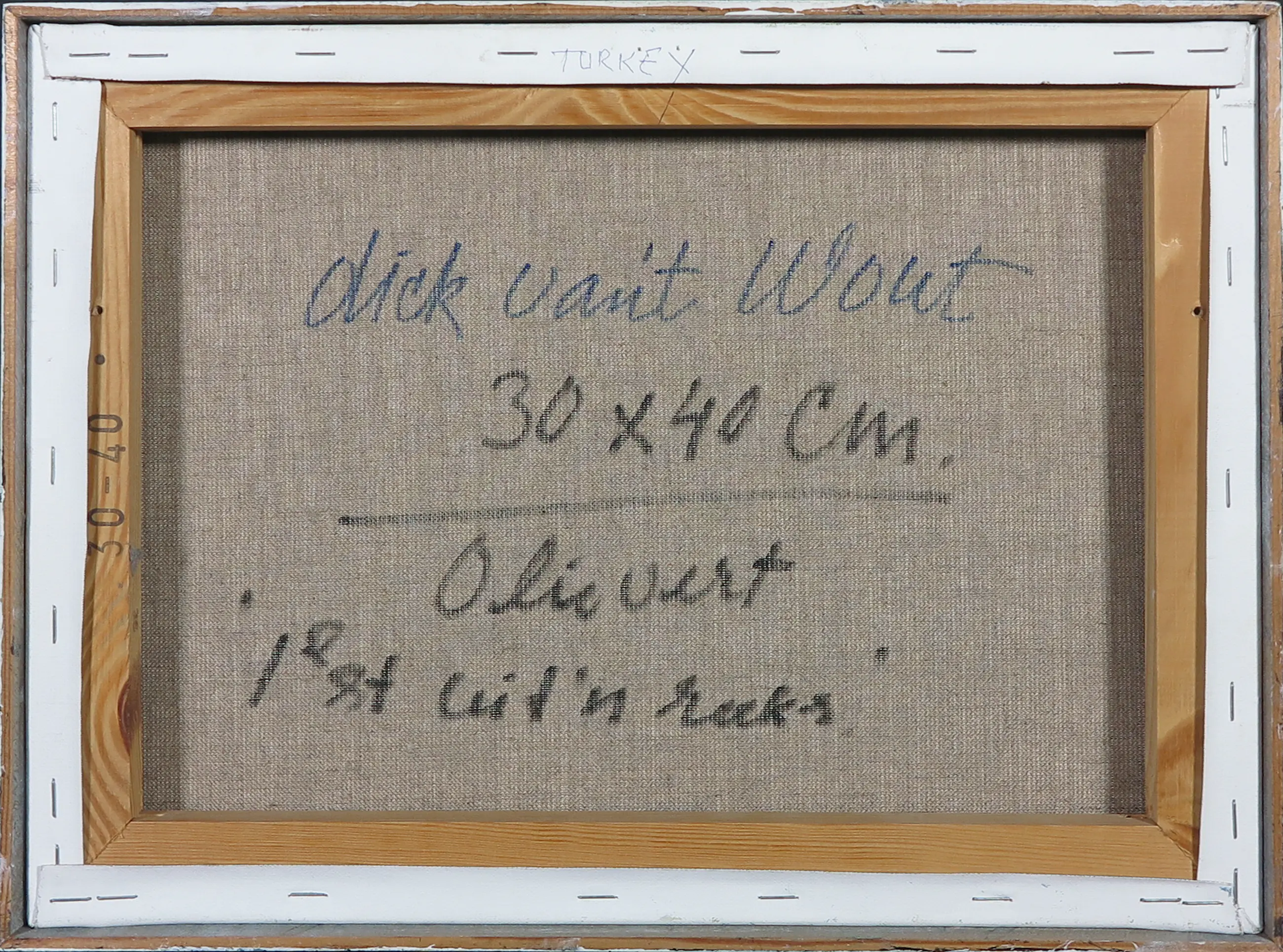 Landschap van kunstenaar Dick van 't Wout. Verso gesigneerd door de kunstenaar.