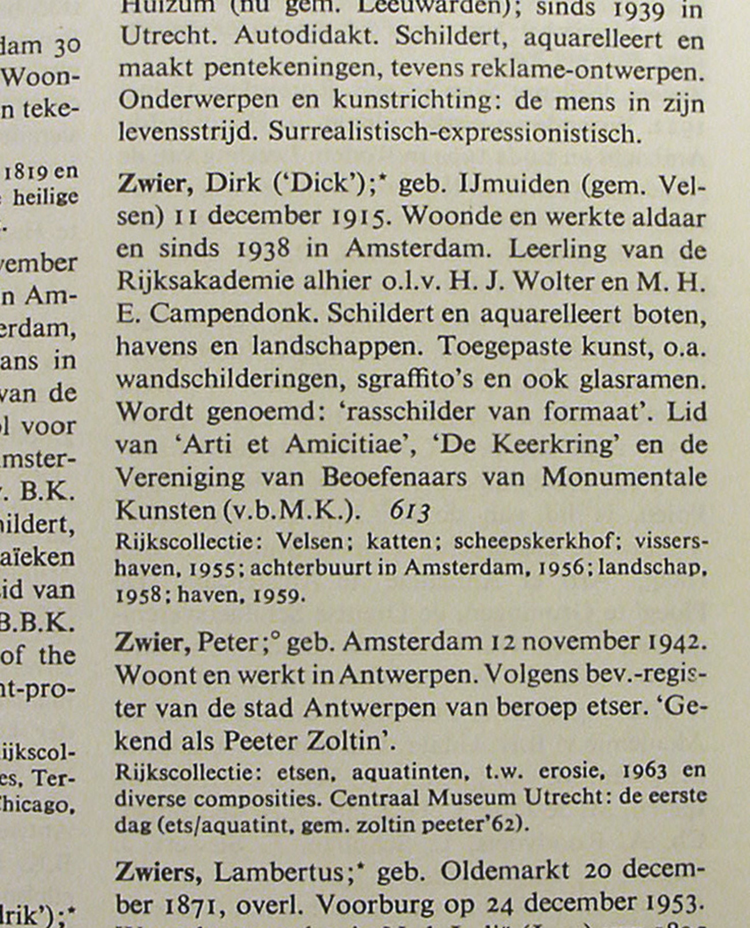 Werk van Dick Zwier bevindt zich naast particuliere collecties in het Stedelijk Museum Amsterdam.