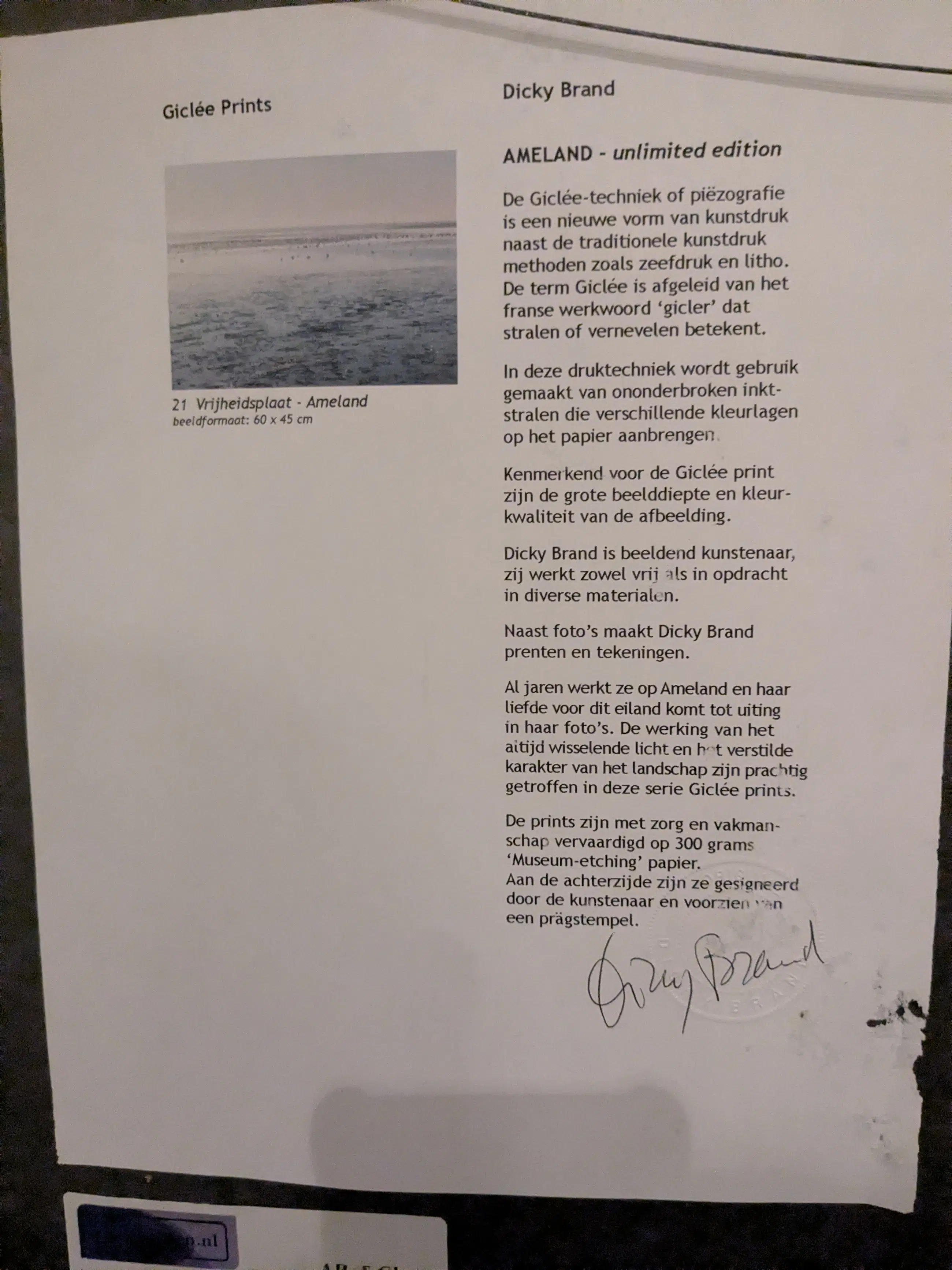 Het werk is af te halen op locatie. Als koper dient u zelf verpakkingsmateriaal mee te nemen. De locatie is: Ferwert, Nederland