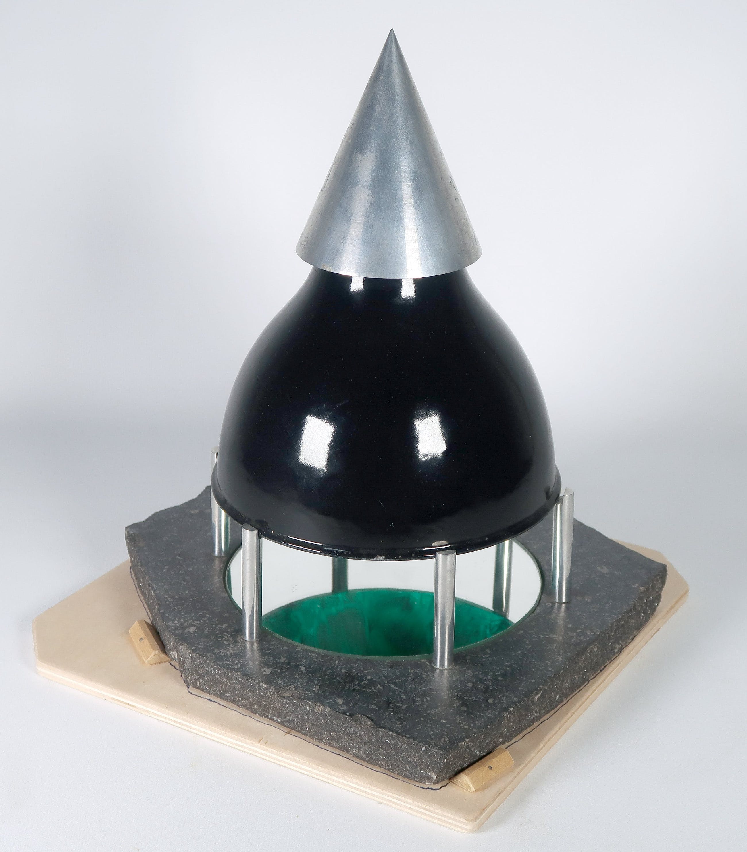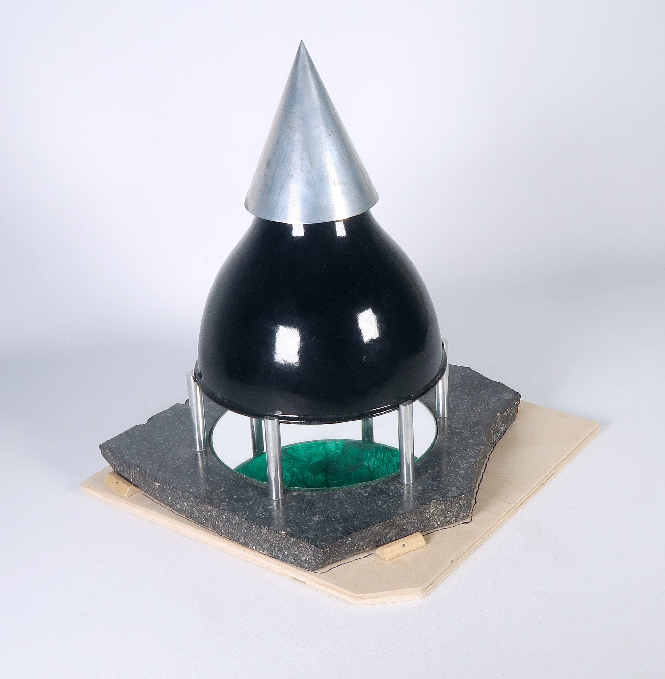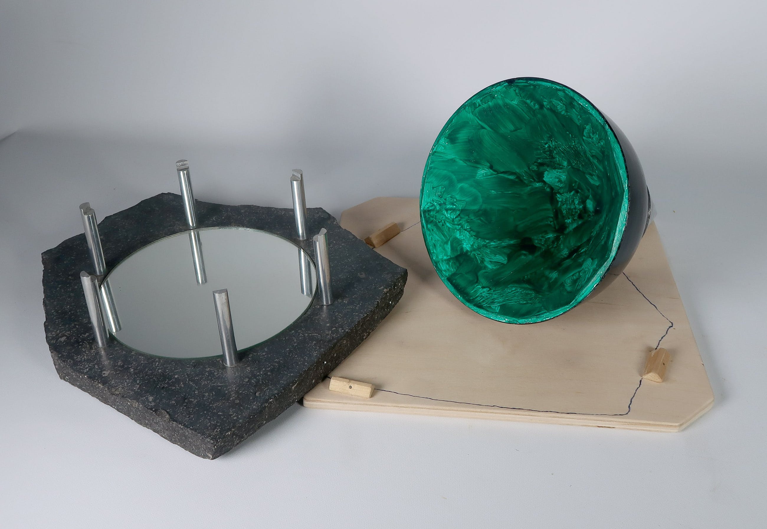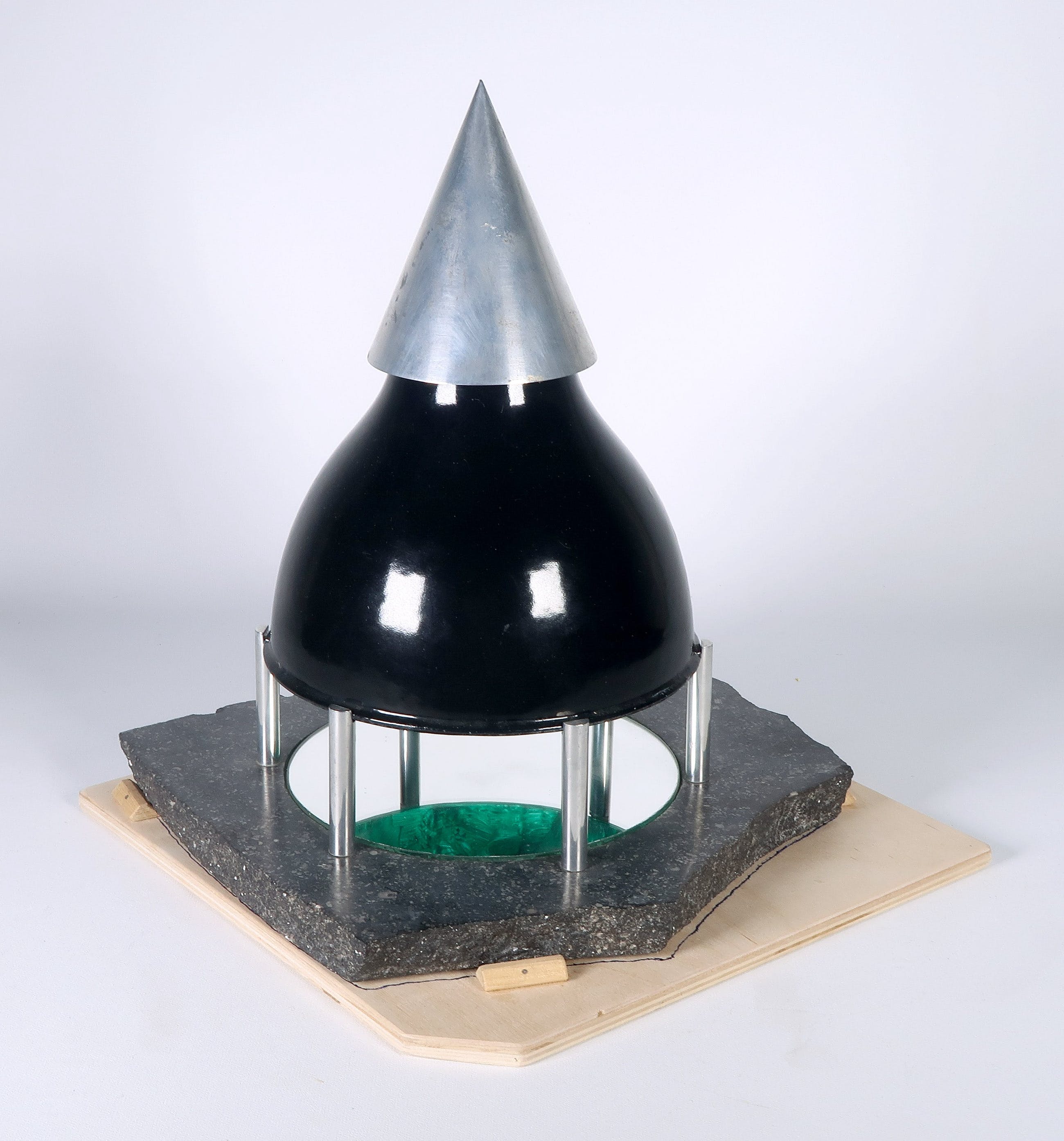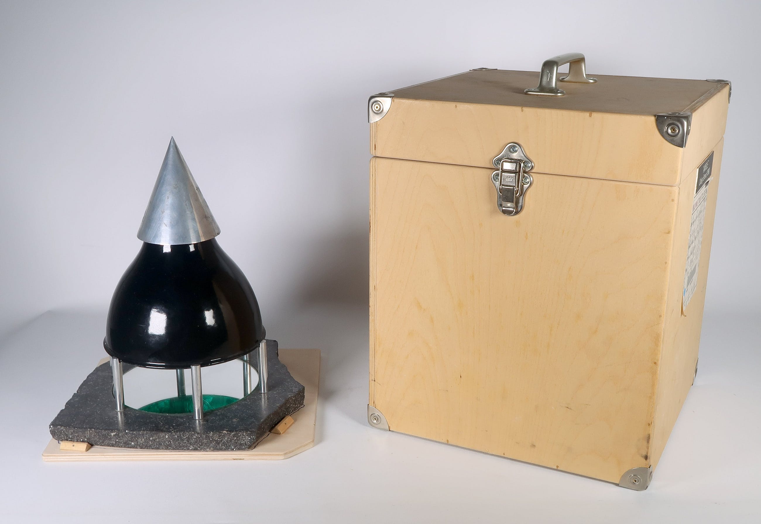 Het werk bestaat uit drie losse delen die in elkaar gezet worden en zit in een houten koffertje.