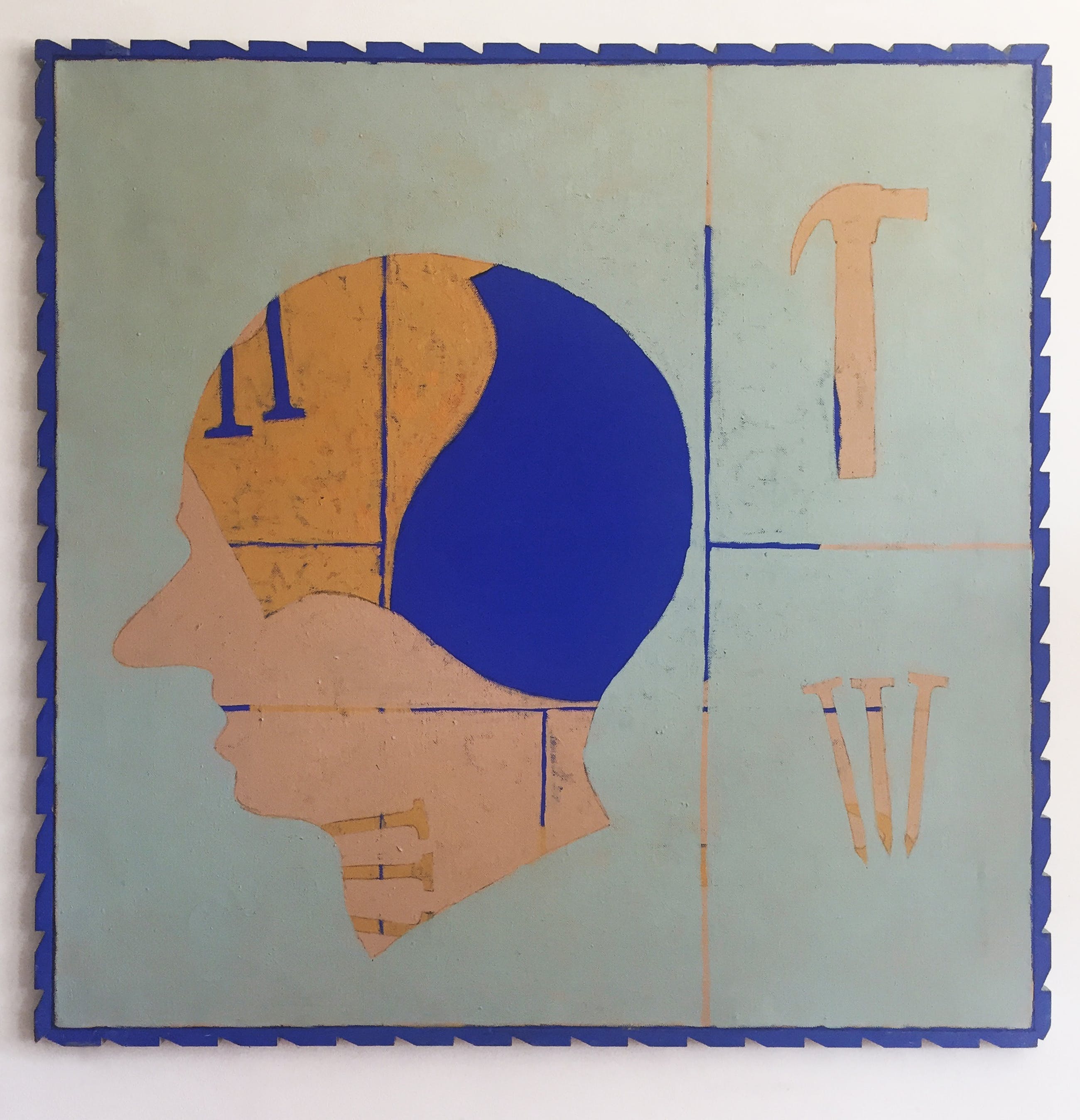 Groot schilderij van Diederick van Kleef (1954), schilder, tekenaar en boekenmaker met een dadaïstische inslag. Opleiding Academie voor Beeldende Kunsten te Arnhem en Jan van Eyck te Maastricht. In Amsterdam had hij in zijn woonhuis aan het Sarphatipark zijn atelier, galerie, uitgeverij in kunstenaarsboeken en boekwinkel Sporadisch Antiquarisch. Woont en werkt inmiddels in Frankrijk.