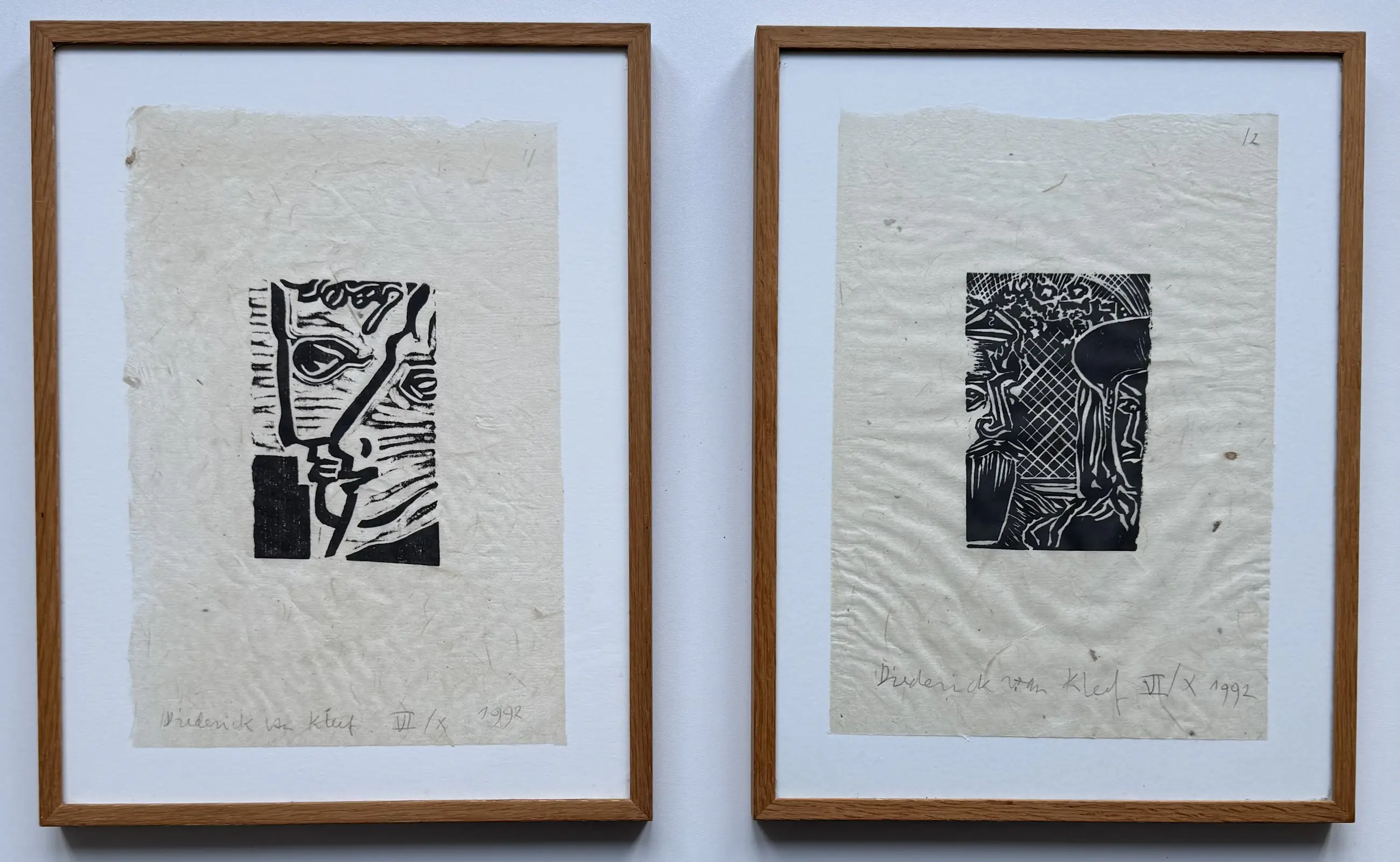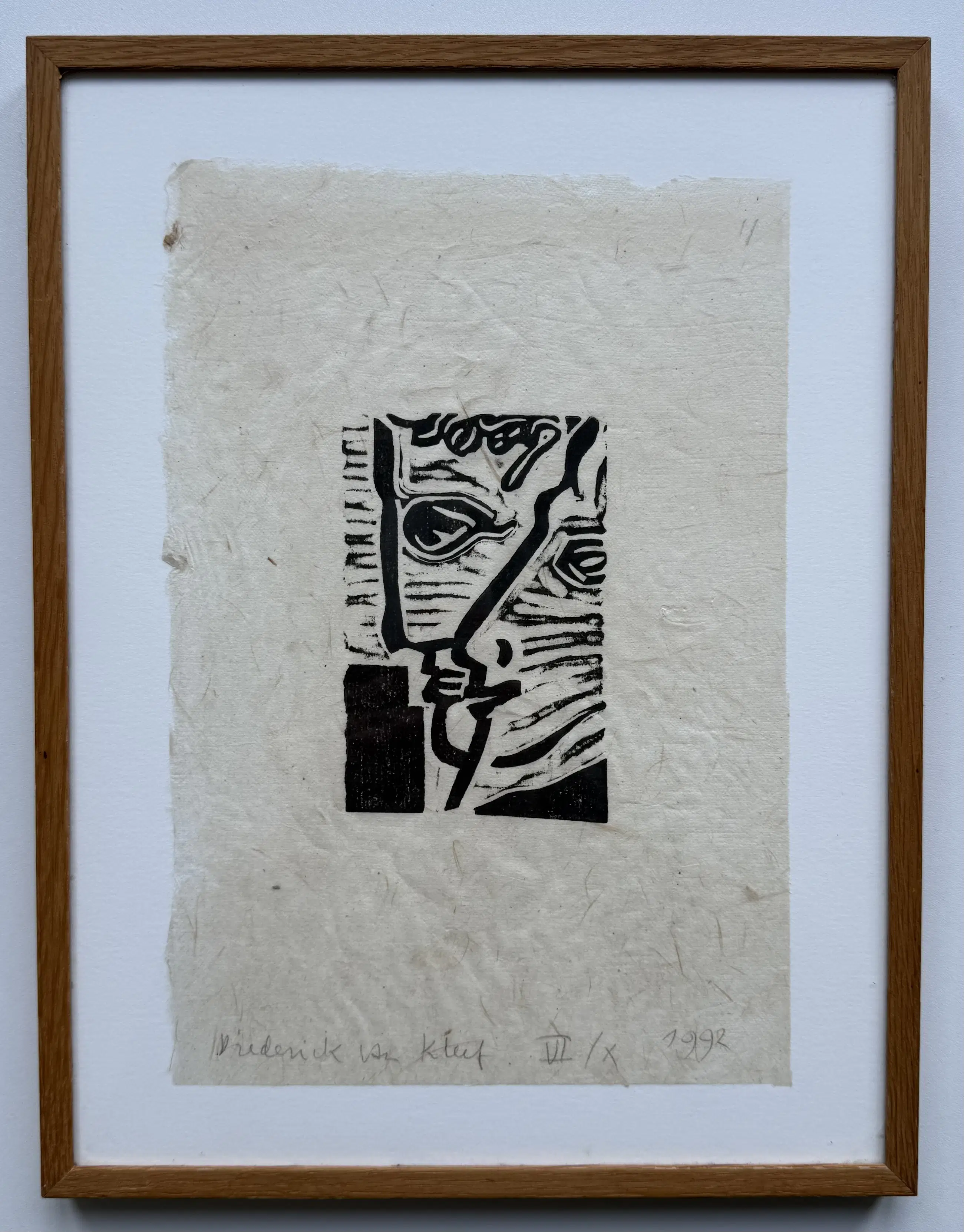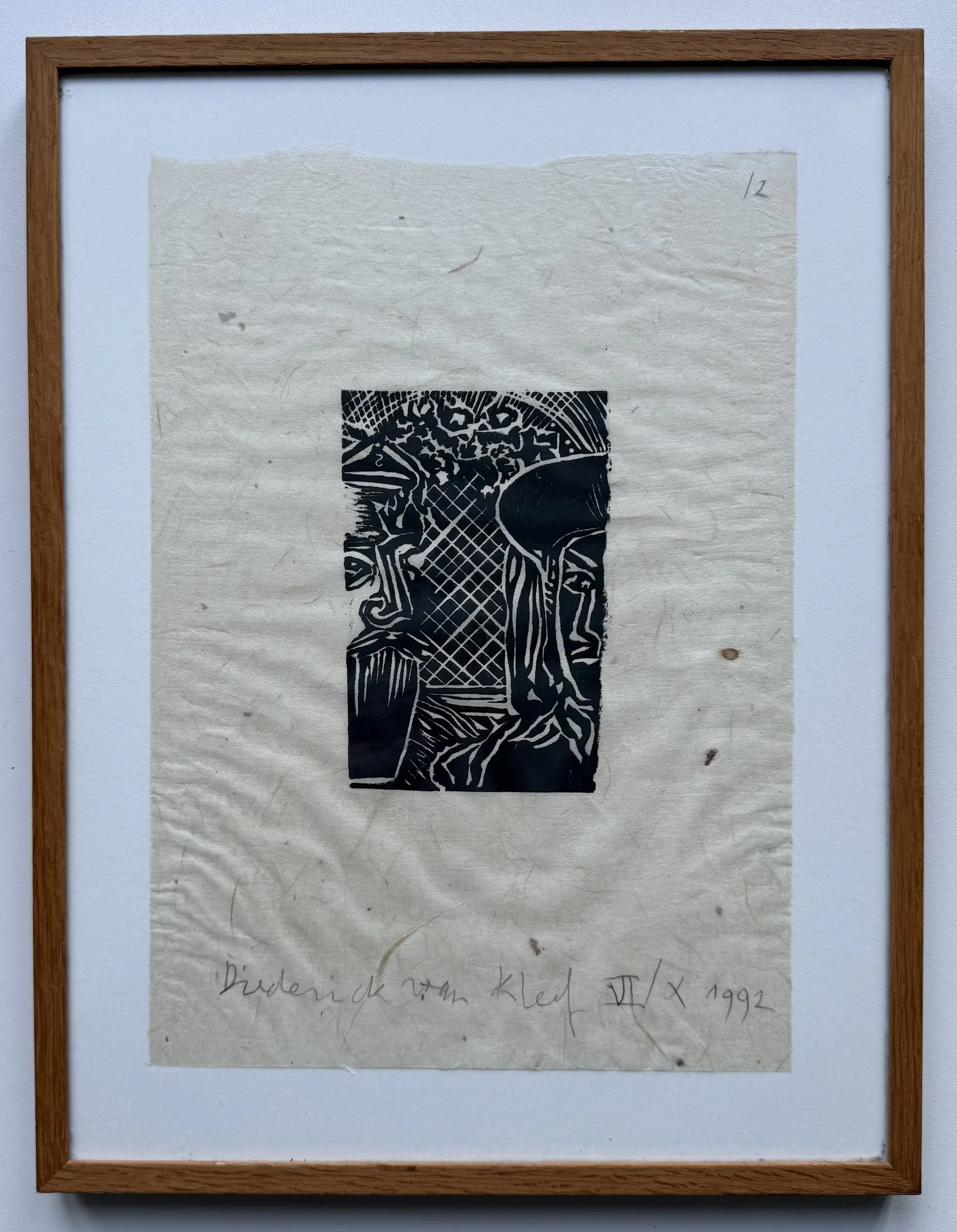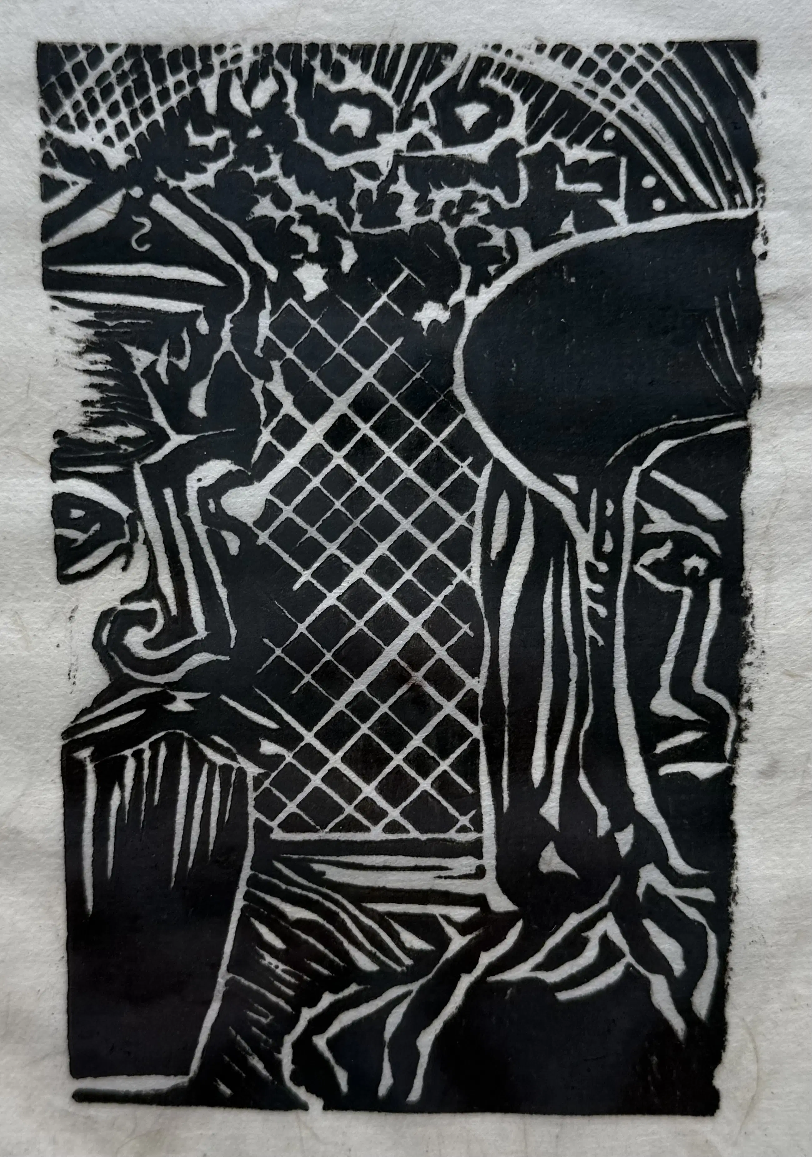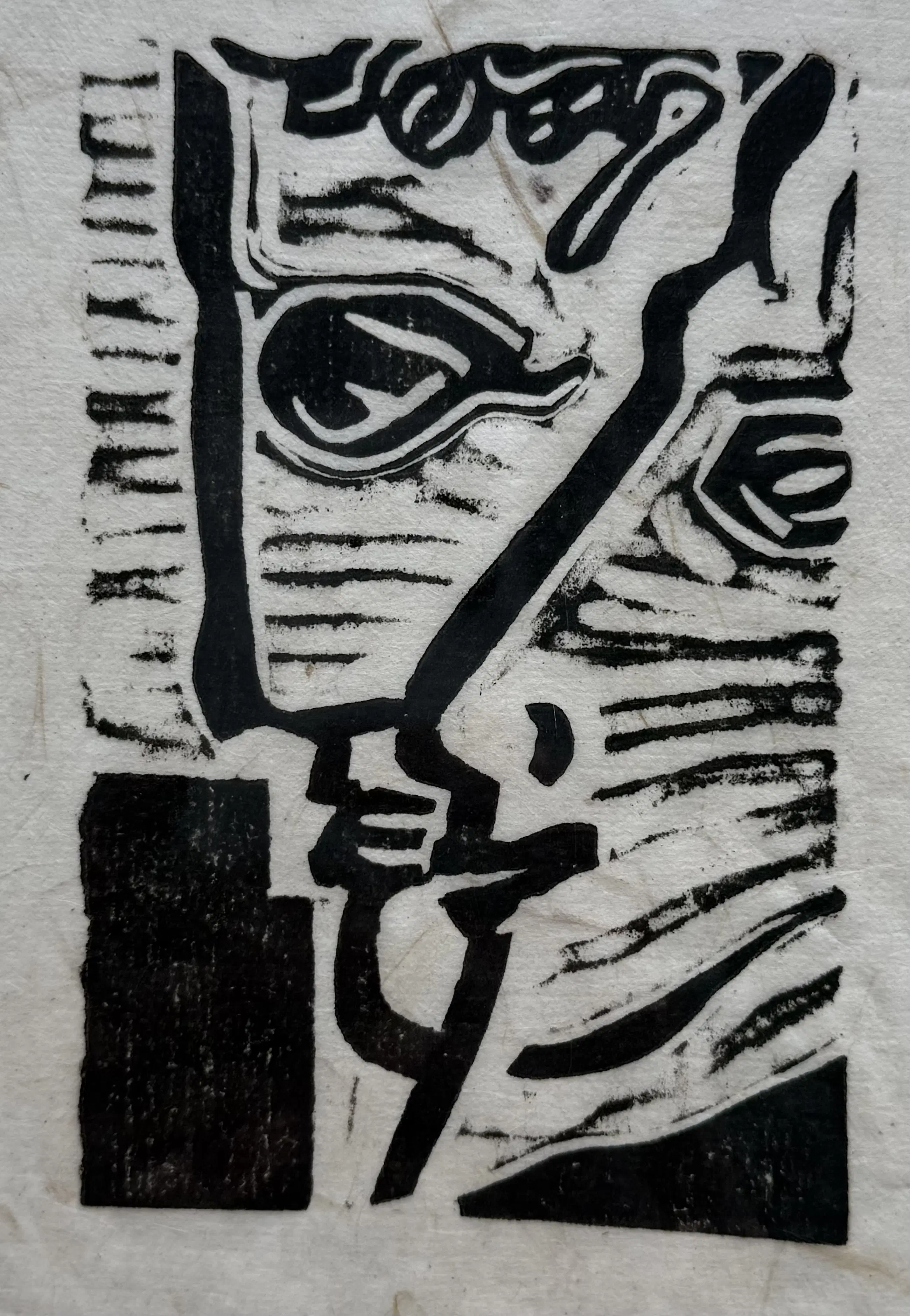 Uitgevoerd als linosnede op soort rijstpapier.