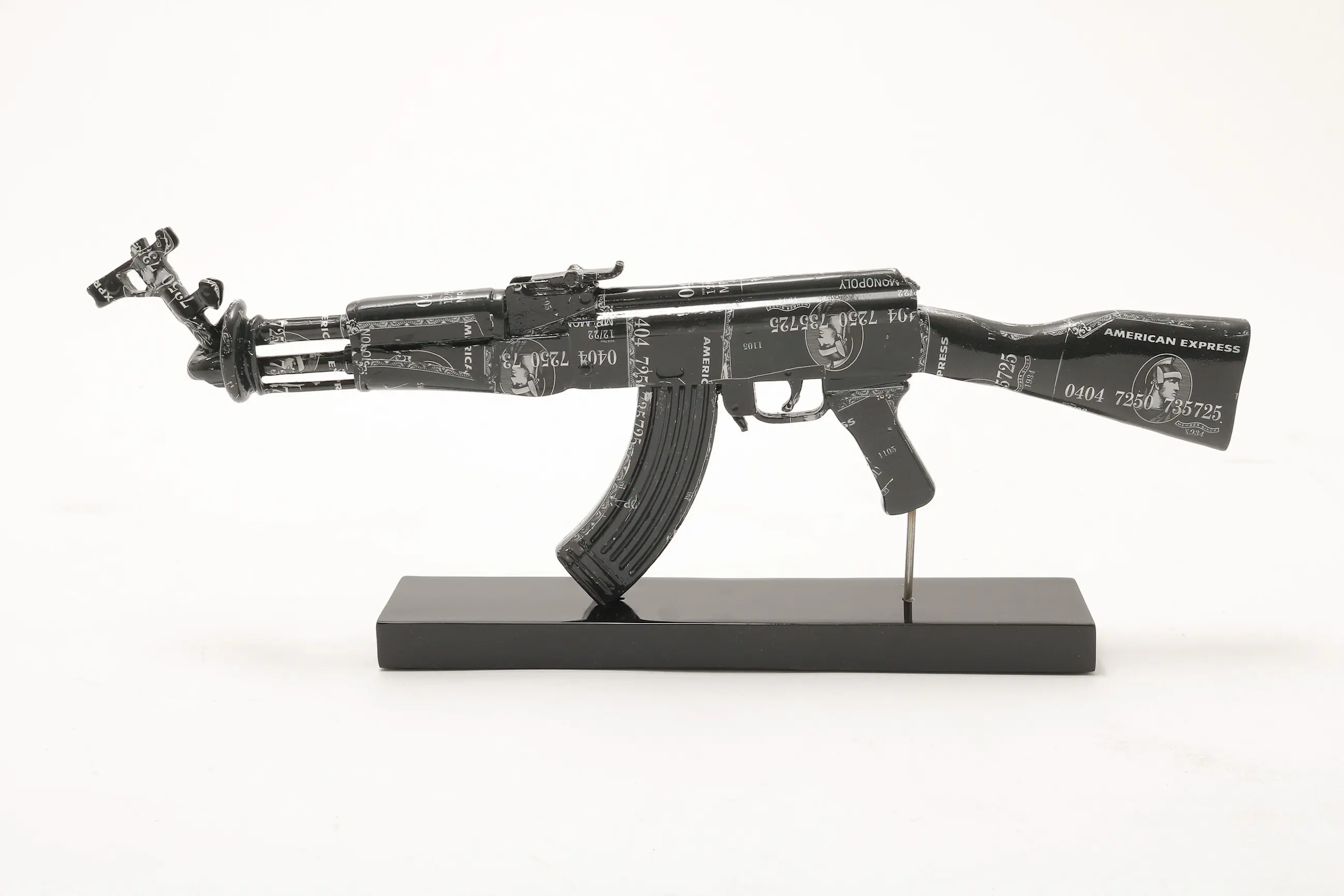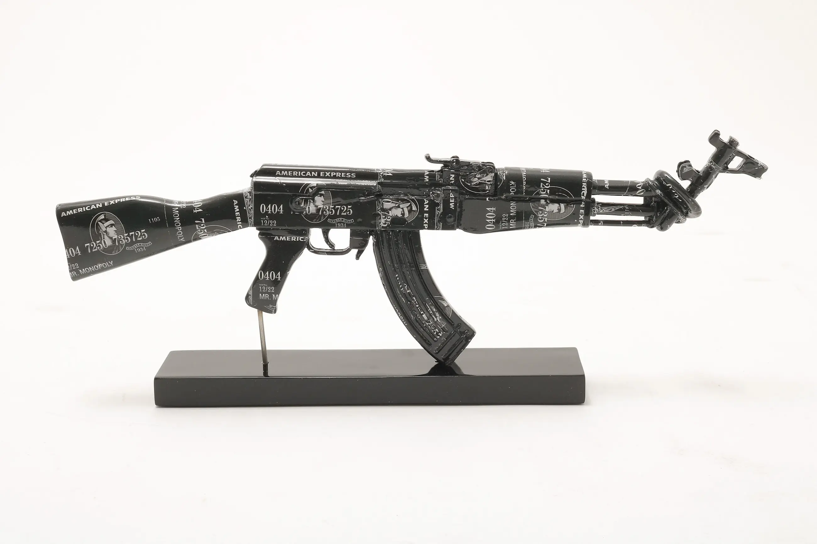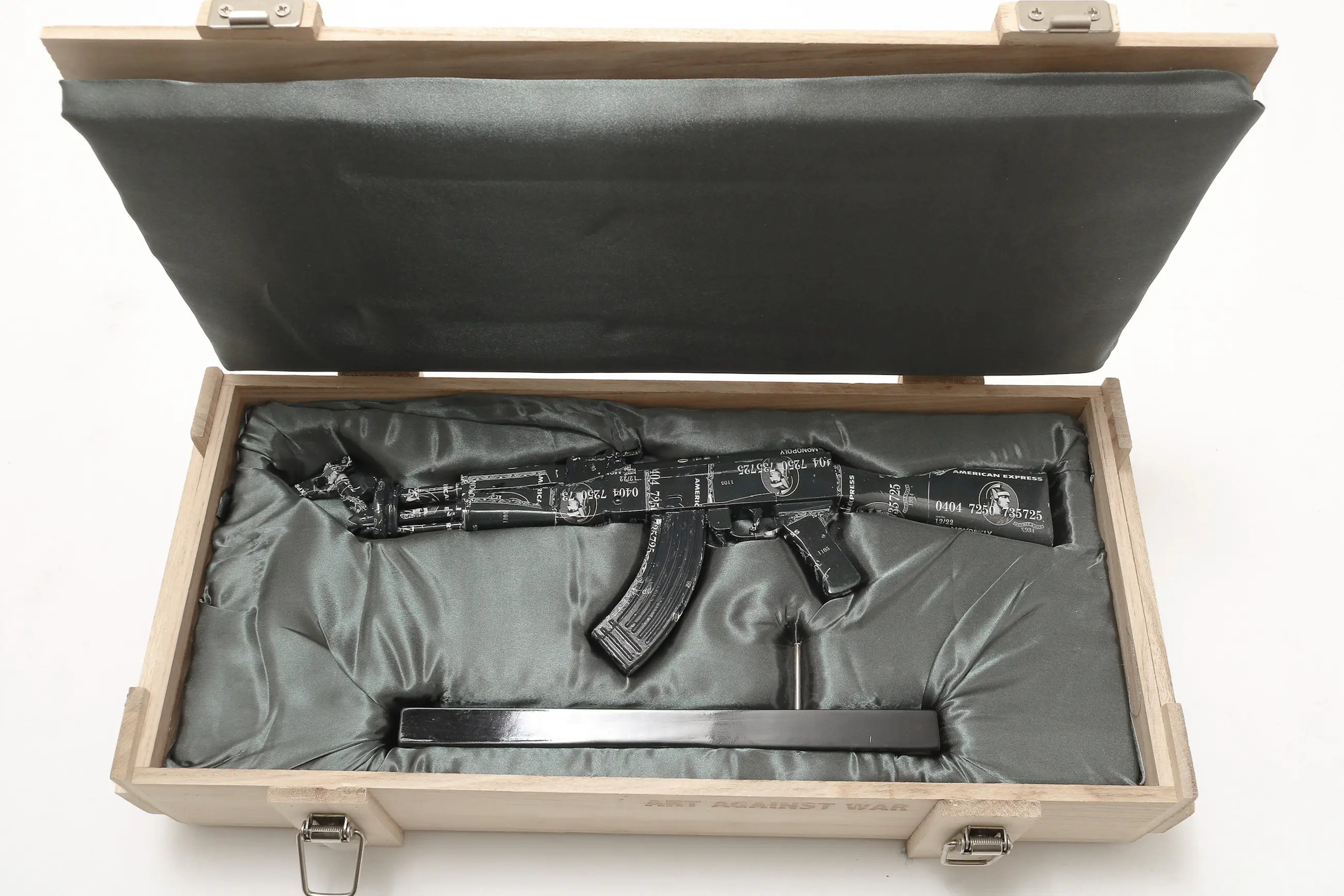 AK-47 Peace Edition met AMEX-motief. Art against war. Kunsthars 51/125, 15 x 41 cm. In originele kist.