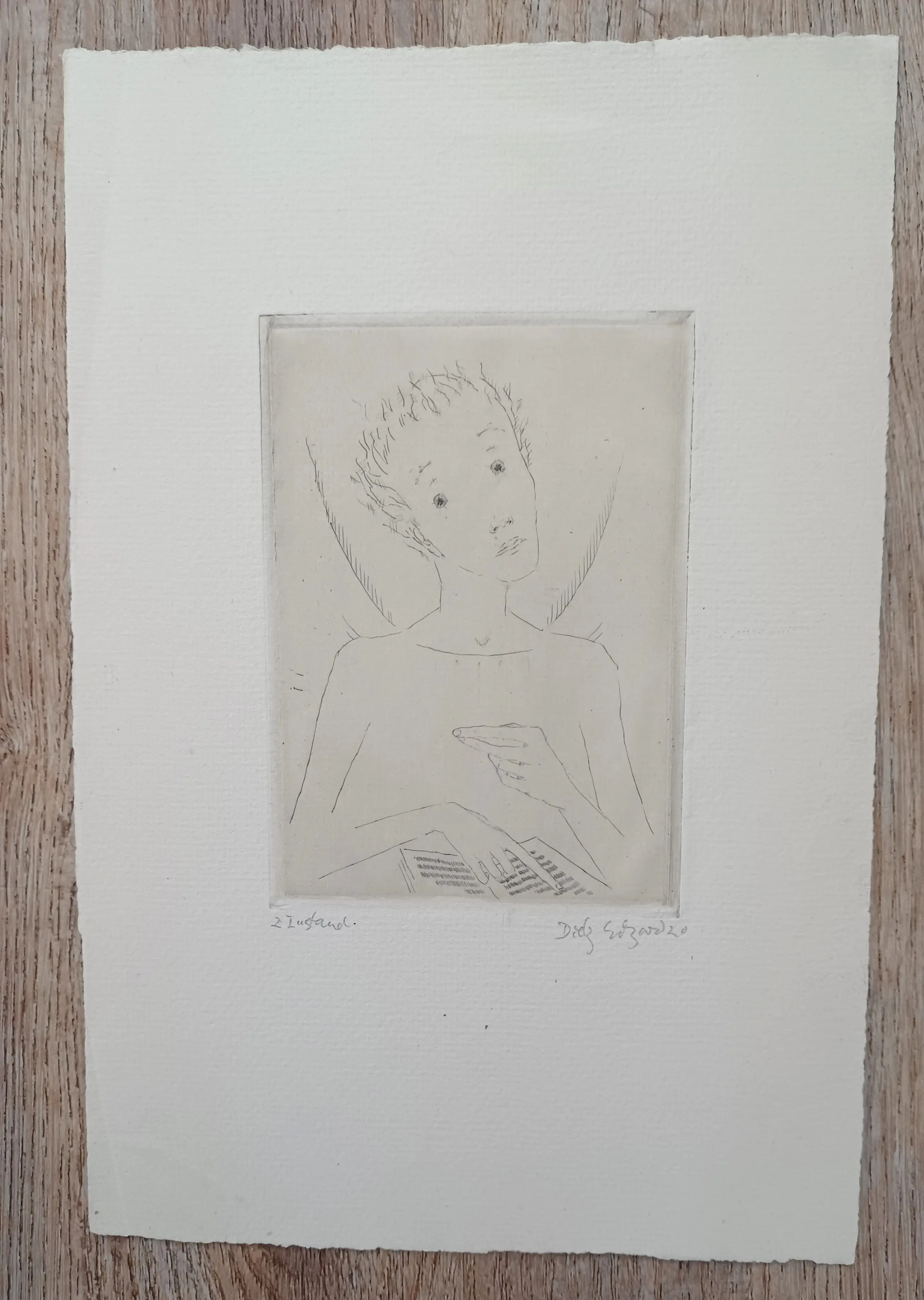 Radierung von Dietz Edzard aus dem Jahr 1920. Das Werk ist unten rechts mit Bleistift signiert. Nummer: Ich Schwesterzahn.