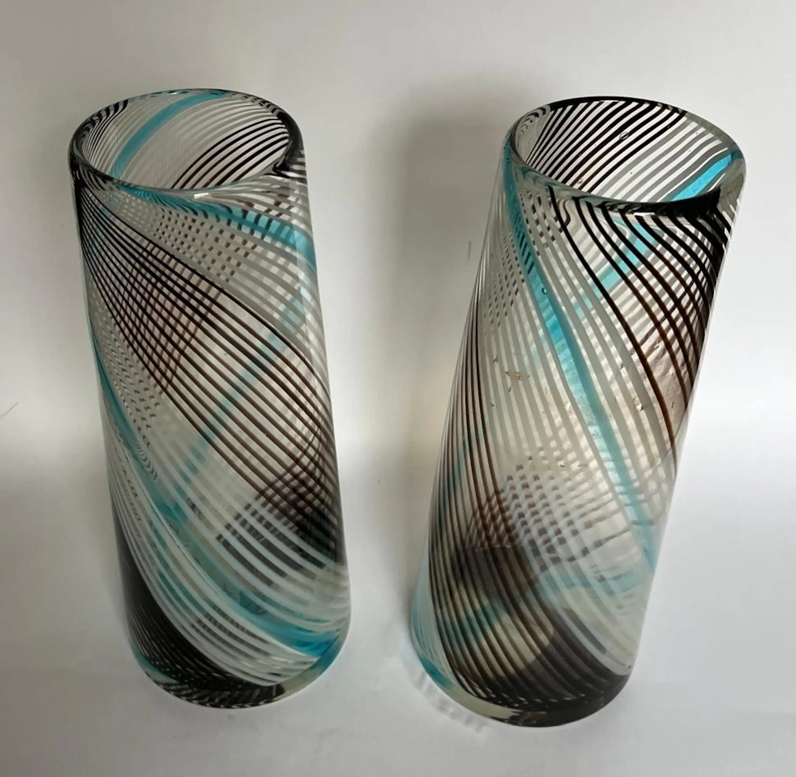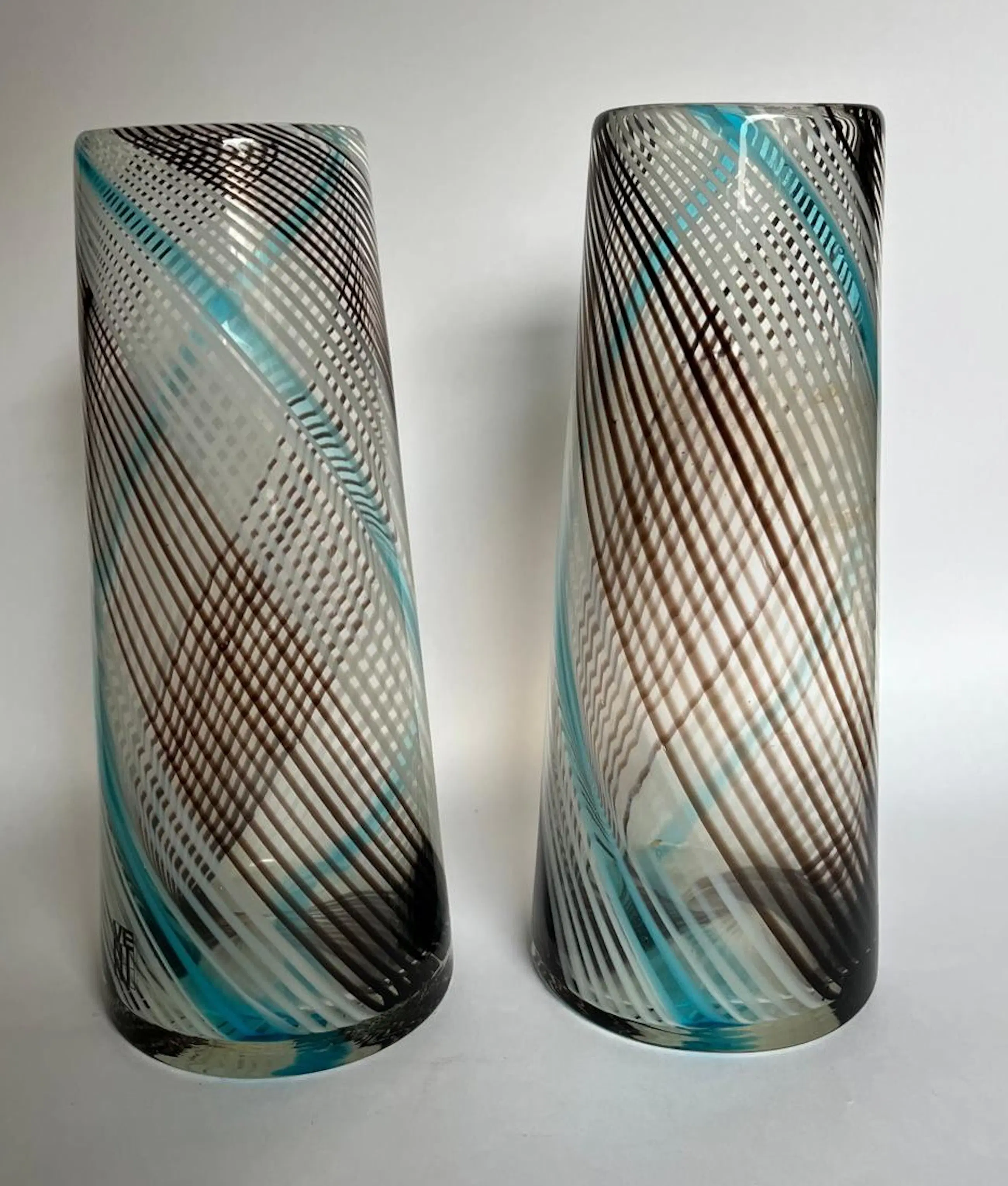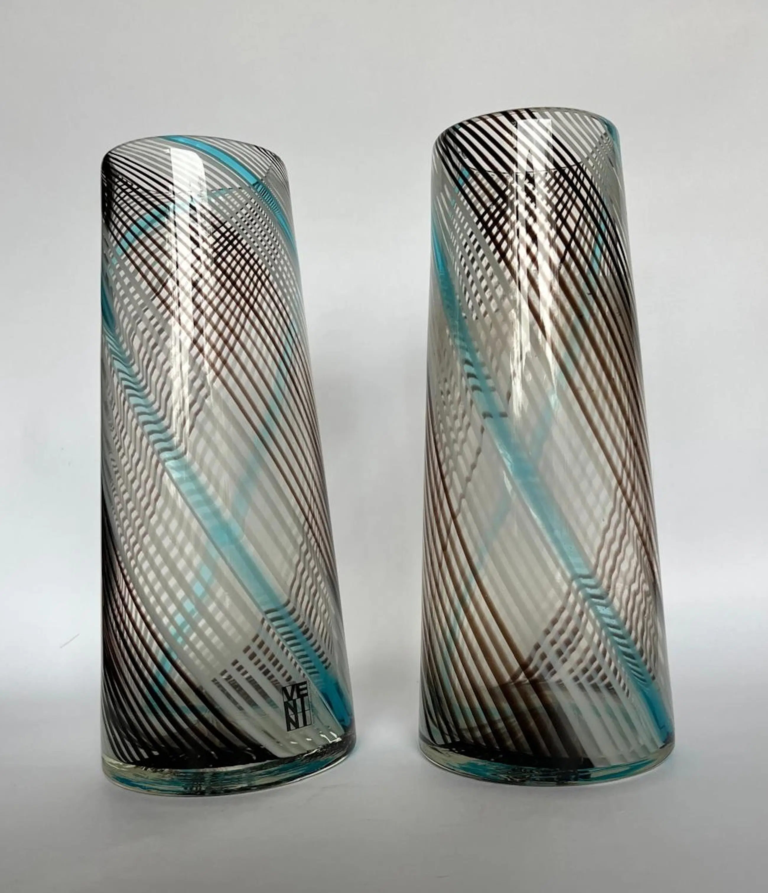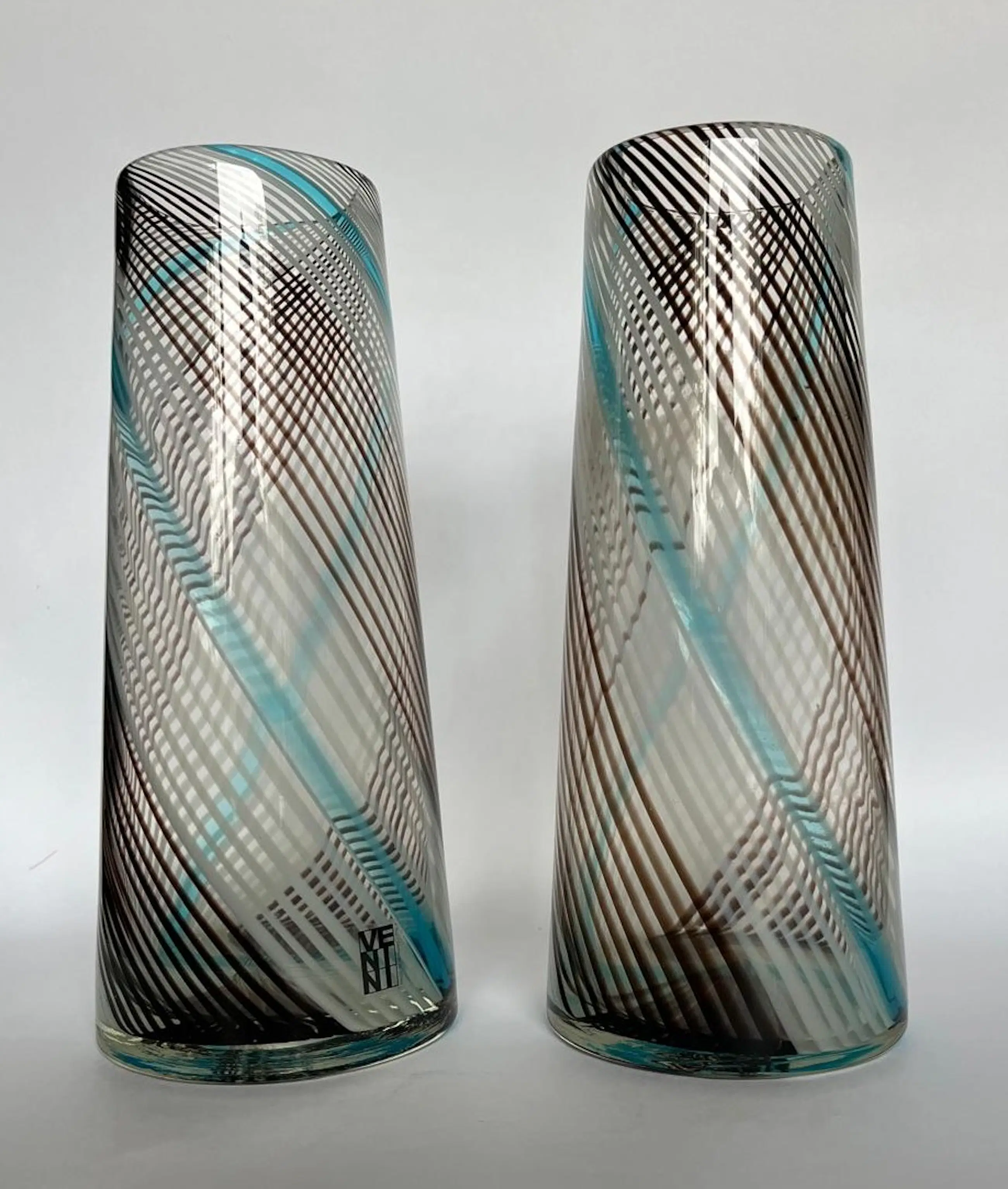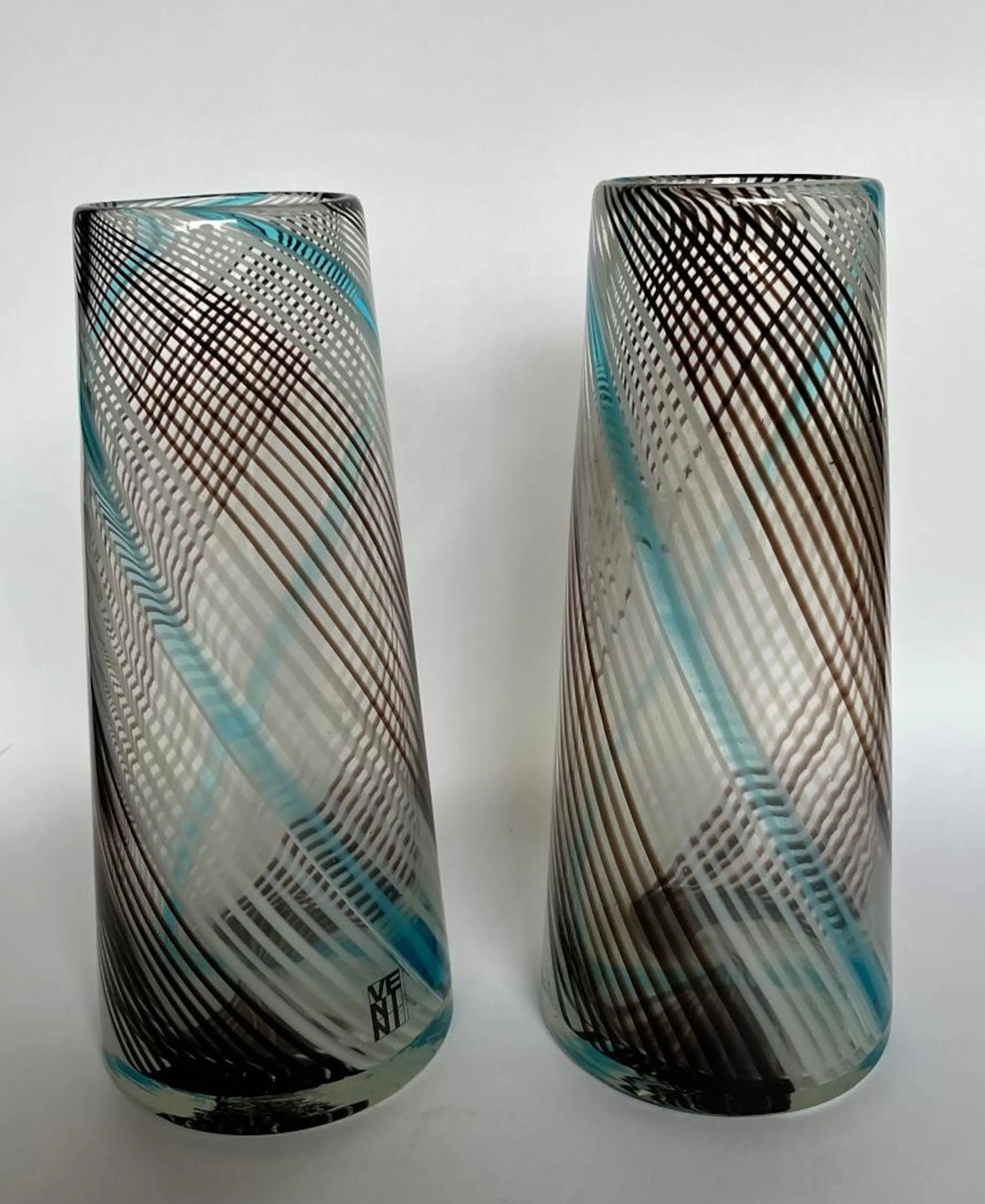 1 vaas is ongemarkeerd de 2e heeft een stikker van Venini, gepolijst pontil aan de onderkant.