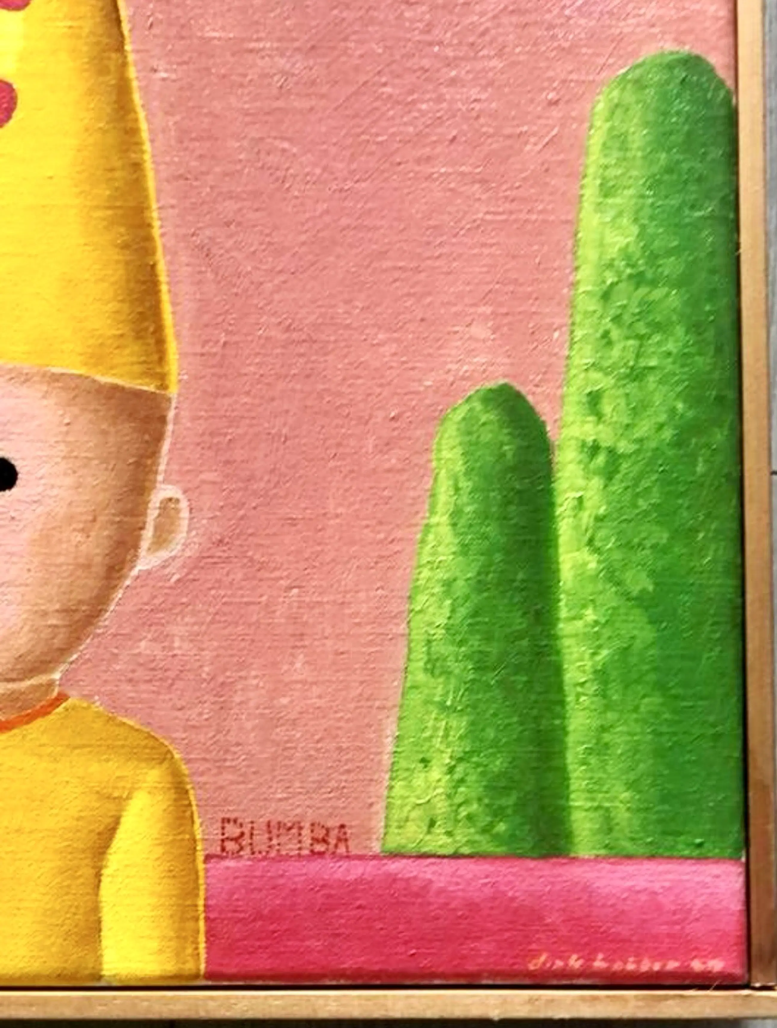Dirk Bakker schildert fascinerende figuren die het midden houden tussen mensen en poppen. Vaak bekende (strip)figuren die midden in het vlak zijn geplaatst, soms eenzaam zwevend. Door de heldere en duidelijke kleuren lijken de werken van Bakker op het eerste gezicht op voorstellingen voor kinderen. Bij nadere beschouwing hebben ze een dubbele betekenis en wordt de beschouwer in verwarring gebracht.