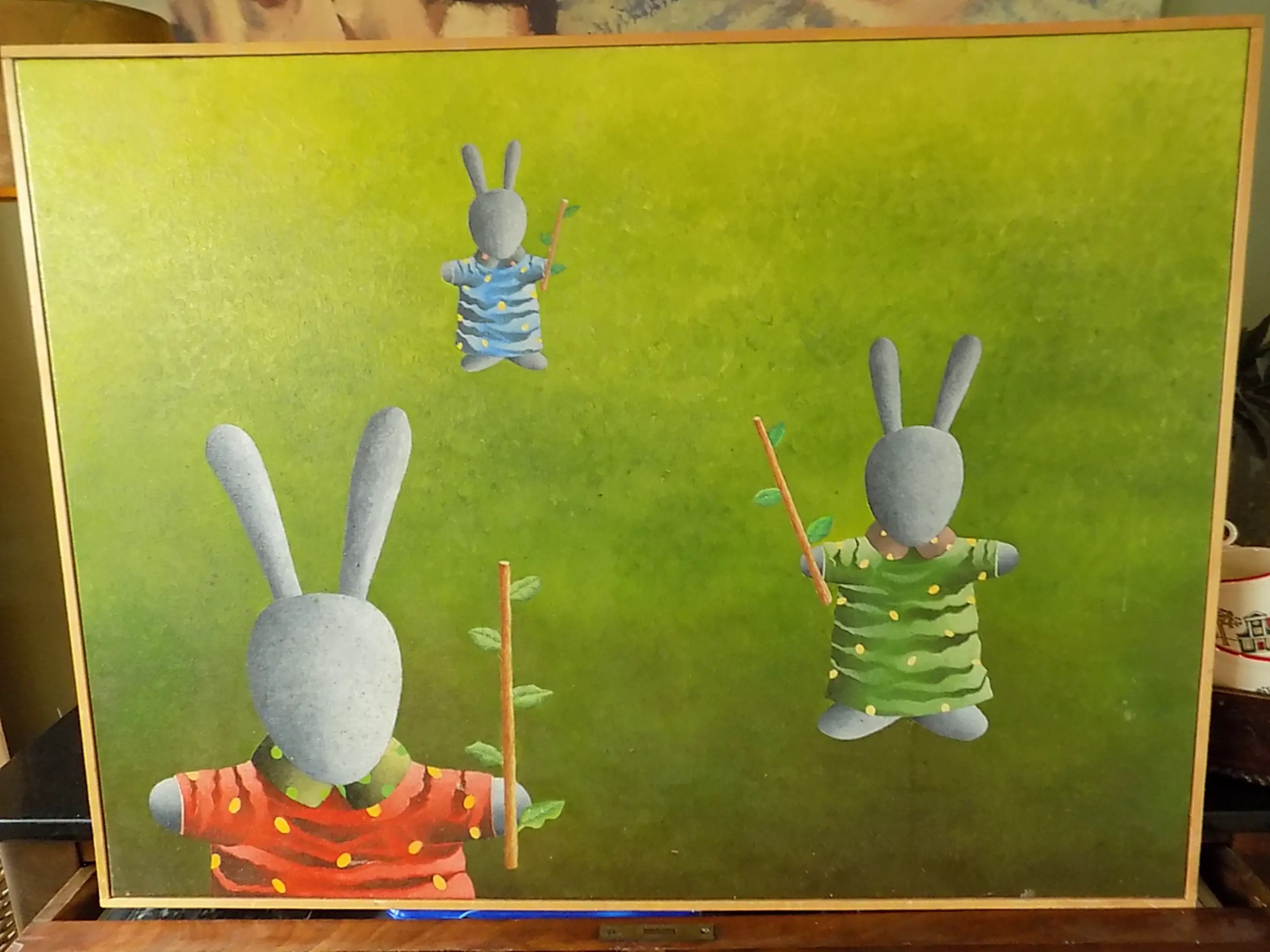 Bakker schildert fascinerende figuren die het midden houden tussen mensen en poppen, vaak bekende stripfiguren die midden in het vlak zijn geplaatst (soms eenzaam zwevend). Door de heldere en duidelijke kleuren lijken de werken van Bakker op het eerste gezicht op voorstellingen voor kinderen. Bij nadere beschouwing hebben ze een dubbele betekenis en wordt de beschouwer in verwarring gebracht.
