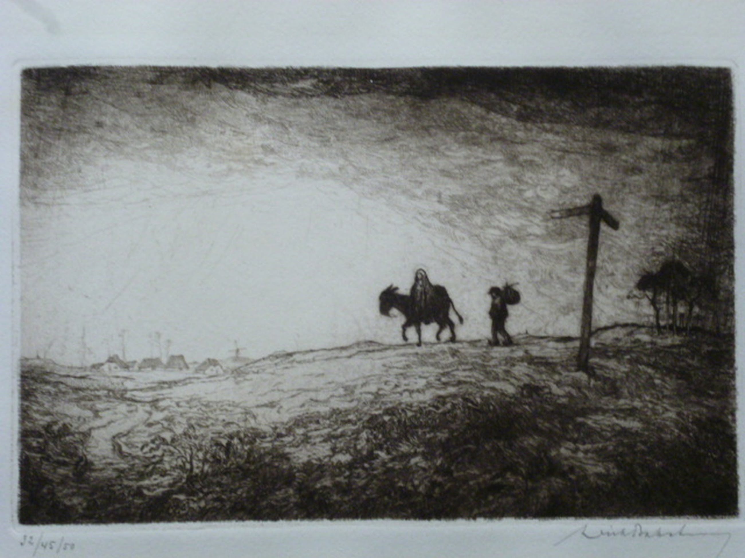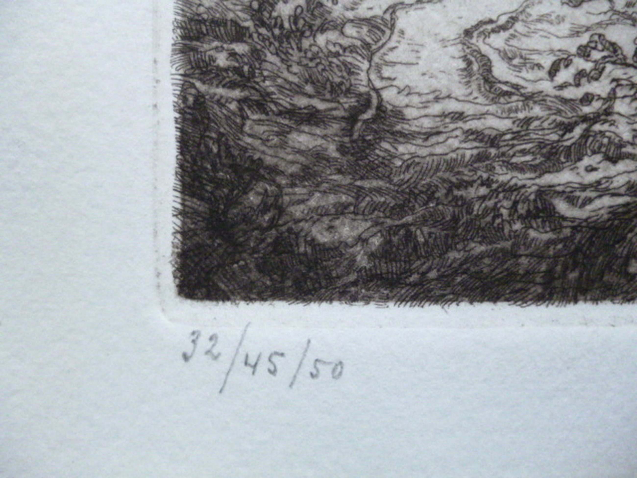 Ets uit 1928-1929, potlood gesigneerd rechtsonder. Genummerd 32/45/50 linksonder. Blindstempel linksboven.