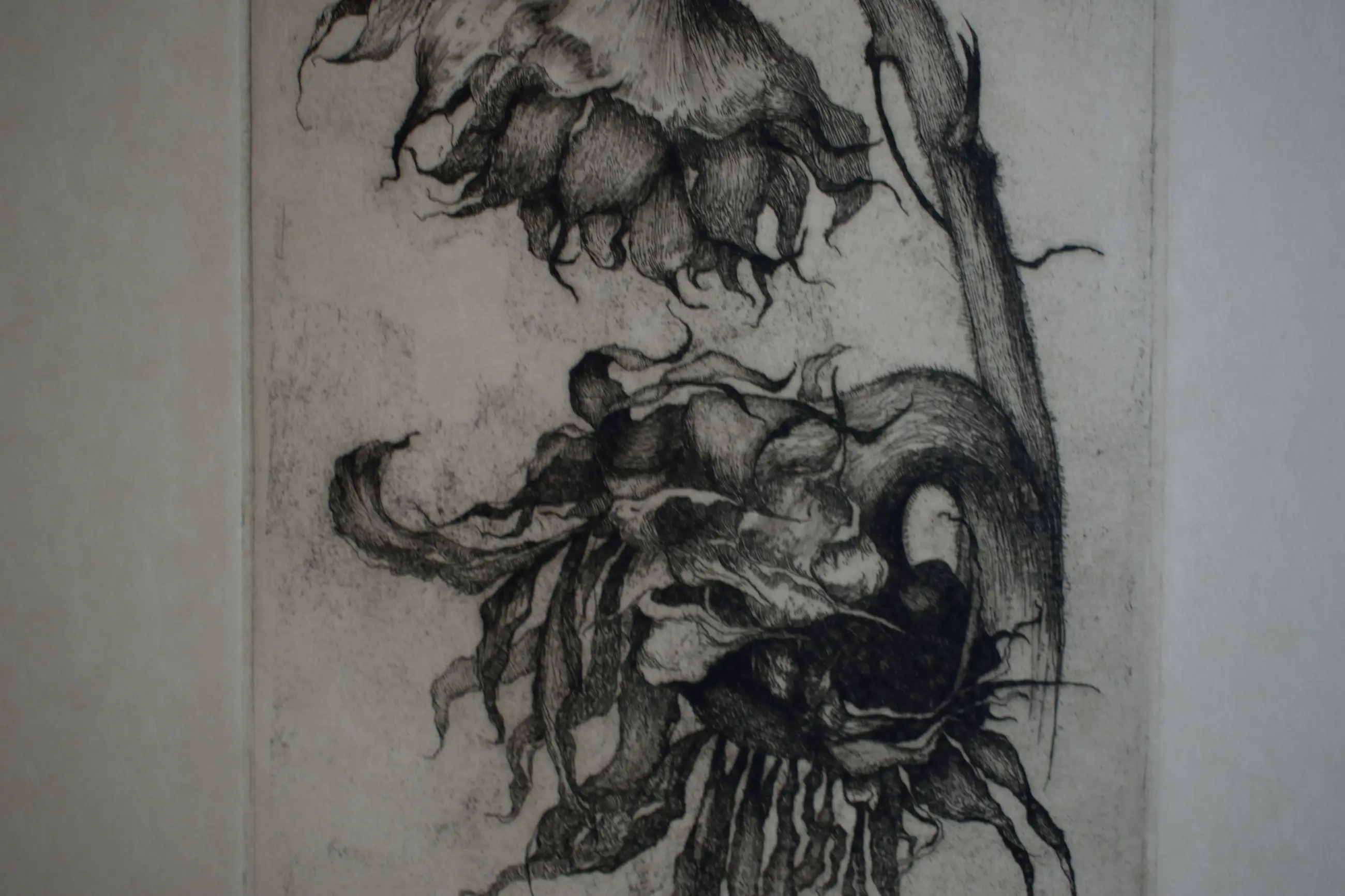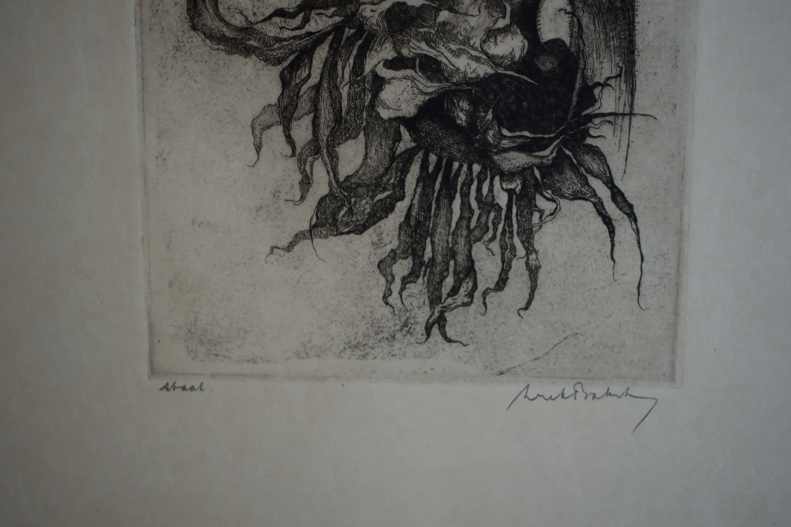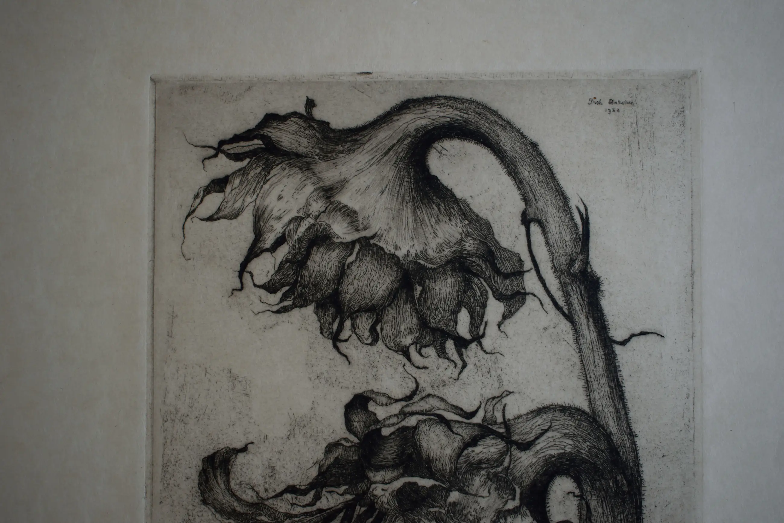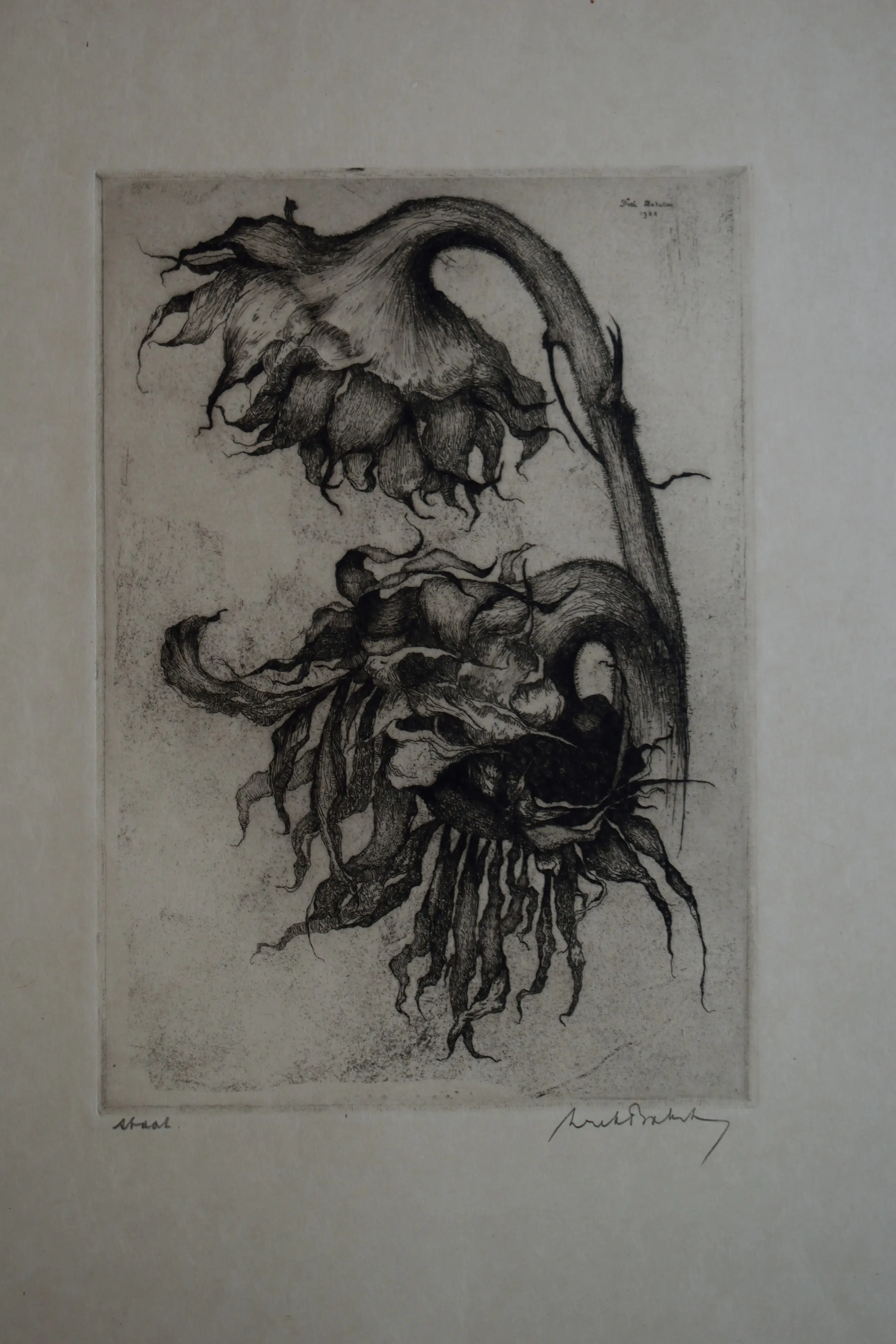 Uit de collectie van de Belgische Verzamelaar August e Taevernier verkopen we deze ets van een zonnebloem uit 1933. Genaamd Zonnebloem.