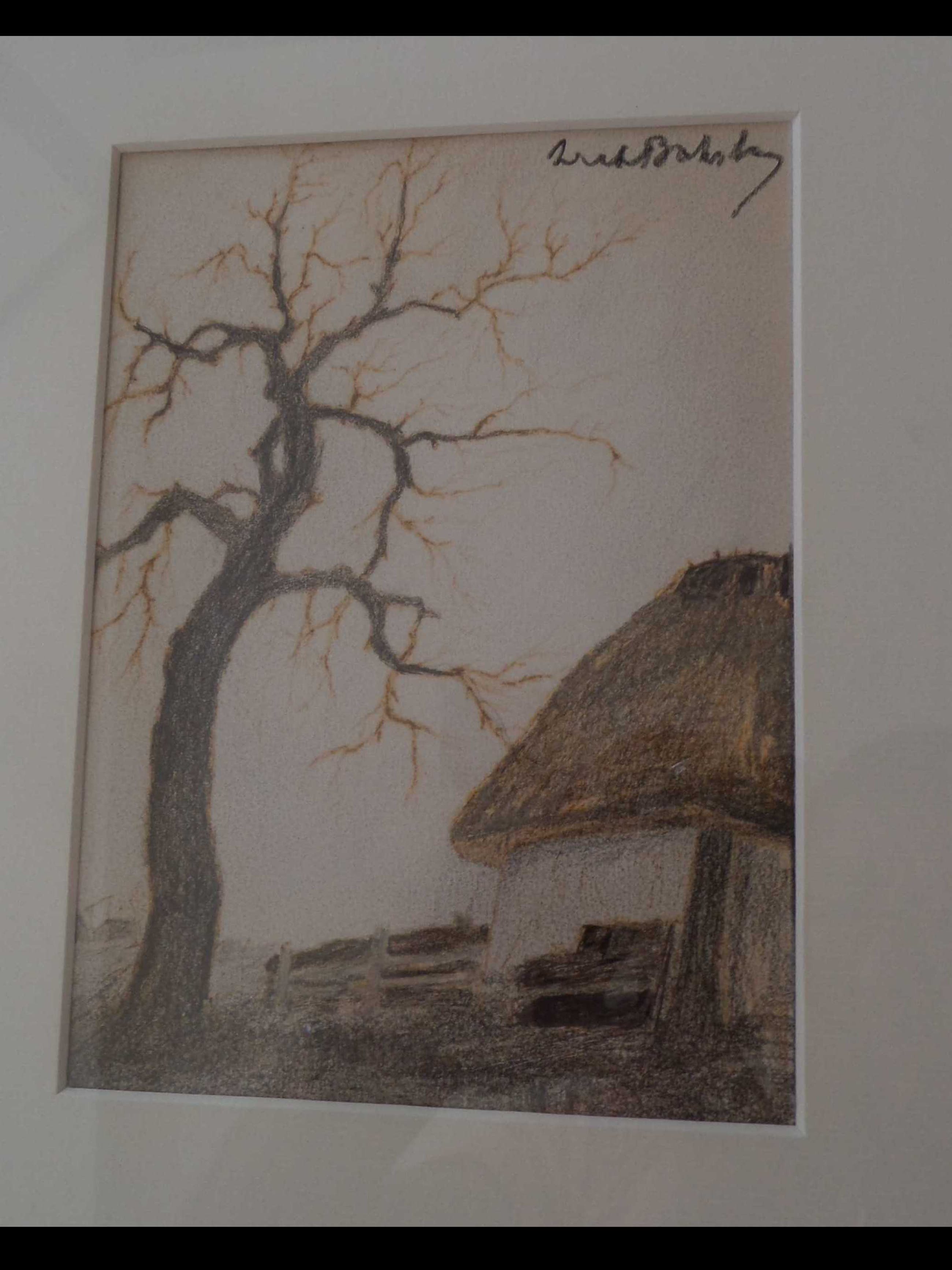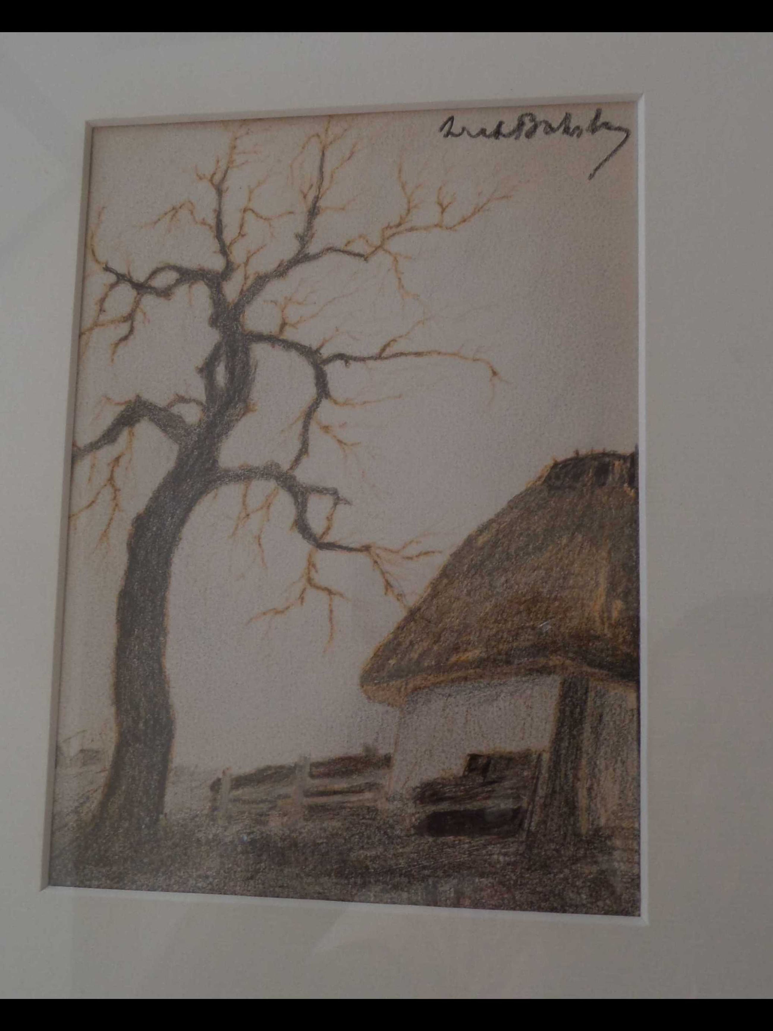 DIRK BAKSTEEN GEBOREN IN 1886 IN ROTTERDAM GESTORVEN IN 1971 IN ANTWERPEN ORIGINELE POTLOOD TEKENING DIRK BAKSTEEN MET BRUINE POTLOOD BIJGEKLEURD RECHTS BOVEN POTLOOD GESIGNEERD ZIT NOG IN DE ORIGINELE LIJST TEKENING EN LIJST IN GOEDE STAAT ACHTERKANT VERMELD DIRK BAKSTEEN "HOEVE" POTLOODTEKENING