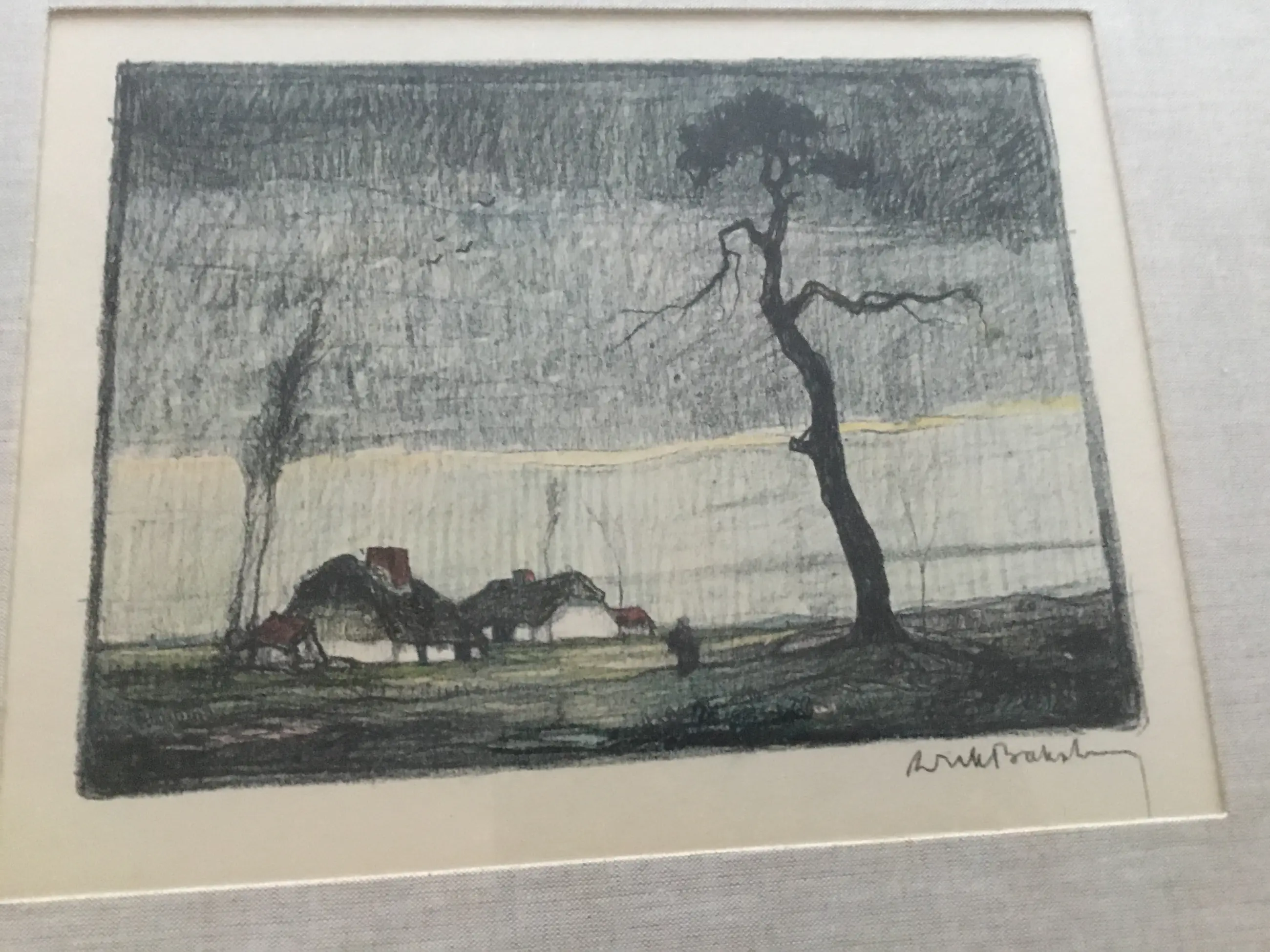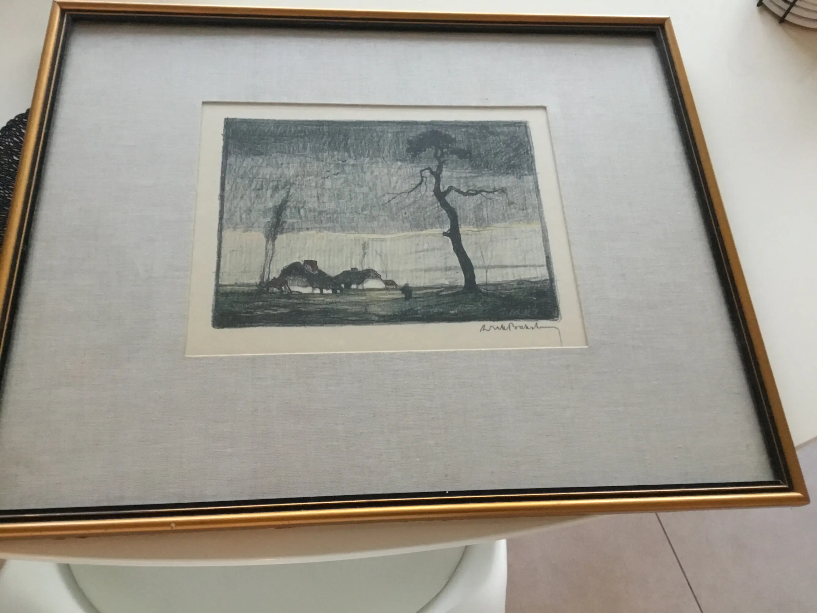 Origineel kunstwerk gemaakt met houtskool, stilleven in een mooi landschap. Gesigneerd door hemzelf