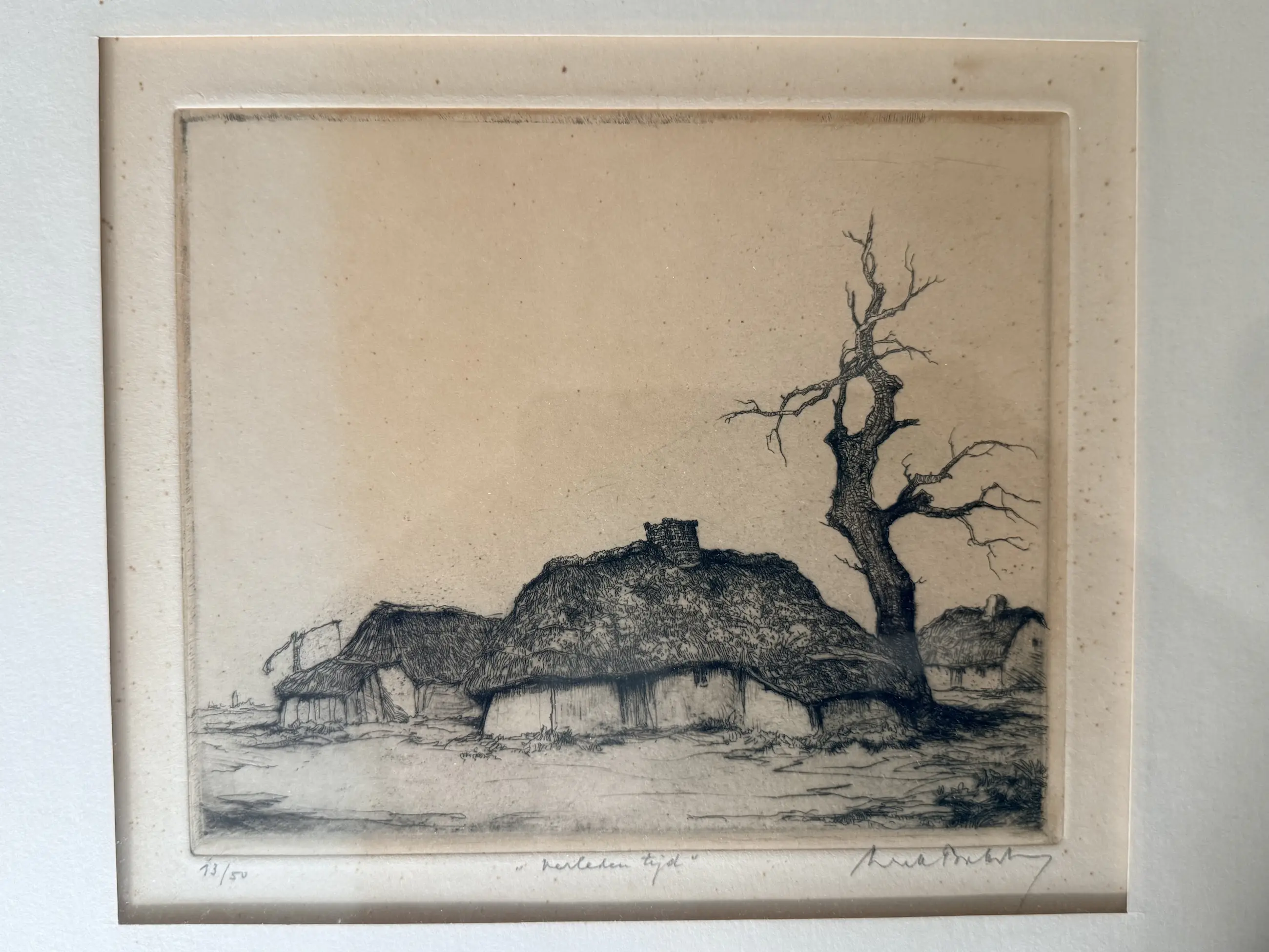 Rechts onder met potlood gesigneerd: Dirk Baksteen