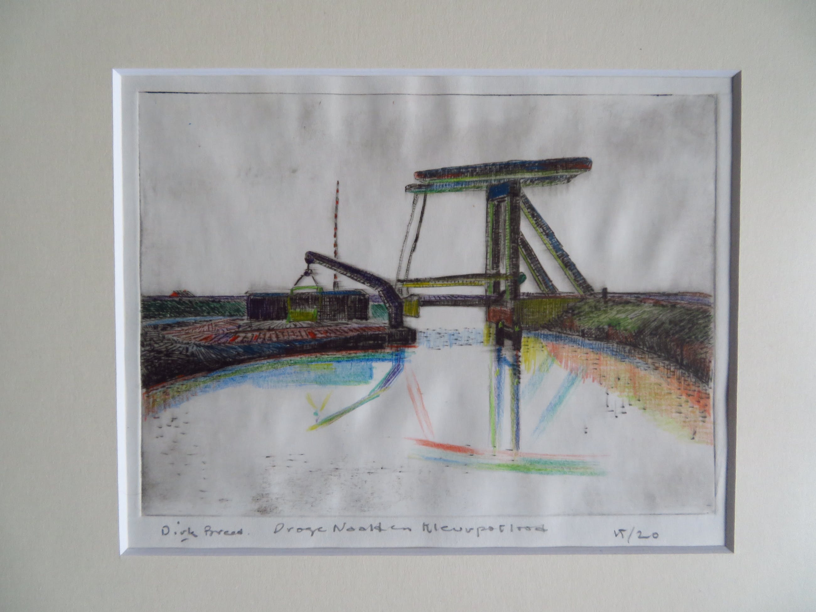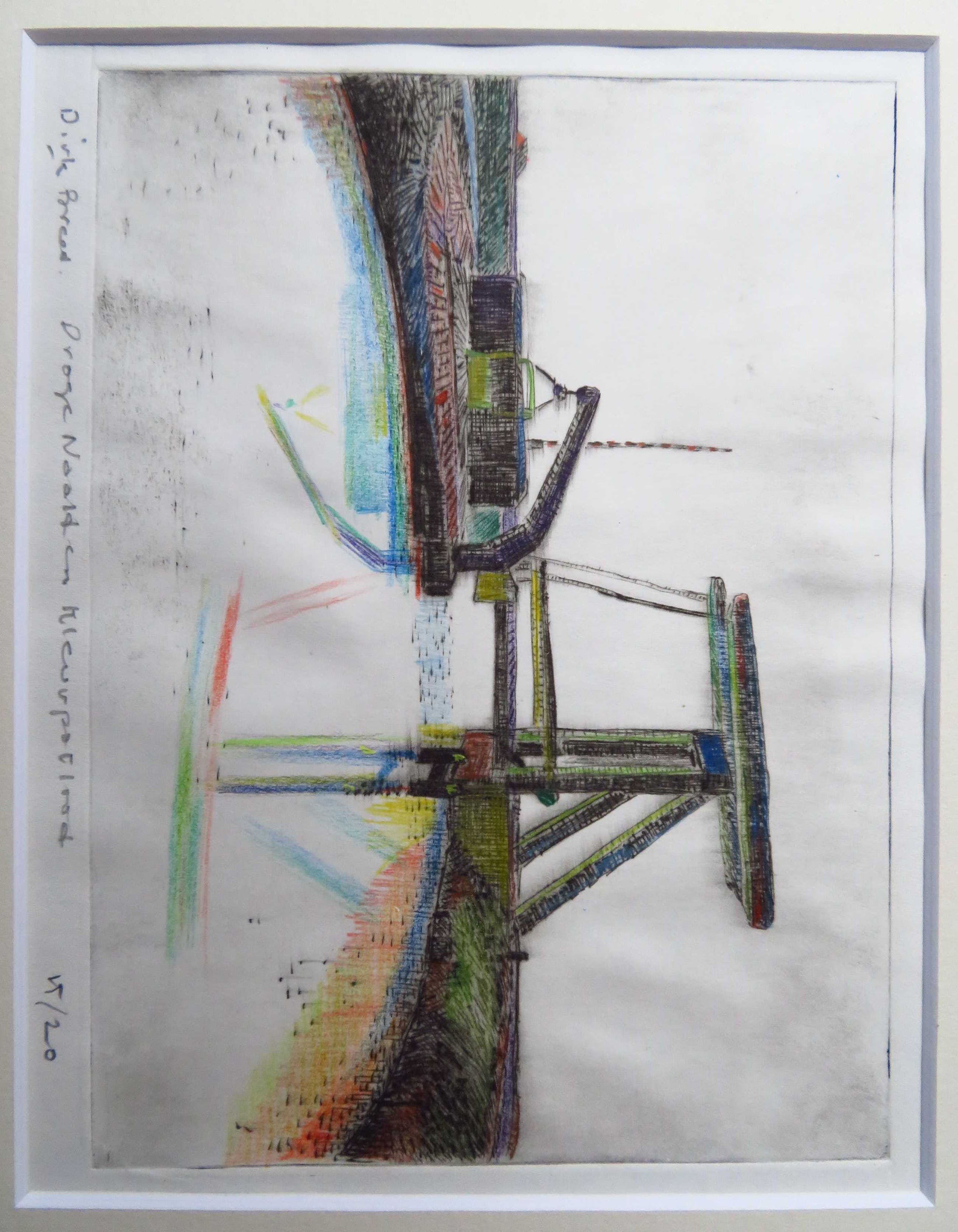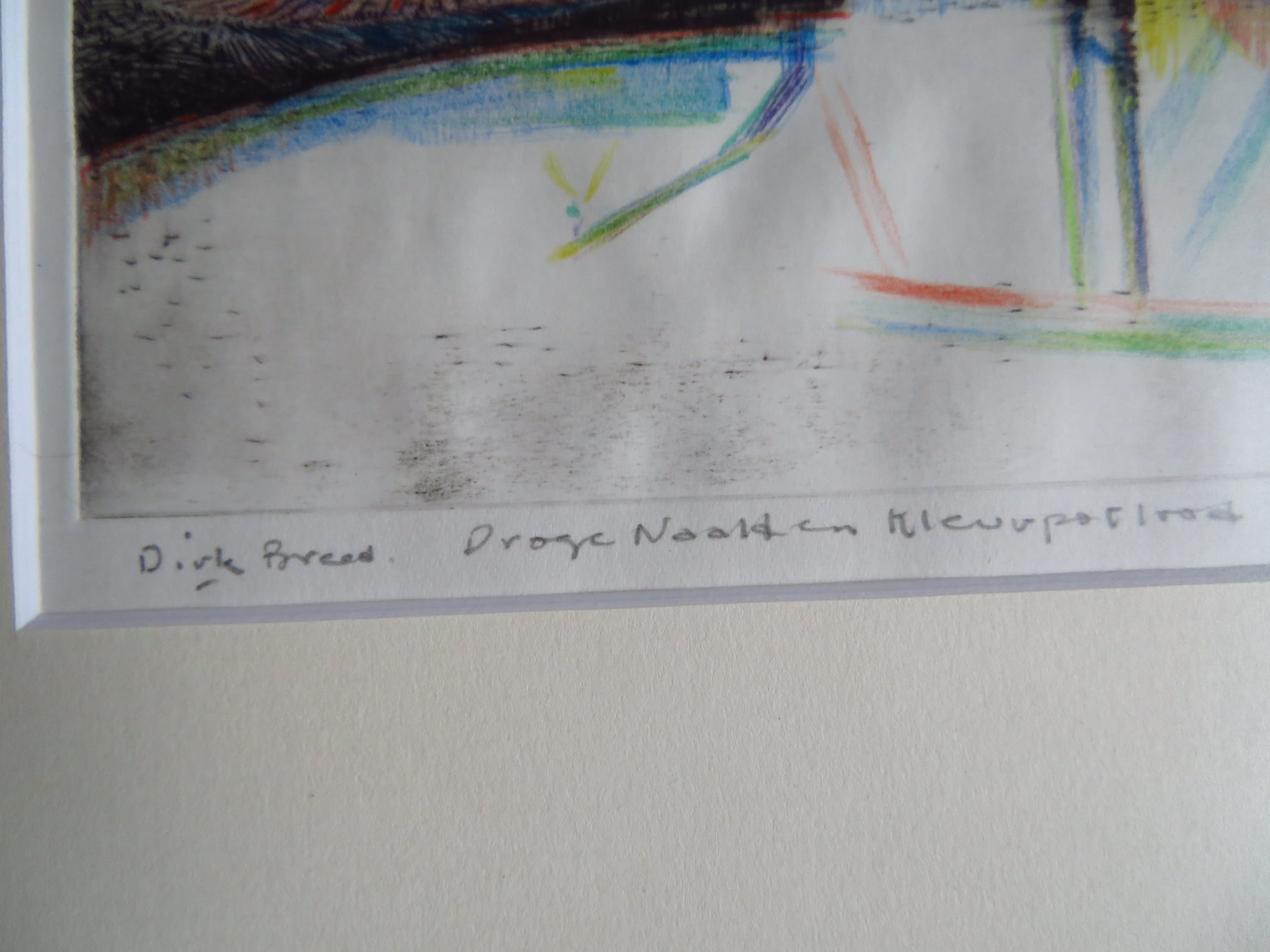 Mooie ets van Dirk Breed. Techniek: Droge naald en kleurpotlood