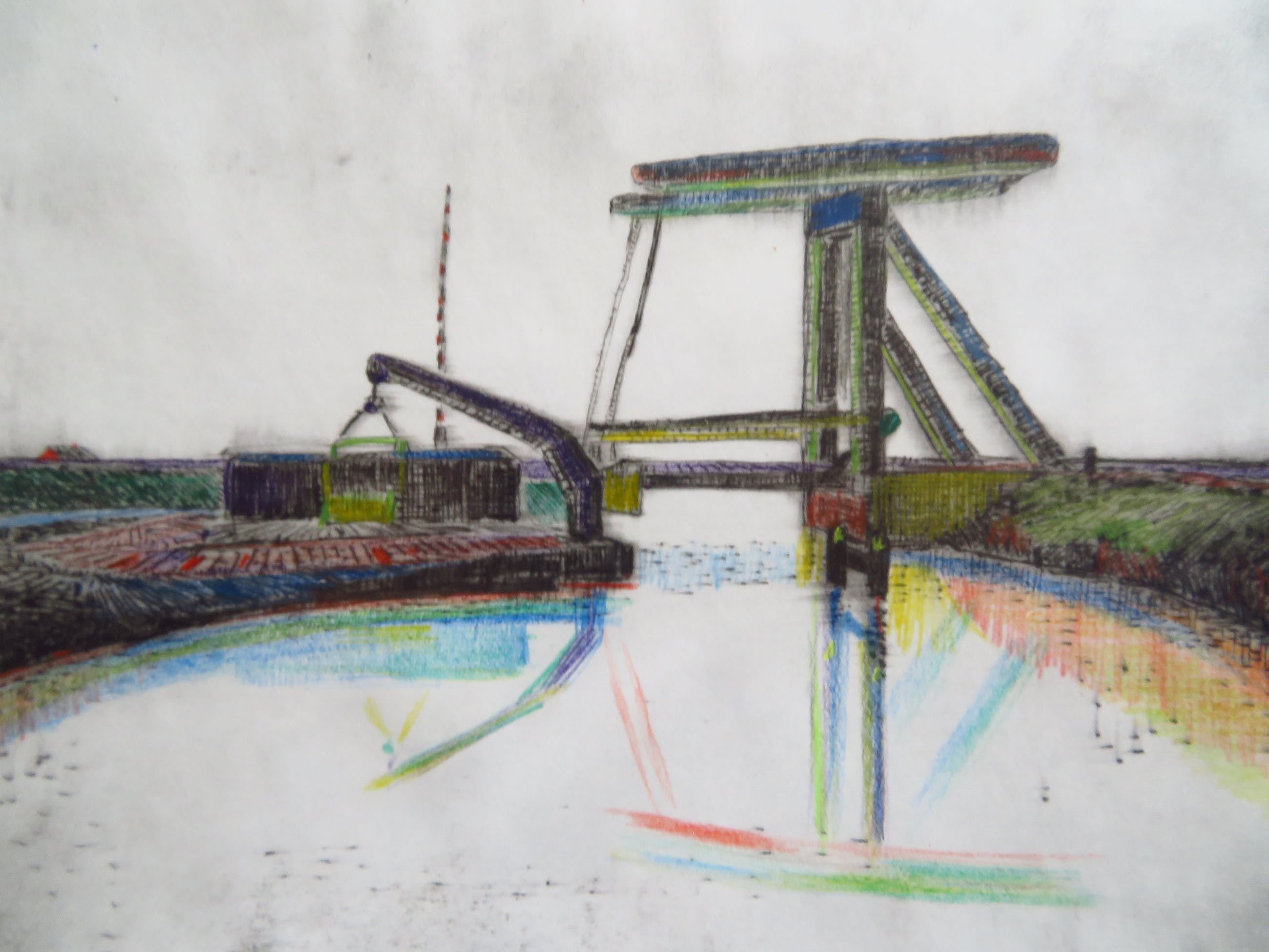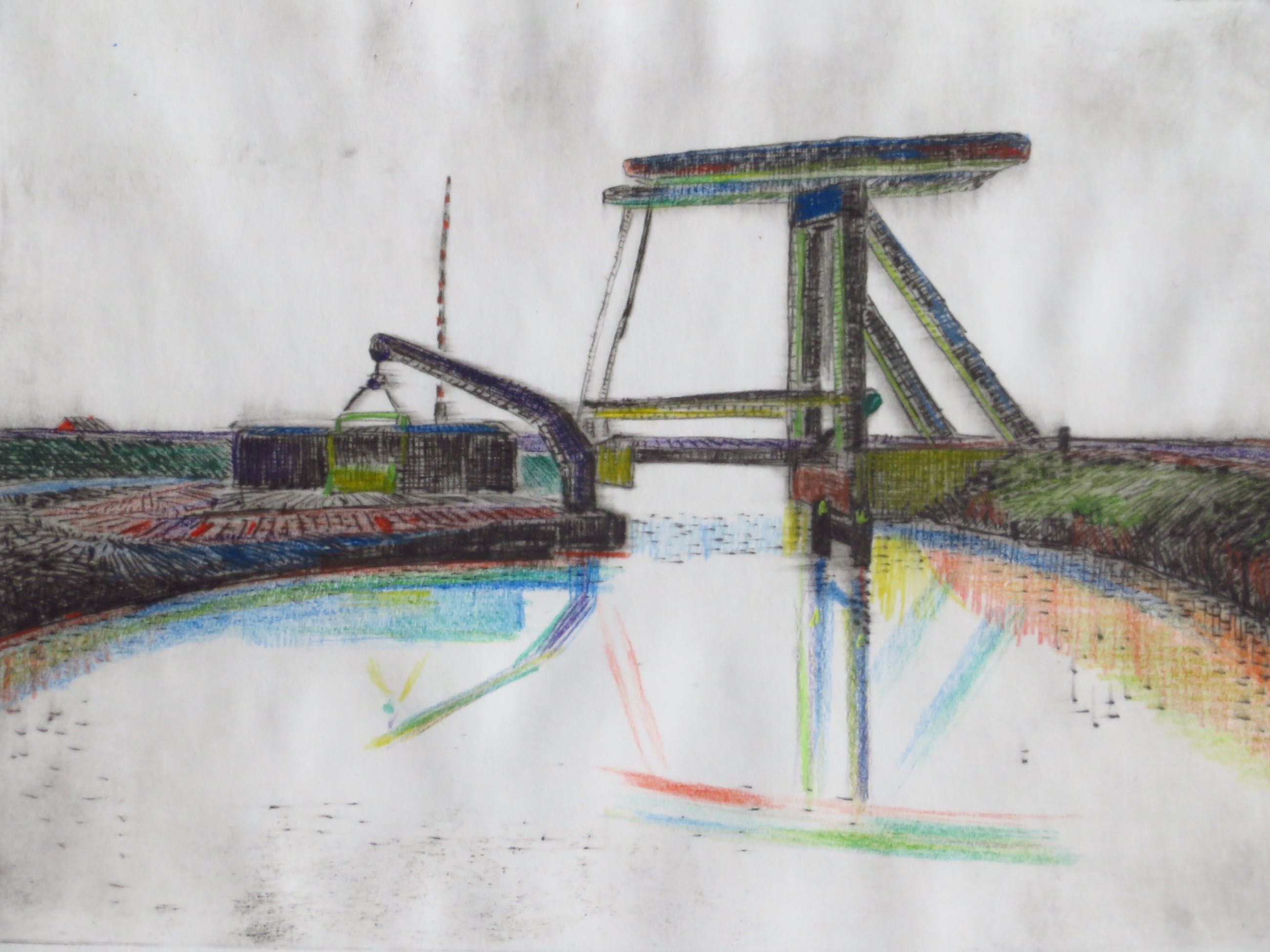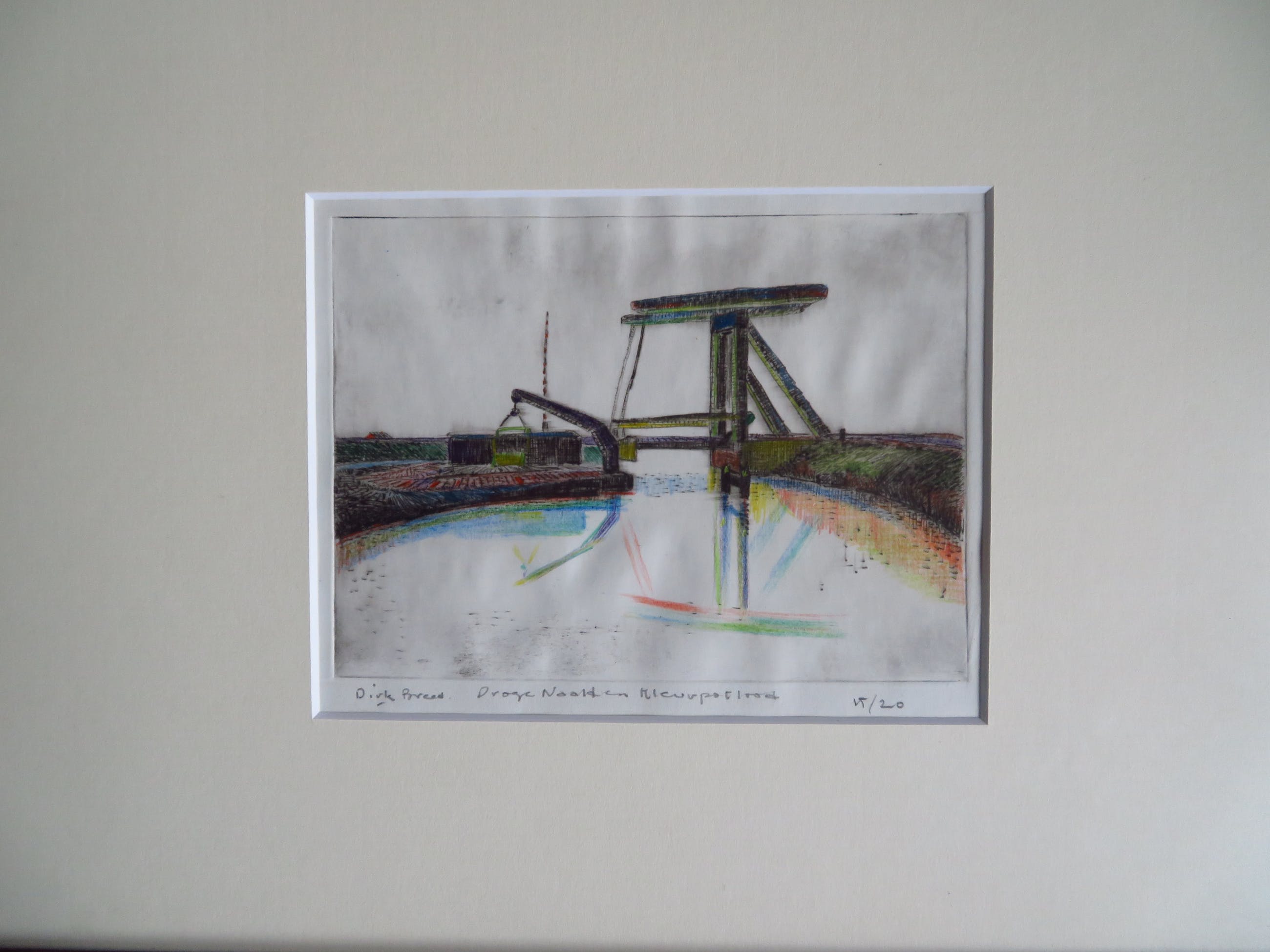 Mooie ets van Dirk Breed. Techniek: Droge naald en kleurpotlood