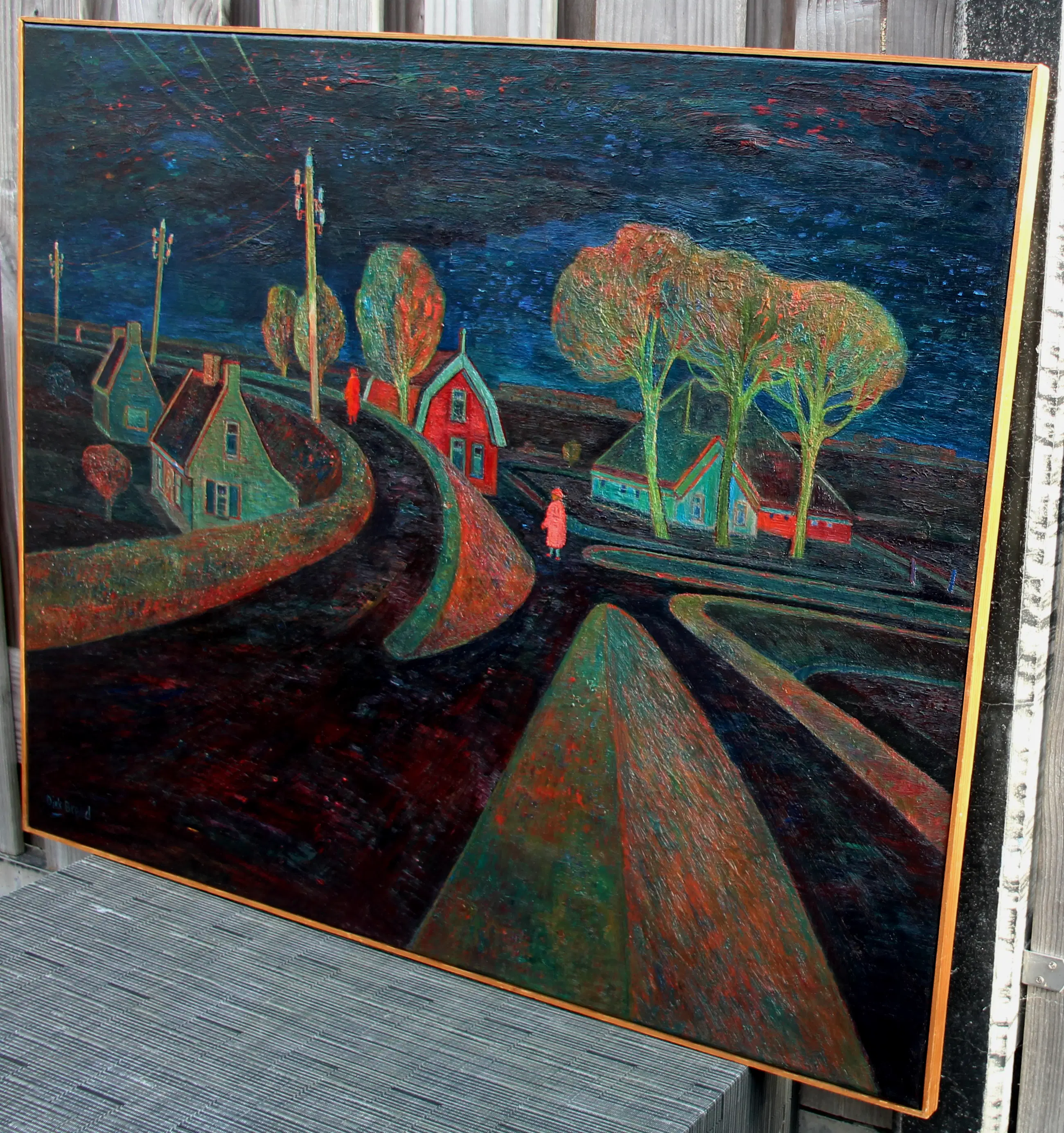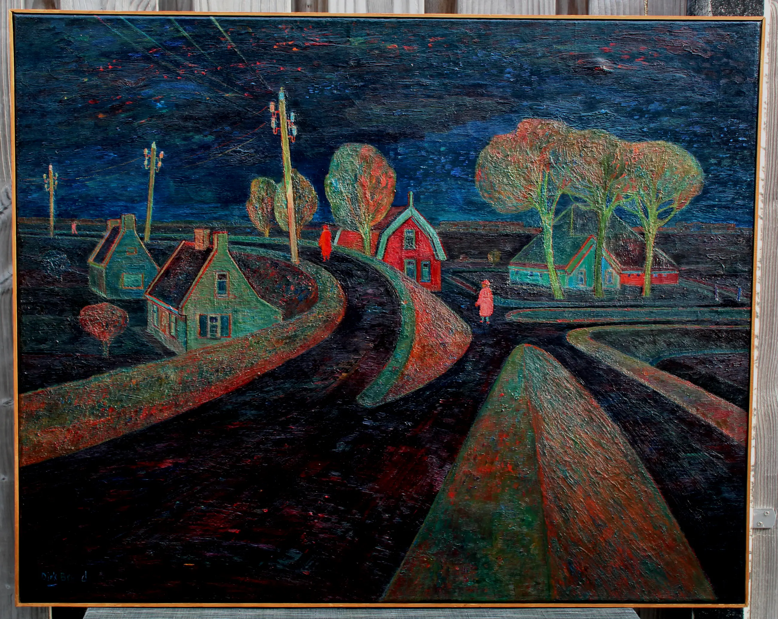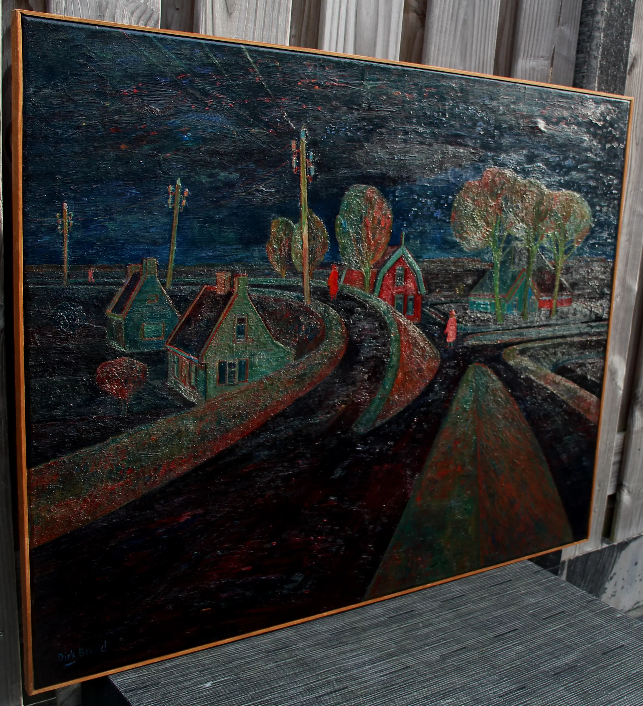 Ingelijste olieverf op doek van Dirk Breed. Voorstelling van een Noord-Hollands landschap met huizen langs een dijk. Afmetingen incl lijst: H82 x b102cm. Afmetingen voorstelling: H80 x b100cm. Het werk is, links onderaan, gesigneerd door de kunstenaar. De authenticiteit van het aangeboden werk wordt, op aanvraag, worden gemaild. Een certificaat van echtheid kan, op aanvraag, worden gemaild.
