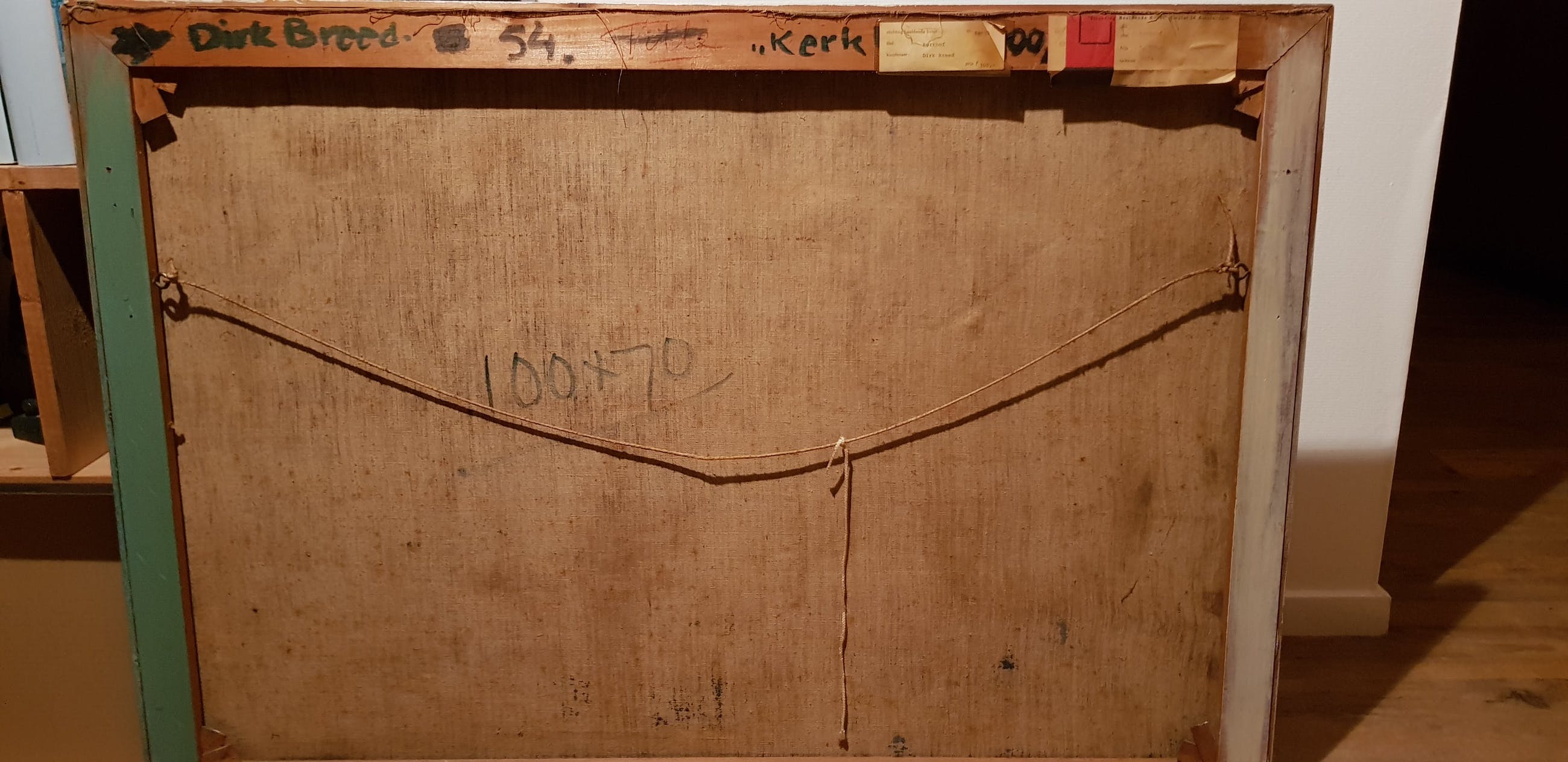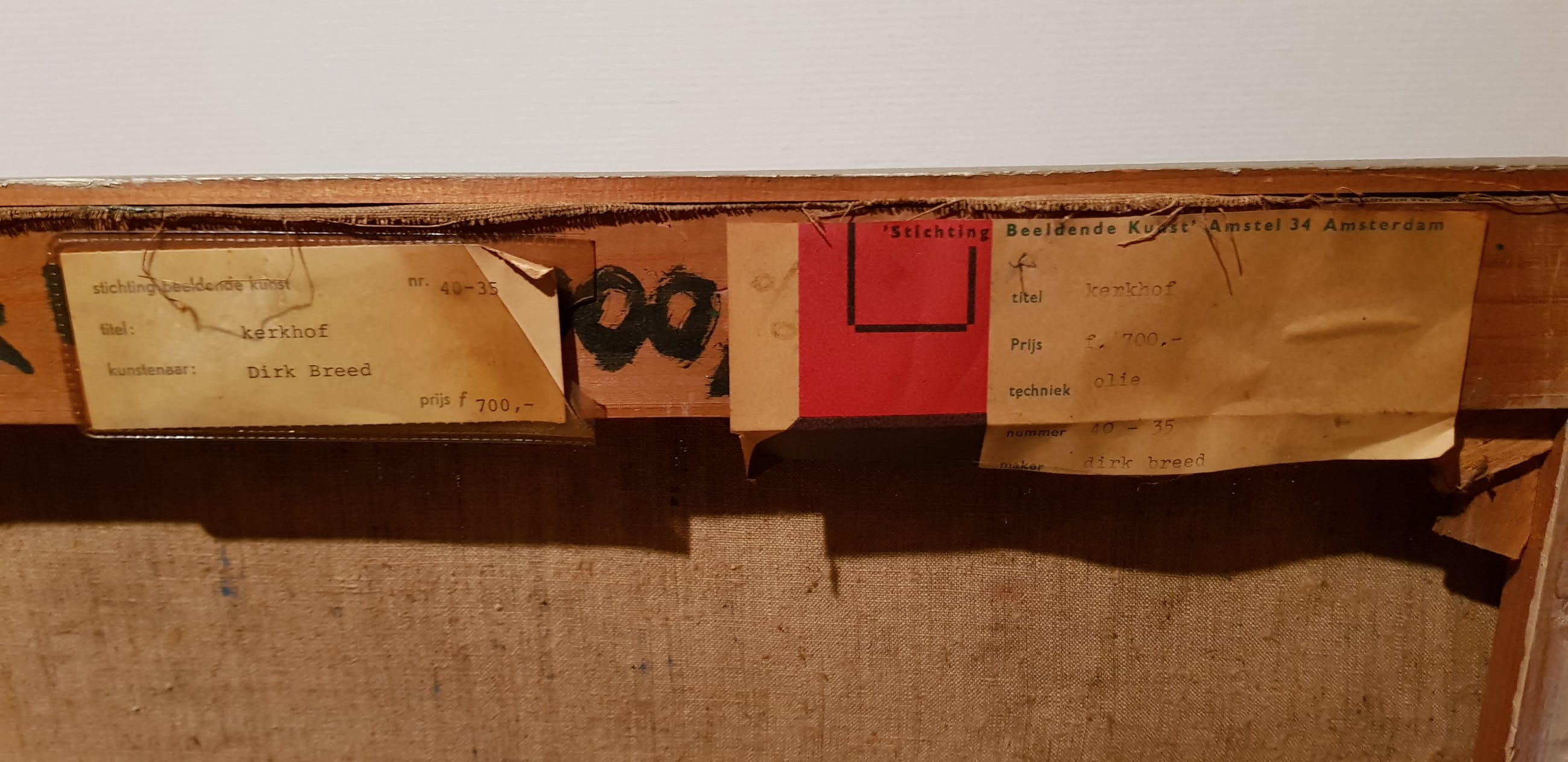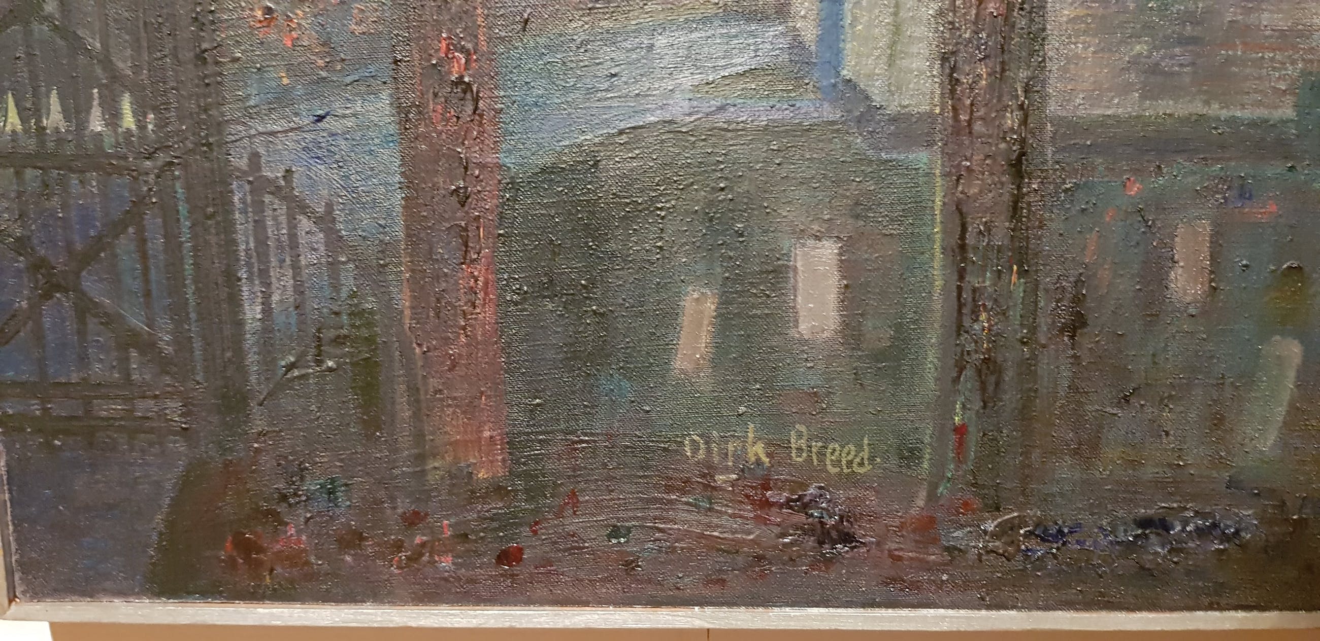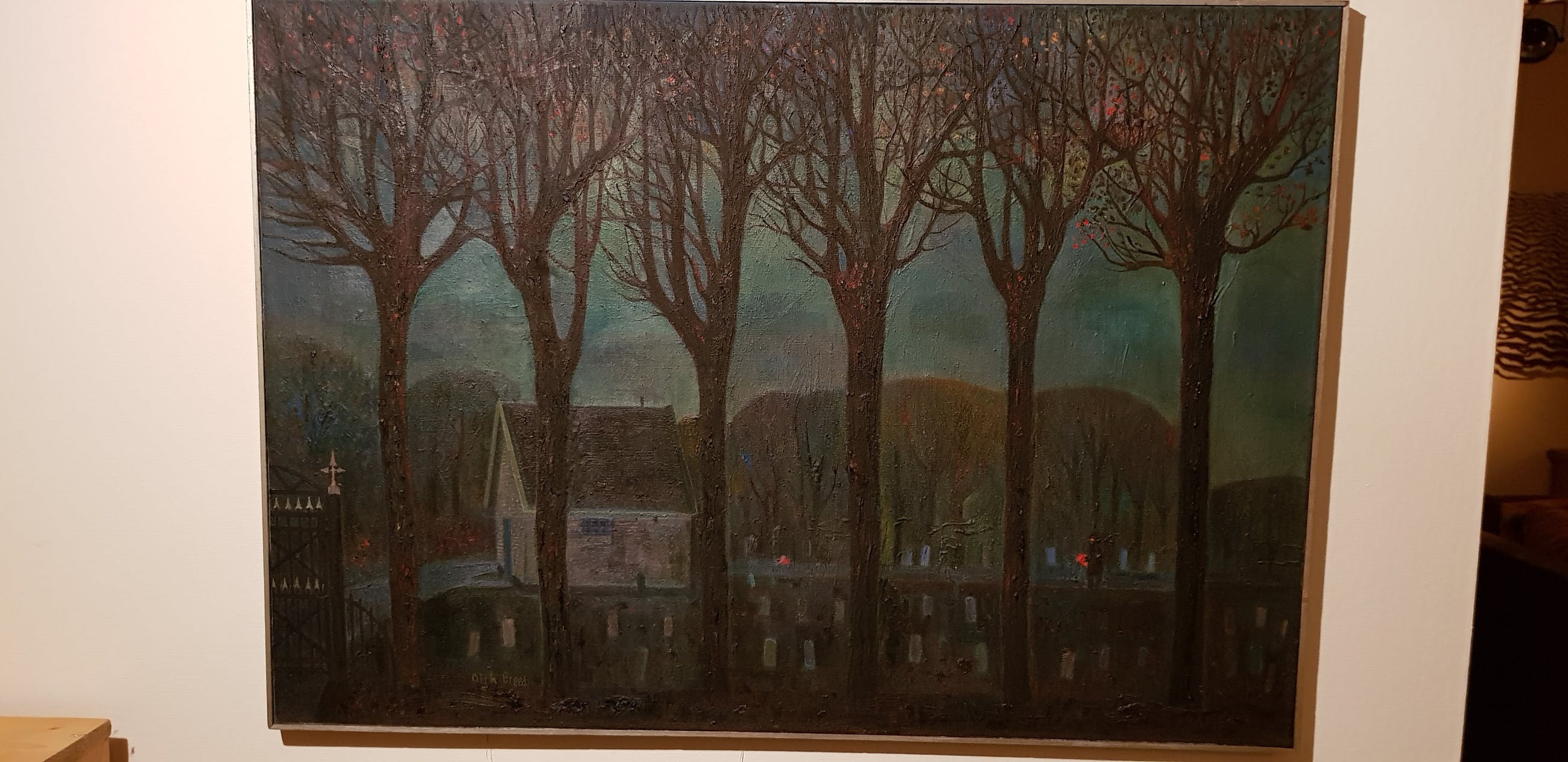 Aangeschaft dertig jaar geleden via Stichting Beeldende Kunst in Amsterdam Donkere afbeelding van een kerkhof met de typerende Dirk Breed bomen.