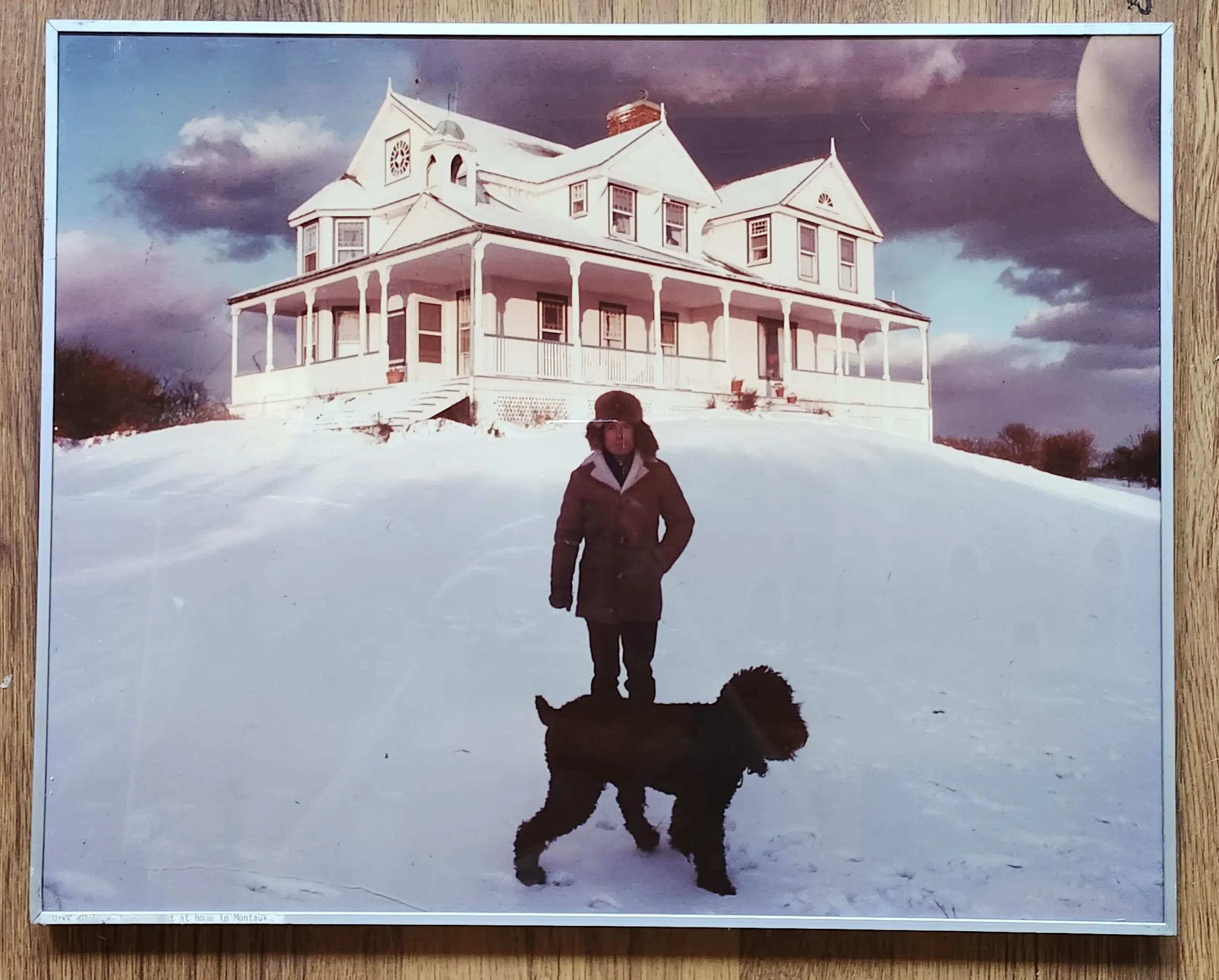 Mooie foto van Dirk Buwalda zelf. Voor zijn huis in Montauk, New York. Buwalda was tussen 1994 en 2006 huisfotograaf van het Nederlands Dans Theater. (Weerspiegeling lamp rechtsboven in de foto)